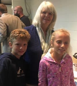 Diane Burkholder, children’s minister at Lindale Mennonite Church, catches up with Grady Harman and Sienna Kauffman of her congregation during a reception for pastors of EMS students.