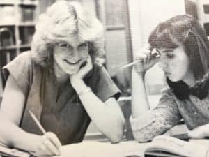 Janet shares a library table in 1982 with classmate Joye Ropp Cavari.