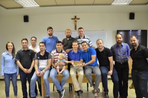 Kaitlin, Leo, and Nathan along with the seminarians he taught at St. Peter’s Seminary in Ankawa, Iraq, 2017. Courtesy photo.