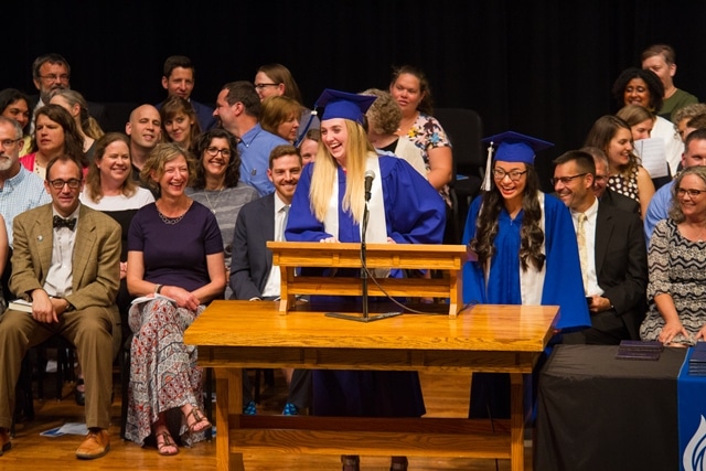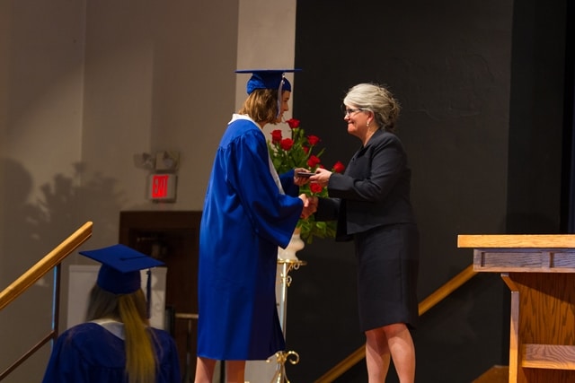 Earlier in the weekend students, families and guests took part in a baccalaureate service where Kevin and Sandy Byler, parents of Jesse Byler, spoke on the theme, “What do you do with a chance?” They shared a video of a children’s book by the same title and urged students to pay attention to the chances God places before them.
