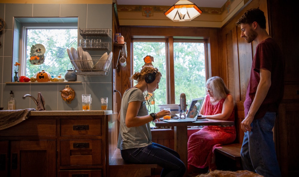 No, becoming a podcaster was definitely not on my list of priorities! But I have learned along the way that this work appeals to many of my interests and strong suits. For one, I get to pull from so many areas of study – psychology when we’re thinking about our audience and what they’ll be receptive to, theology when we integrate an Anabaptist worldview, environmental science when we’re talking facts, music when collaborating with our musicians to compose our soundtrack, creative writing in the process of designing our episodes, and even theatre when we script-write and record. I got hooked on the variety within the job.