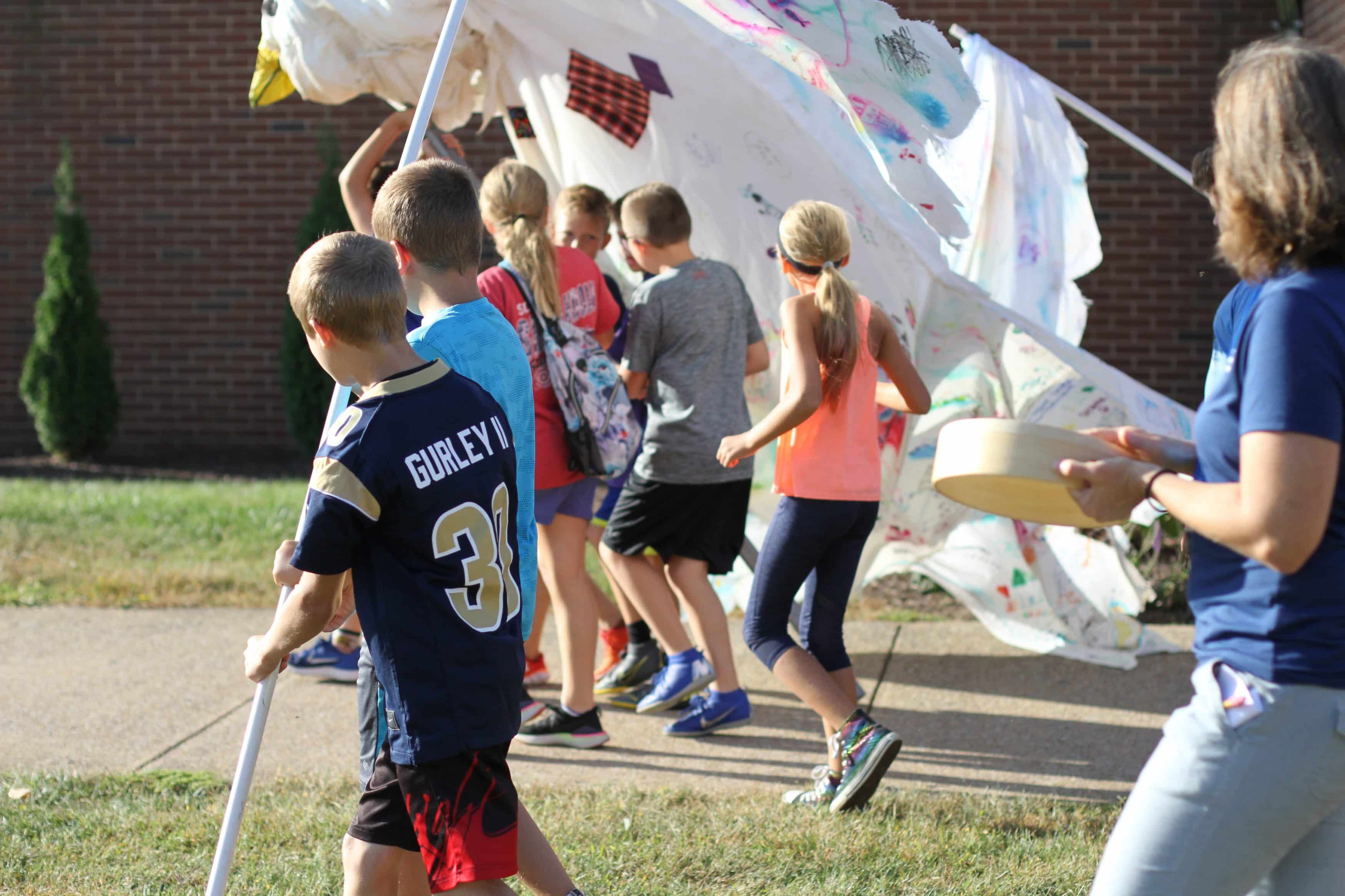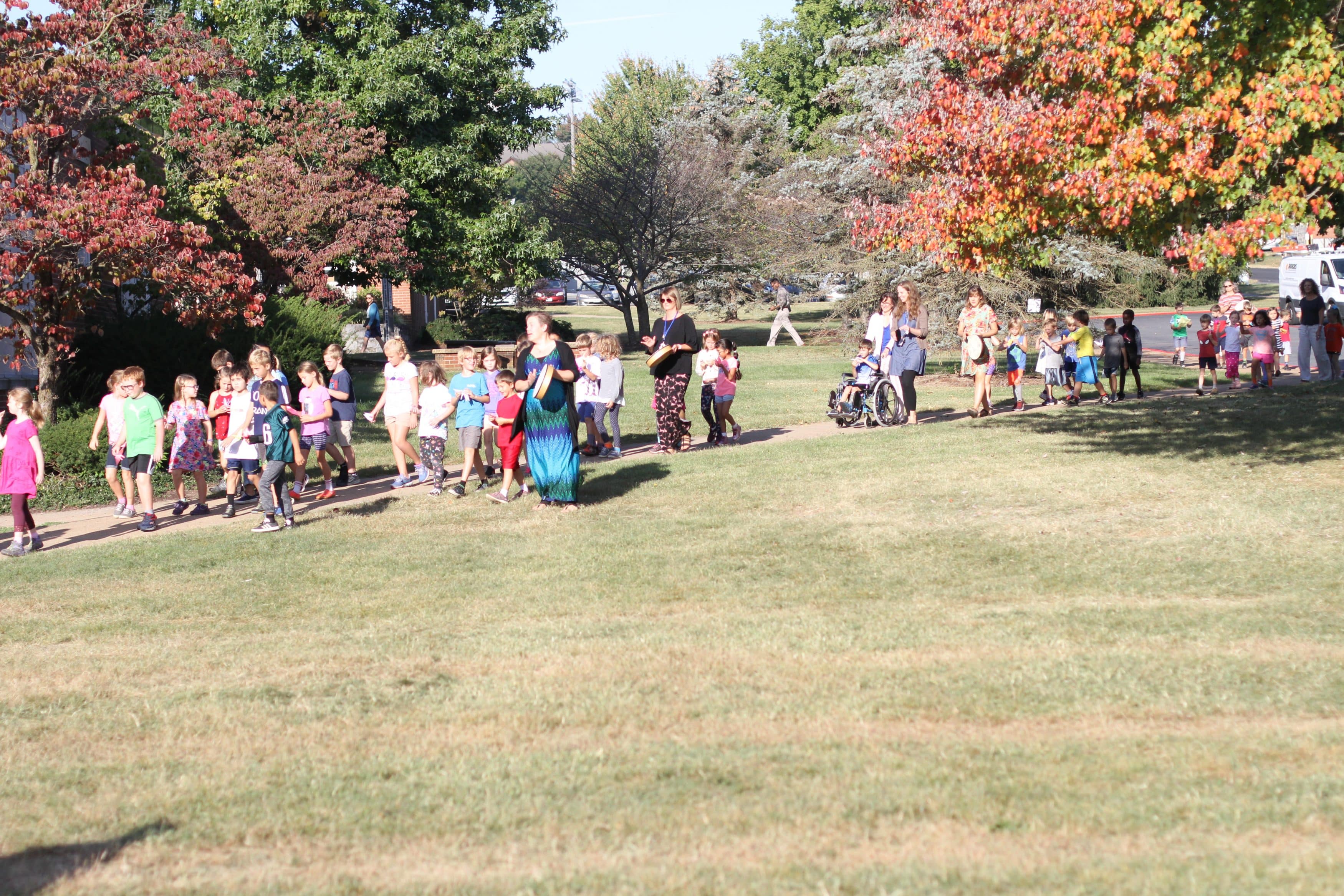 Fifth grade students at Eastern Mennonite Elementary School led the annual Peace Parade for their schoolmates on Monday, Sept. 23.