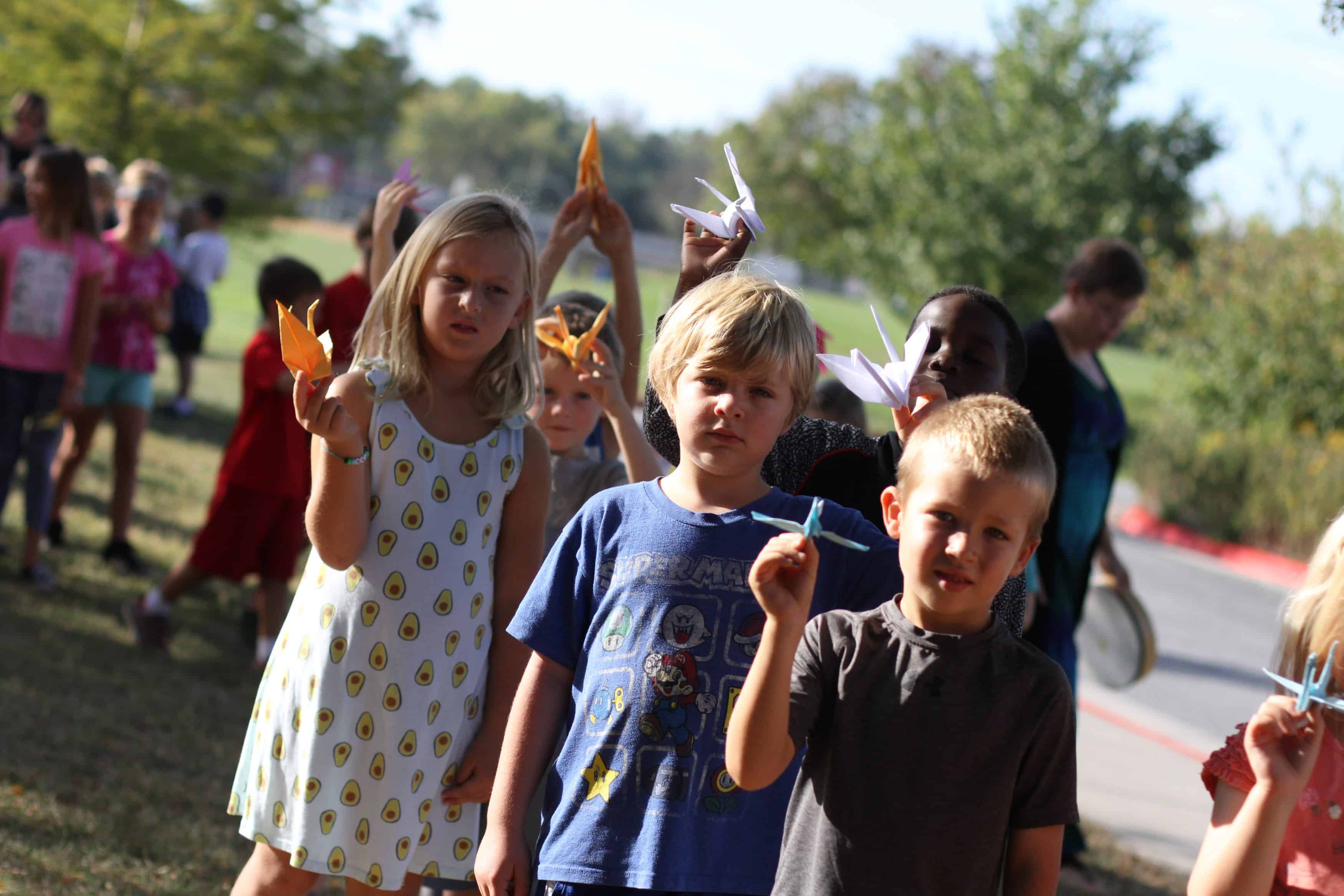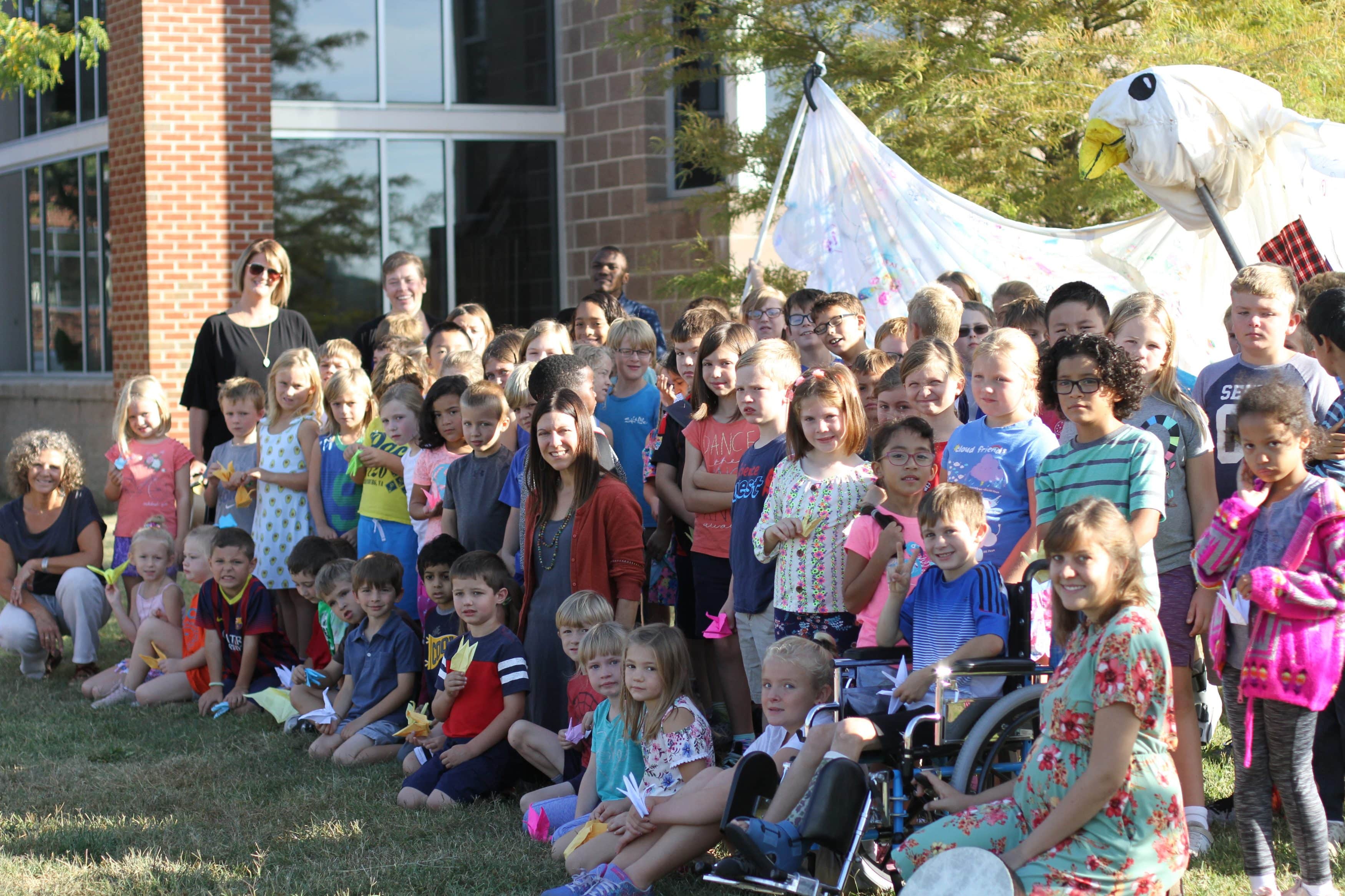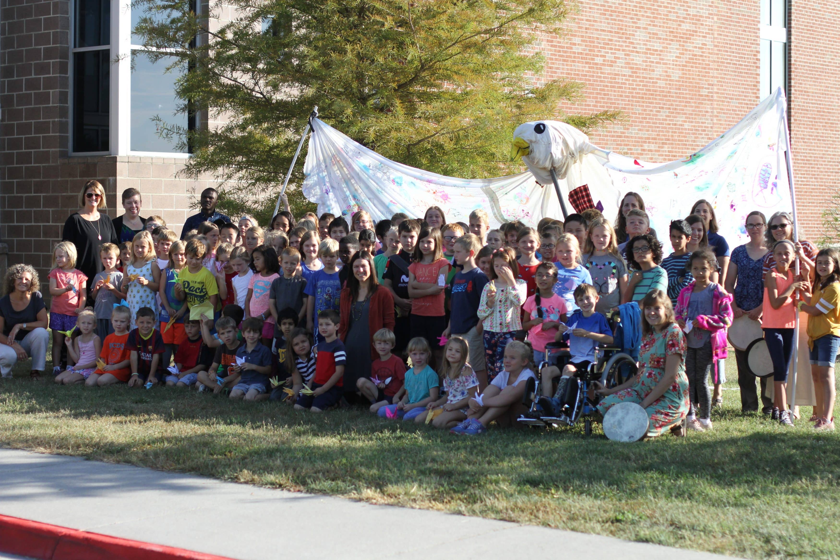 It was the 14th year that older students planned and led the parade featuring a super size peace dove puppet. Students carried origami paper cranes.