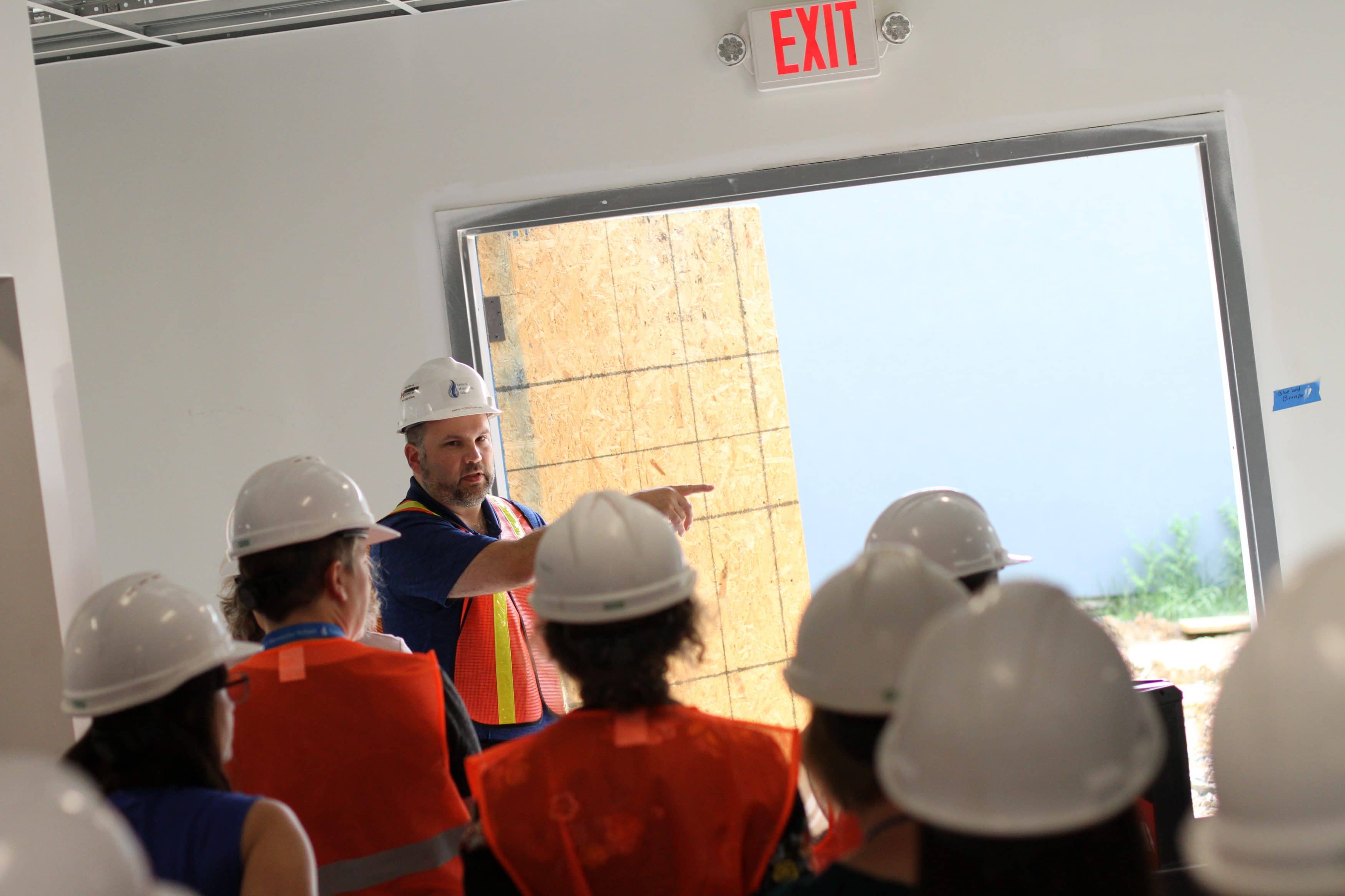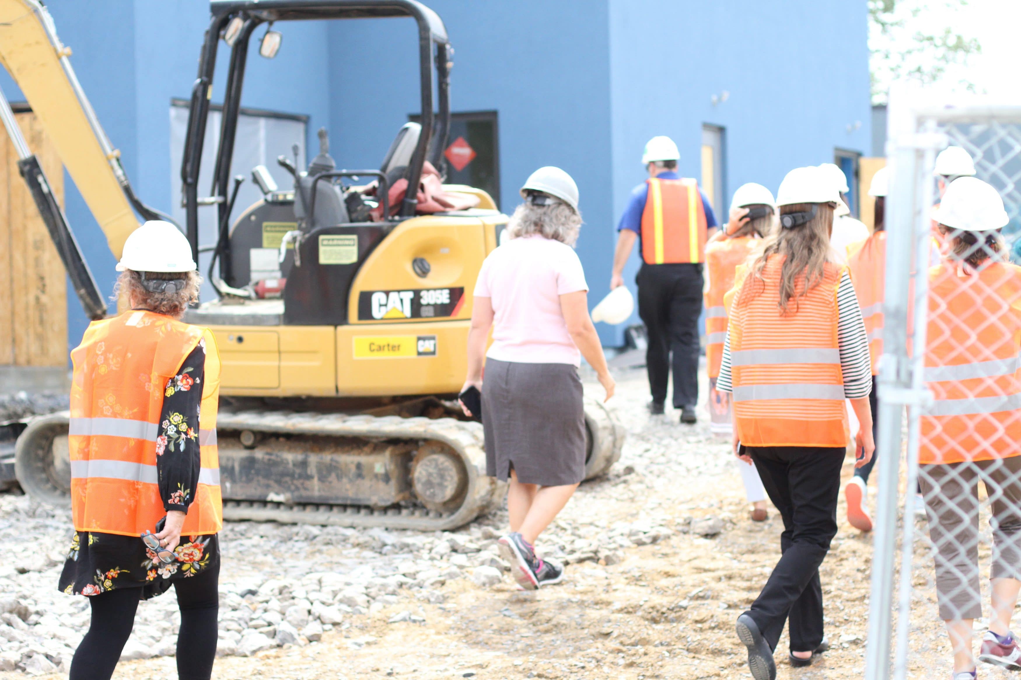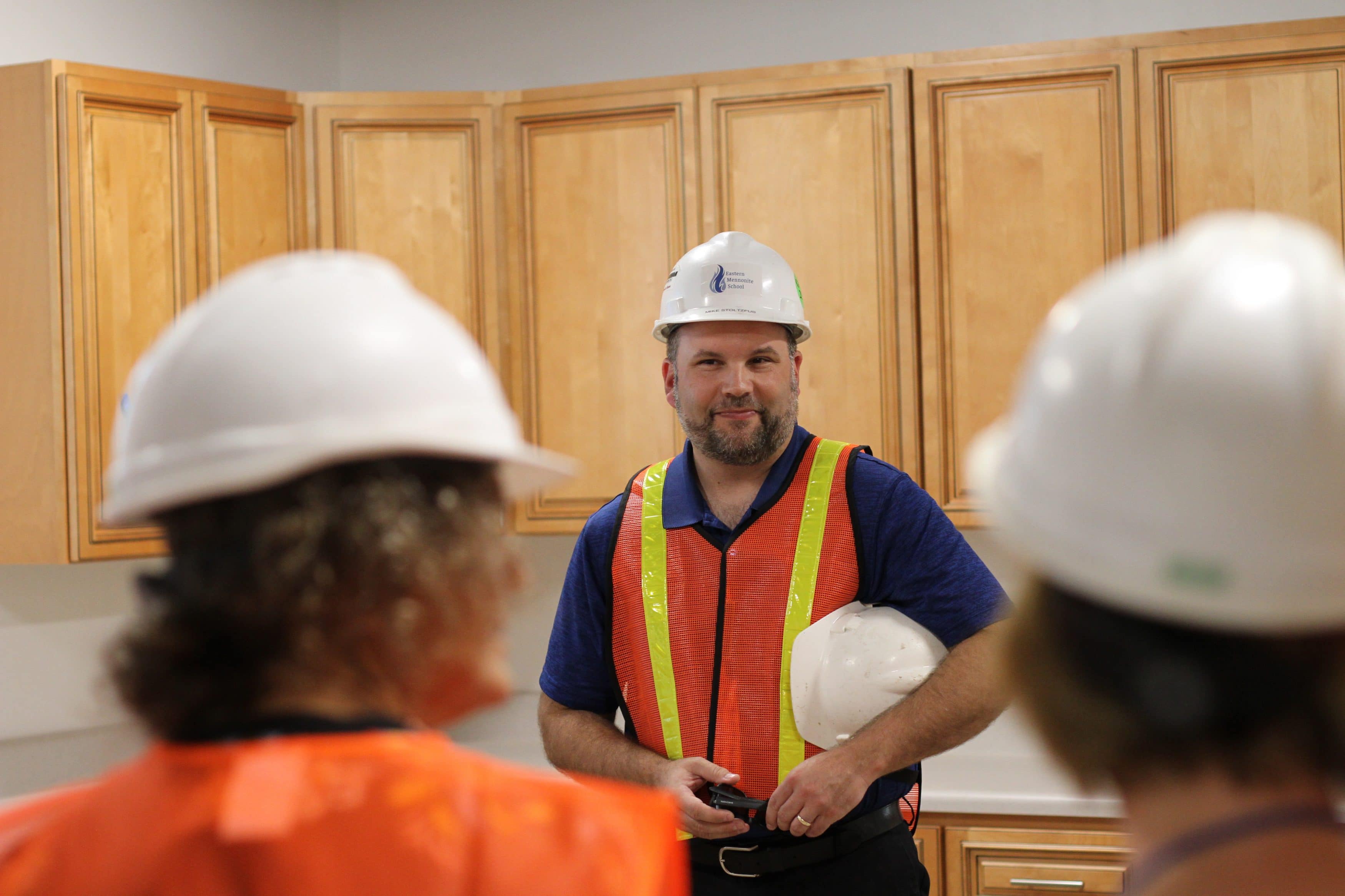 Mike Stoltzfus, director of business affairs, updated them as he led the tour. Teachers began to dream about their classroom space taking shape, identifying where they would want their whiteboard or shelves hung, and how they were going to use “all that storage and workspace!”