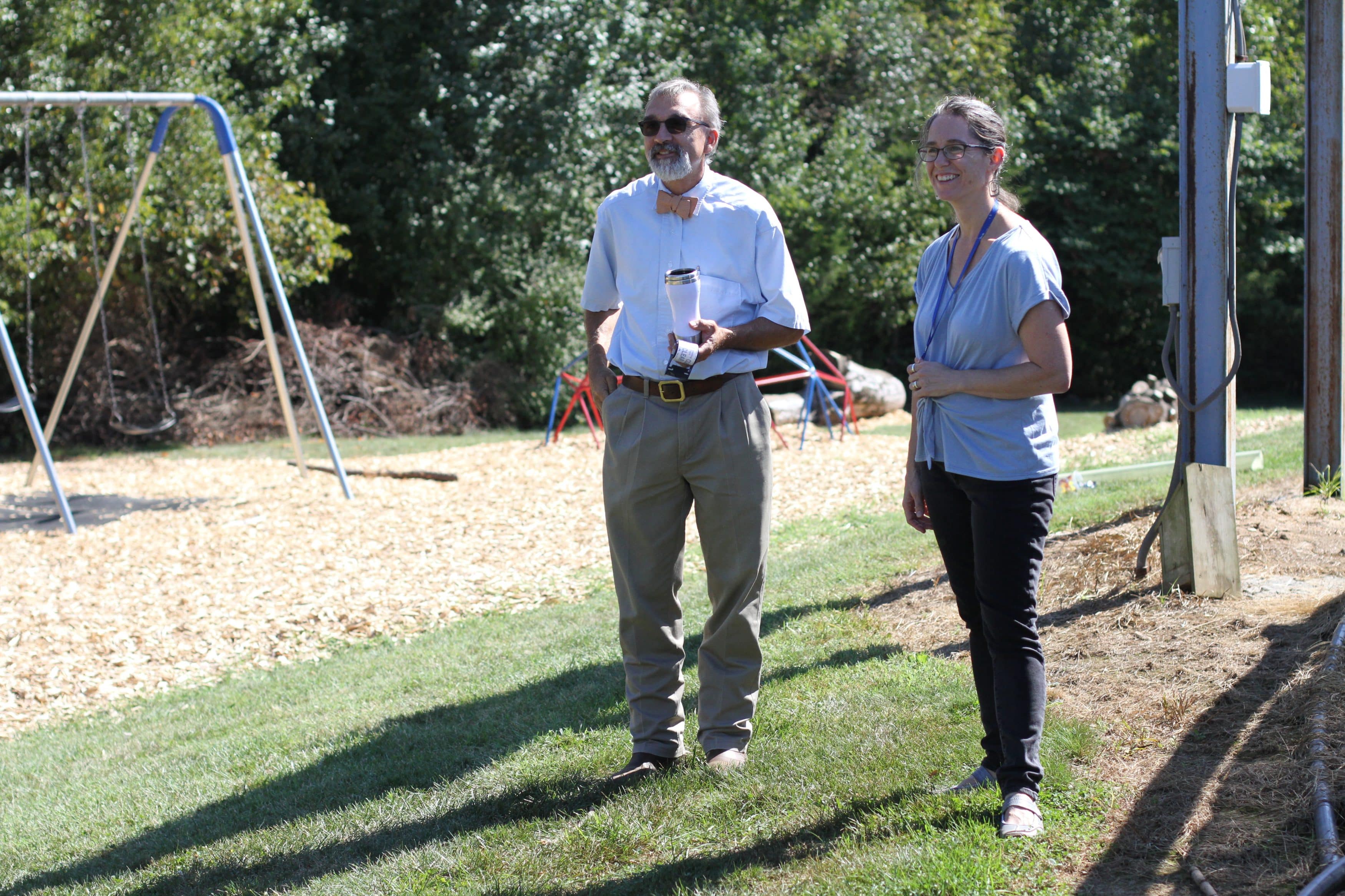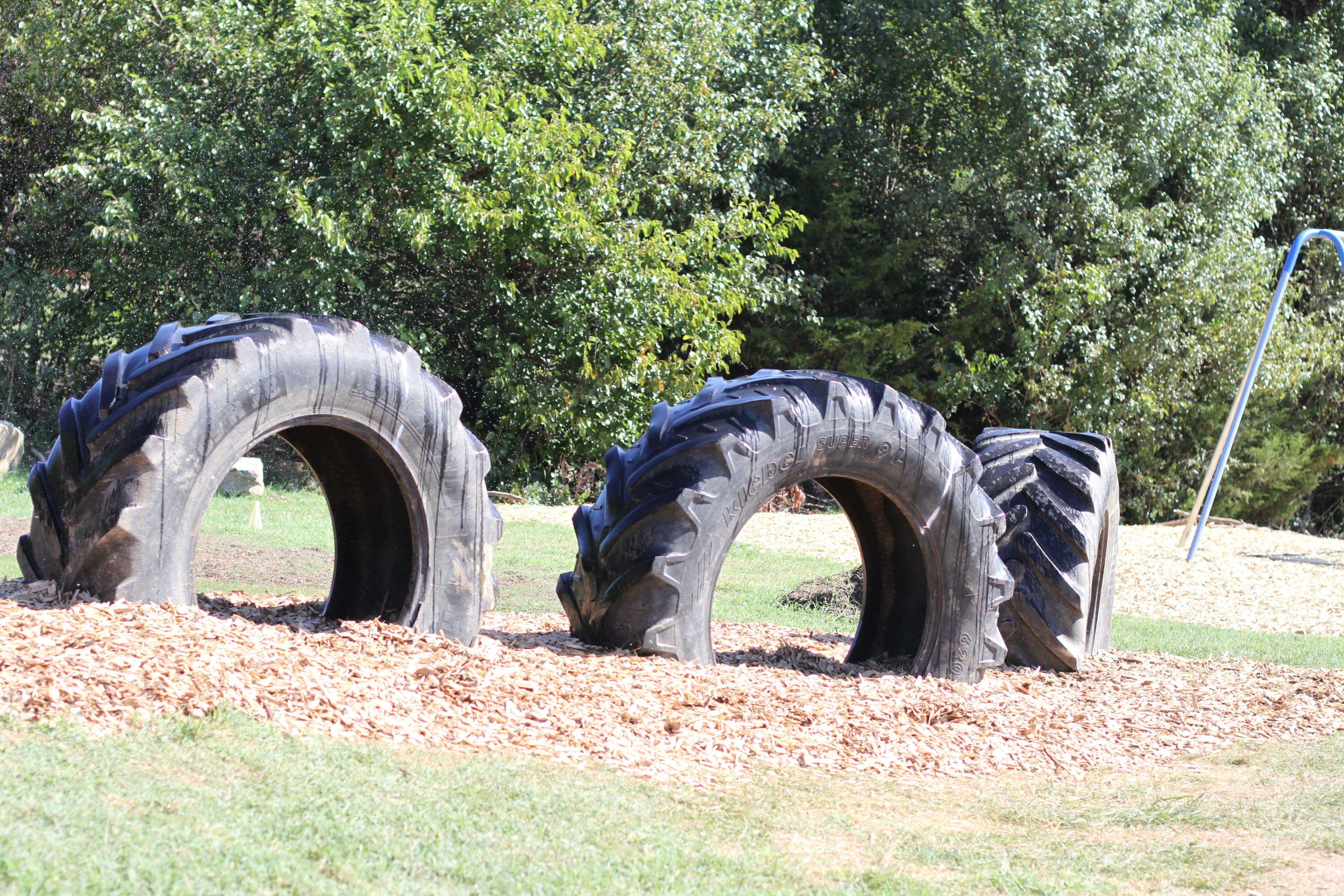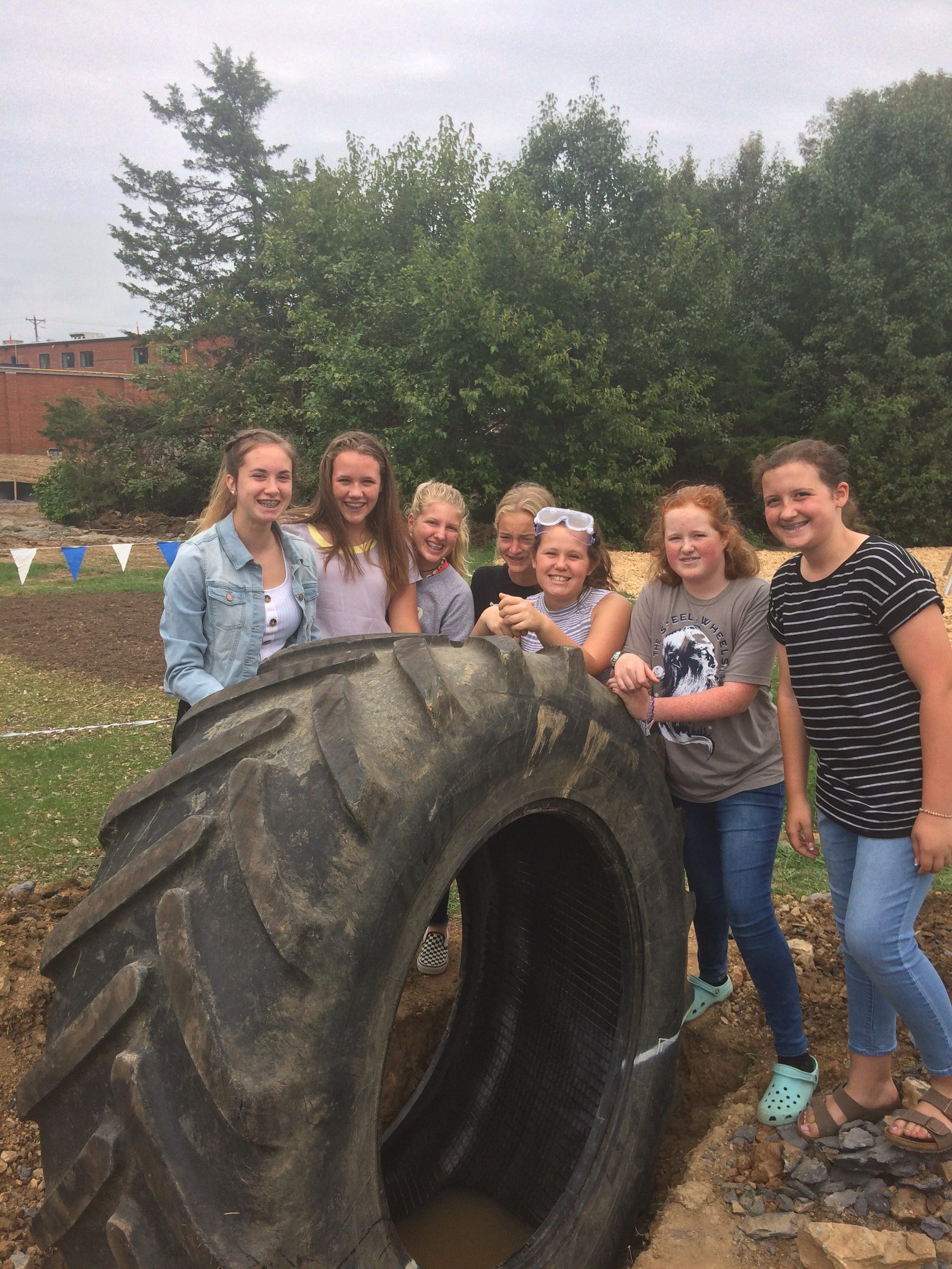 The hands-on project was spearheaded by Lee Good, middle school physical science teacher, who rounded up the five-foot size tires for Kendal Bauman. Bauman, K-5 PE teacher, developed a new playground on the site of the elementary building renovation this summer.