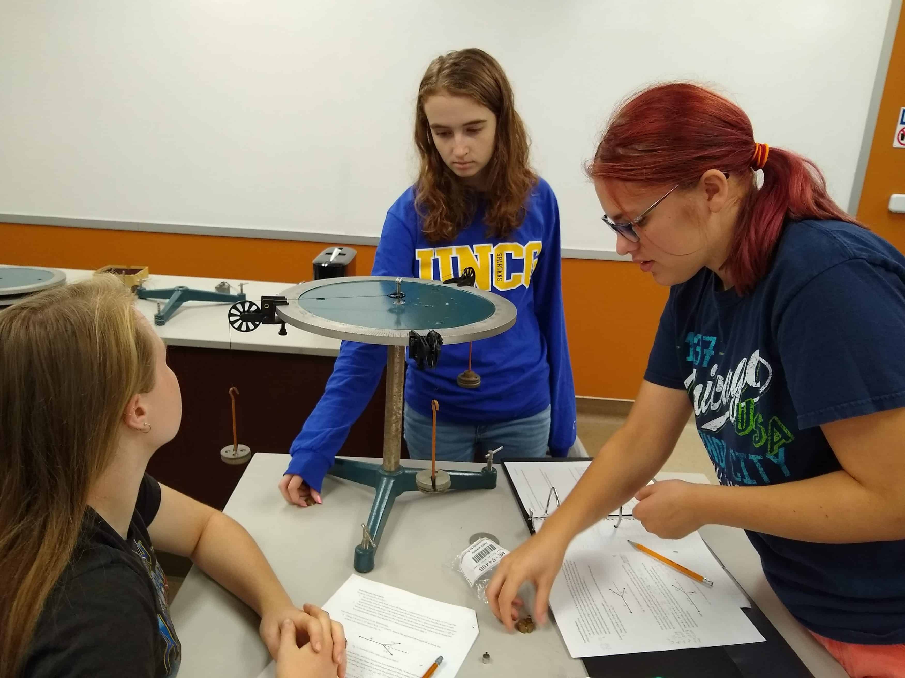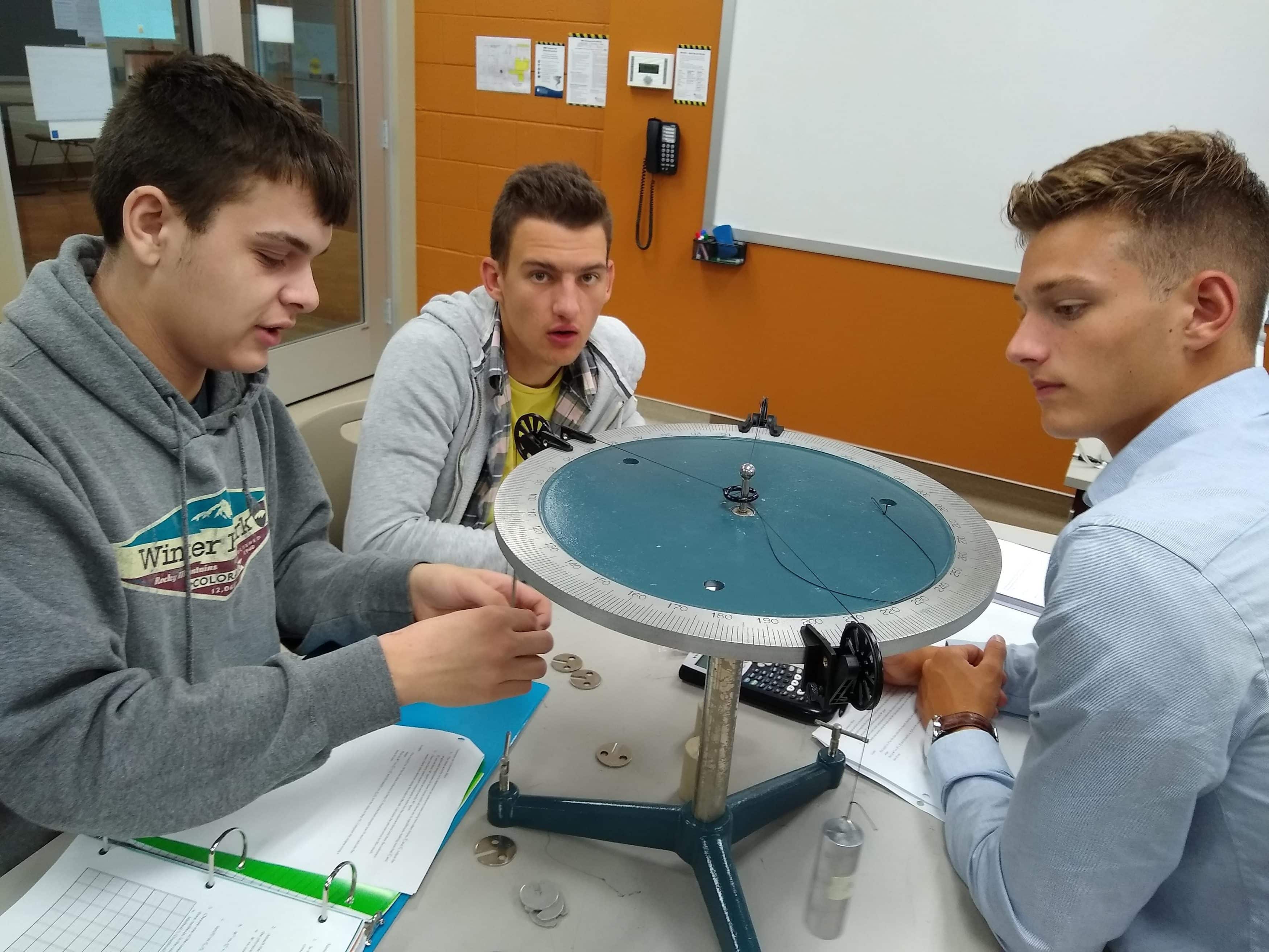 Early in the school year, Kevin Carini‘s physics students worked on a force table at Eastern Mennonite University’s Suter Science Center.