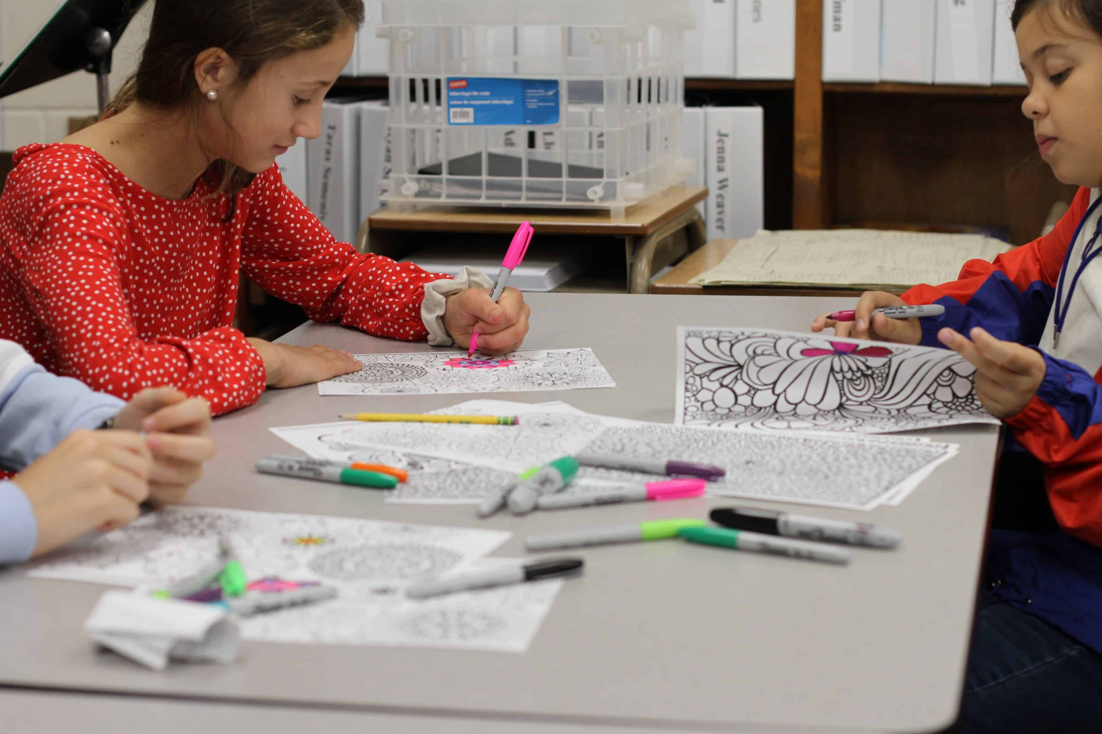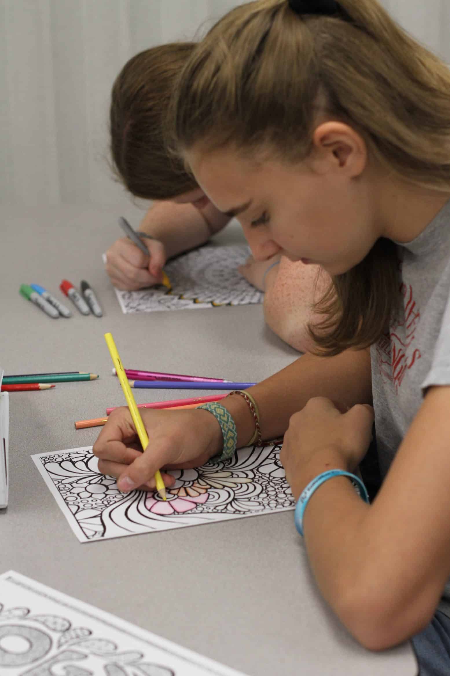Students in the “Time in Rest and Reflect” group divided into classrooms to color silently, lie down to nap or just lie quietly in a darkened room, or to read the Bible.