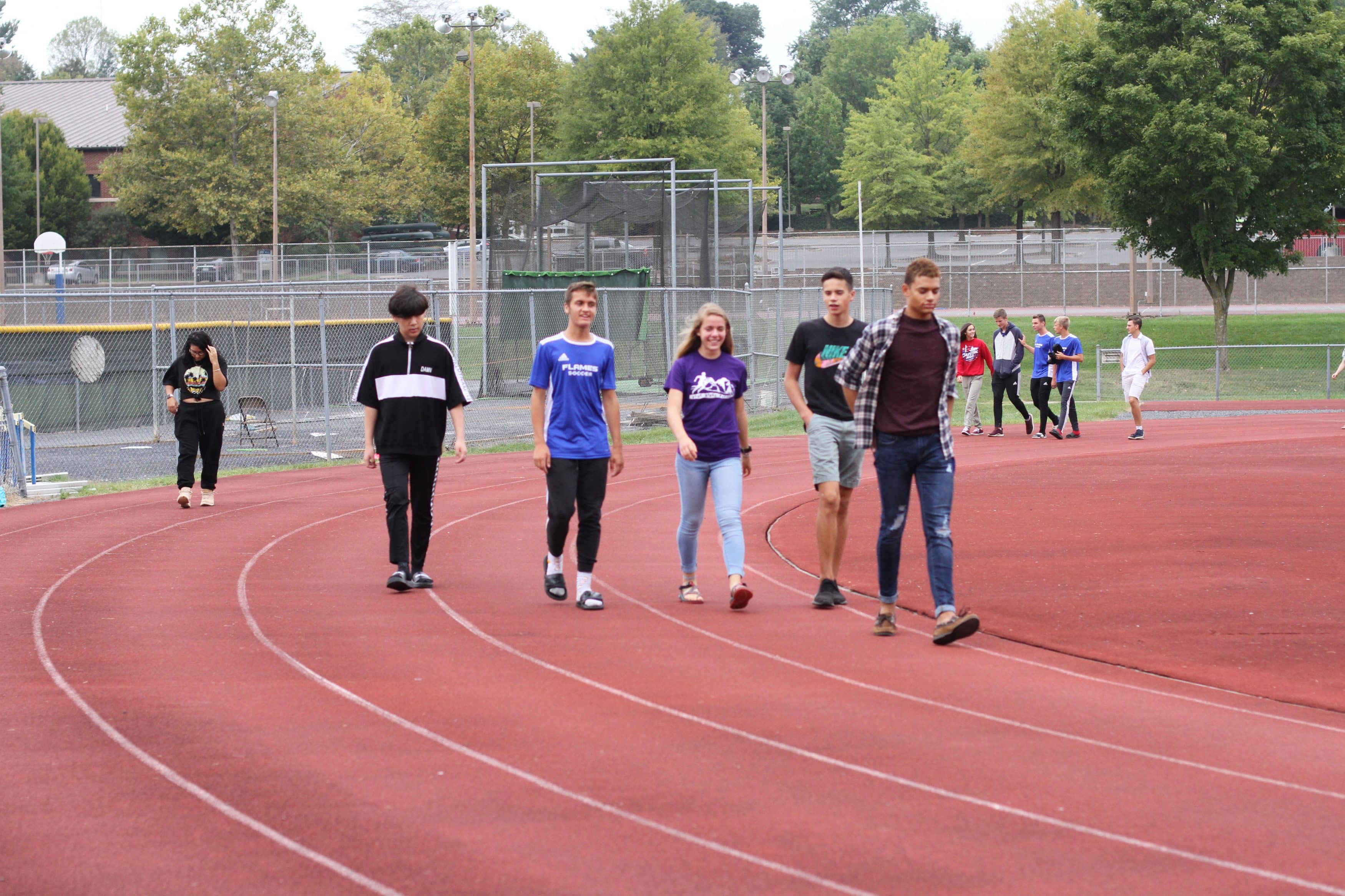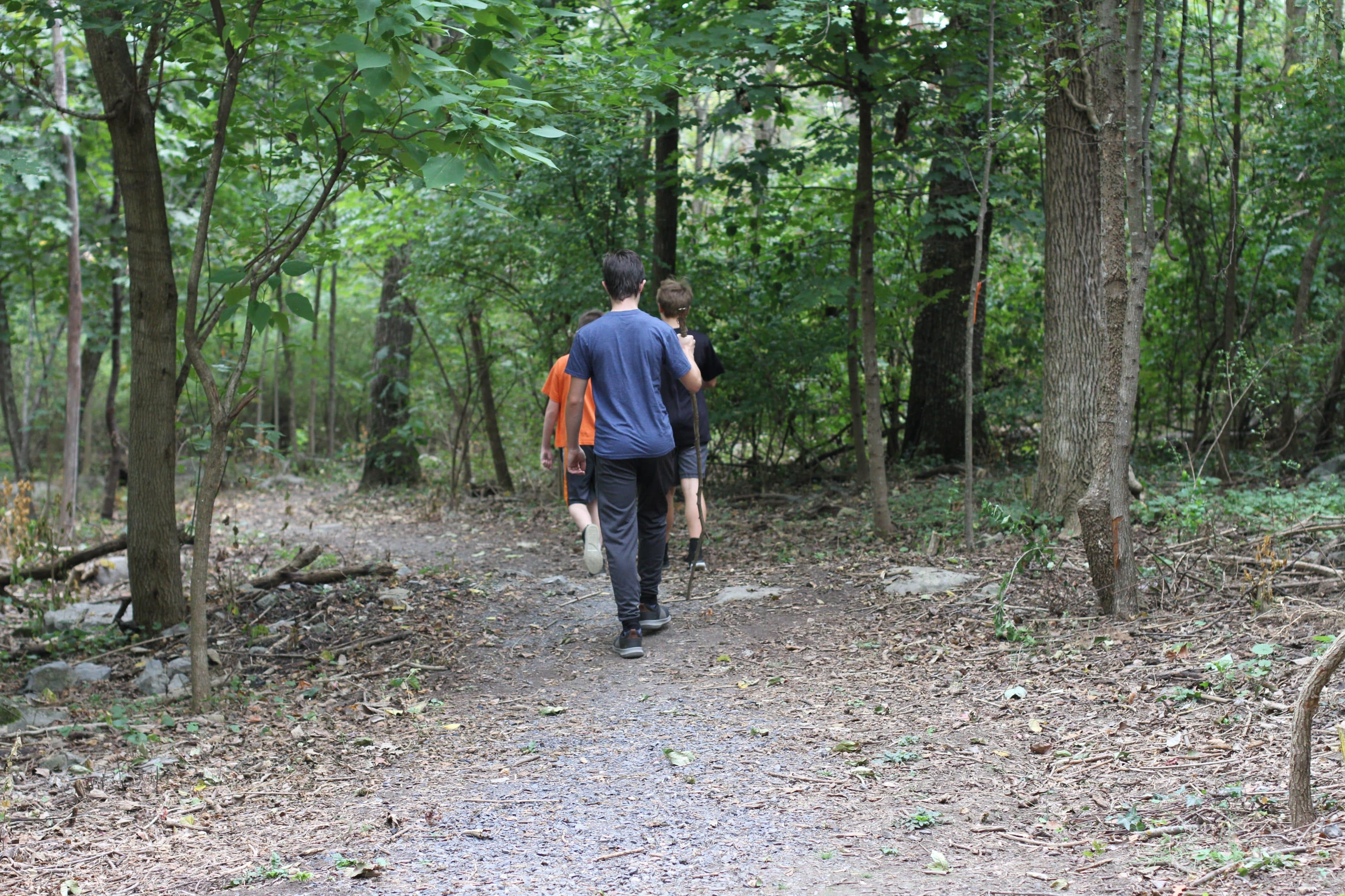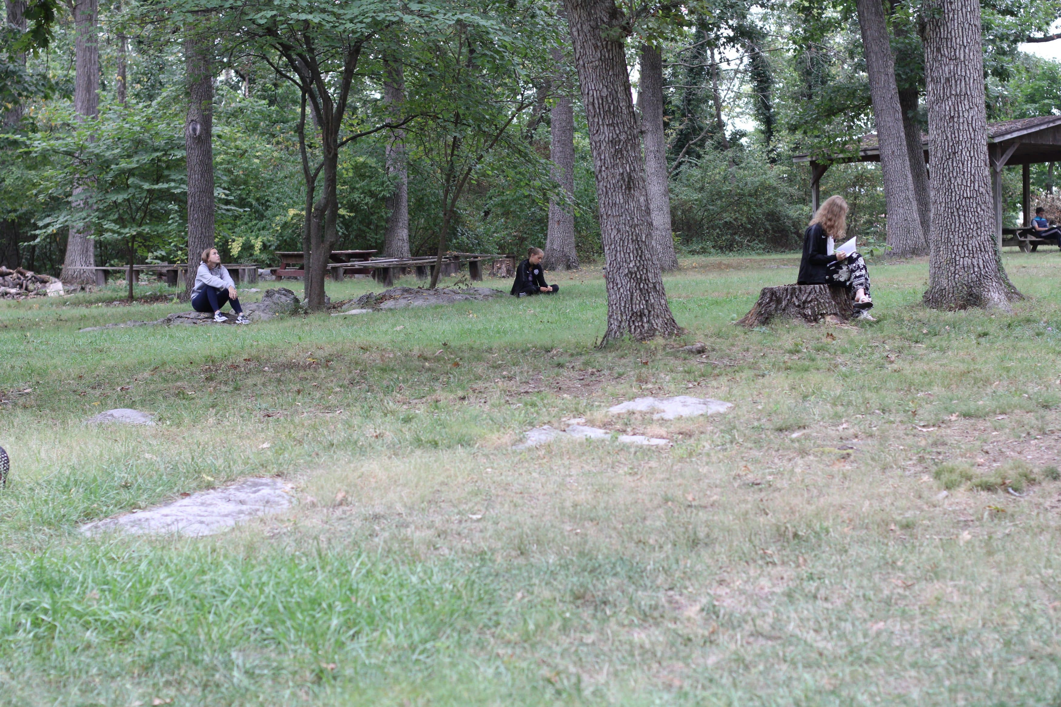 Students in the “Time in Nature” group walked across Park Road to Park Woods, a 13-acre wooded property owned and maintained by Eastern Mennonite University (EMU). Options there included walking silently and individually on the paths, sitting in one space to journal or reflect, or — for those who find renewal in talking with friends — to walk the adjacent EMU track and talk.