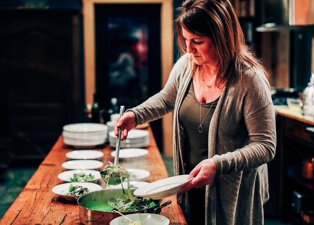 “Food breaks down barriers,” she says. “You engage in different ways and ignore differences when you’re sharing a meal in a beautiful place.”