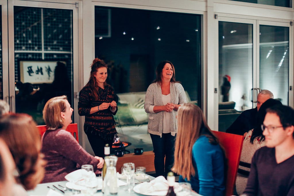 Not even a surprise downpour on an outdoor dinner party can dampen the enthusiasm of Kirsten Nafziger ‘89 Moore, recipient of the Community Engagement Award for Eastern Mennonite School 2019.