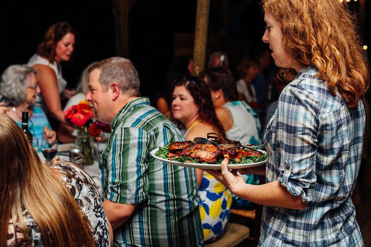 That dinner–a flora and fauna themed event with native and foraged foods–took place on 834 private acres in George Washington National Forest in late July with the Sub Rosa Supper Club. Moore and her business partner host the themed dinners in unique venues about once a month; only 30 guests from a list of more than 1,500 hopefuls are lucky enough to attend by being the first to respond to Facebook announcements.