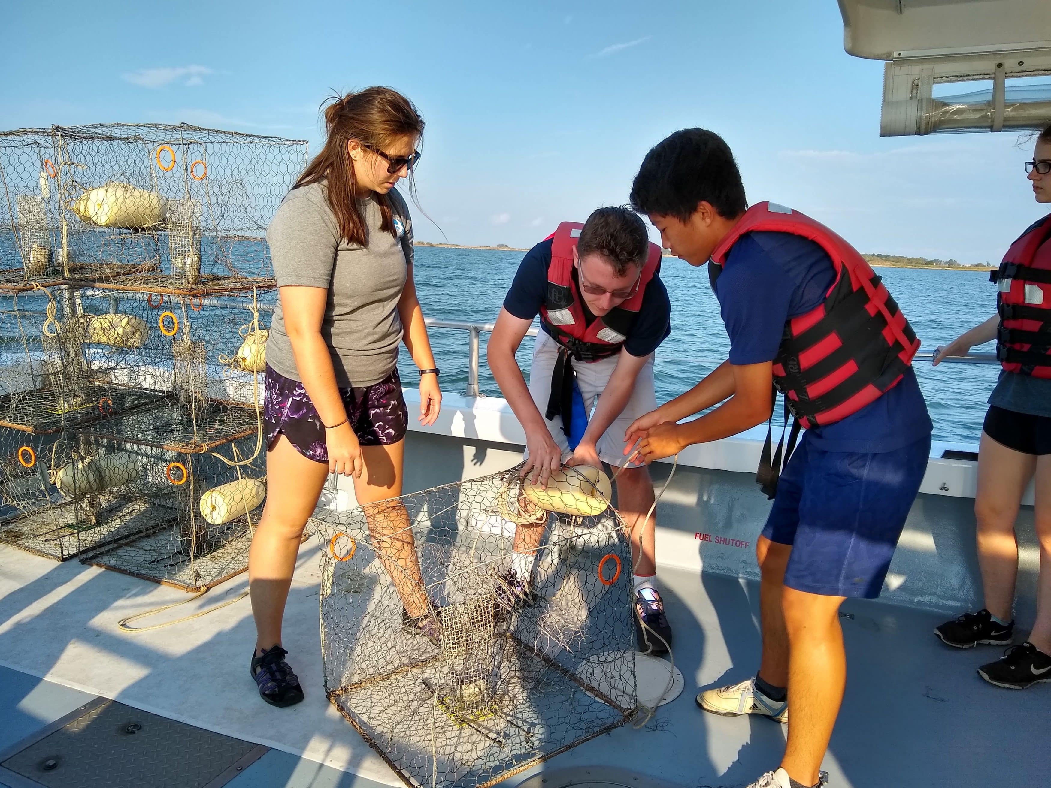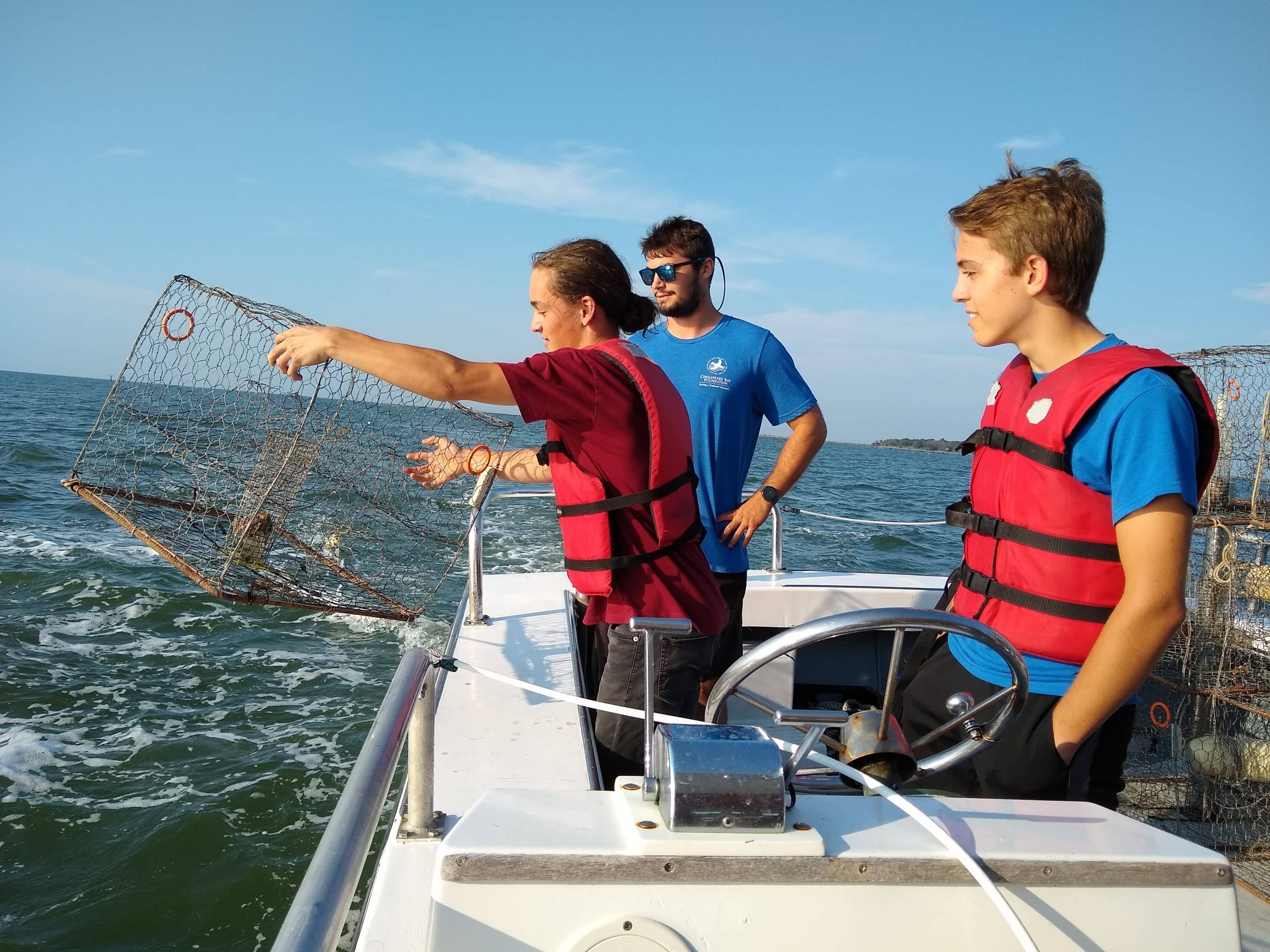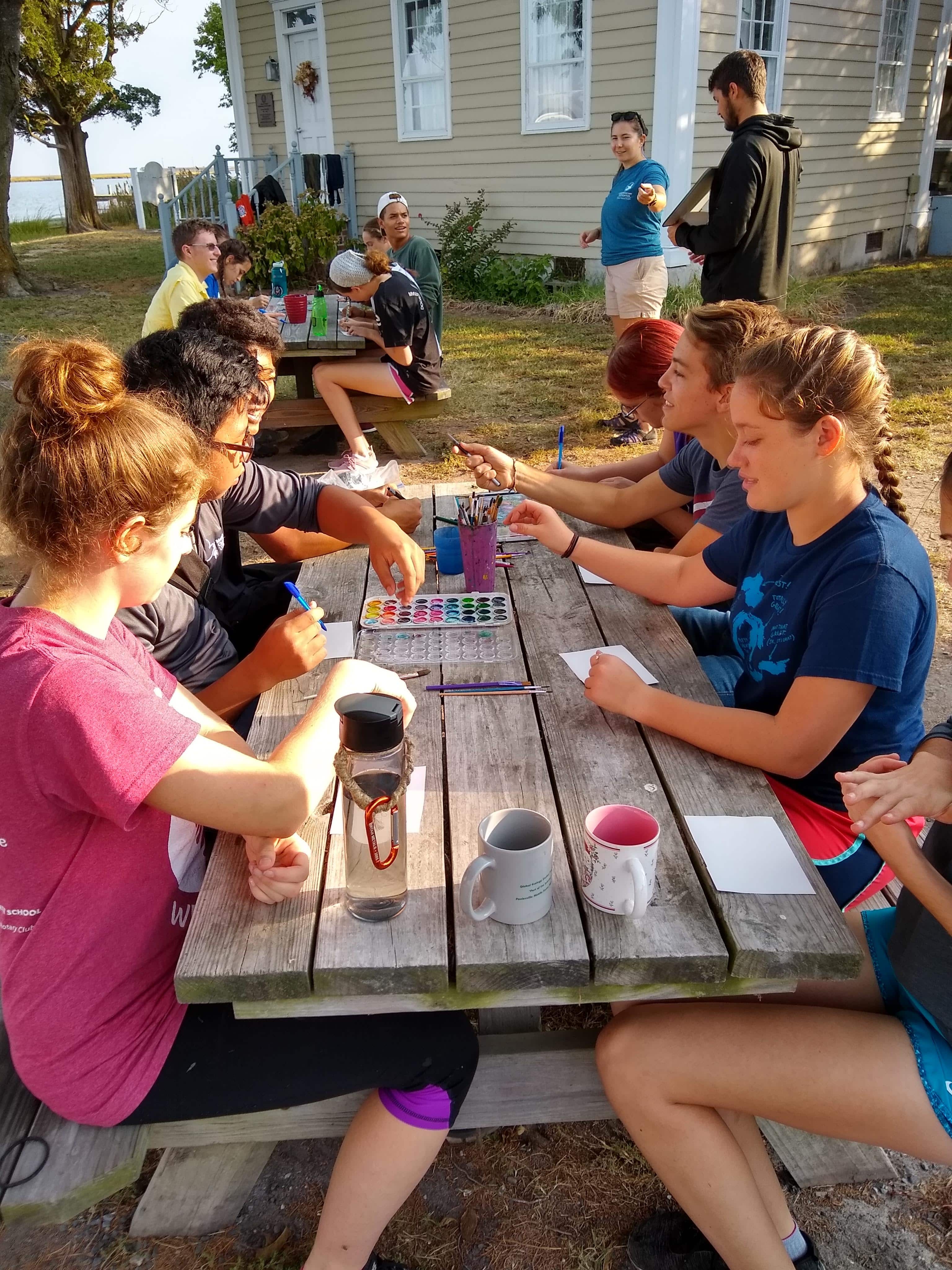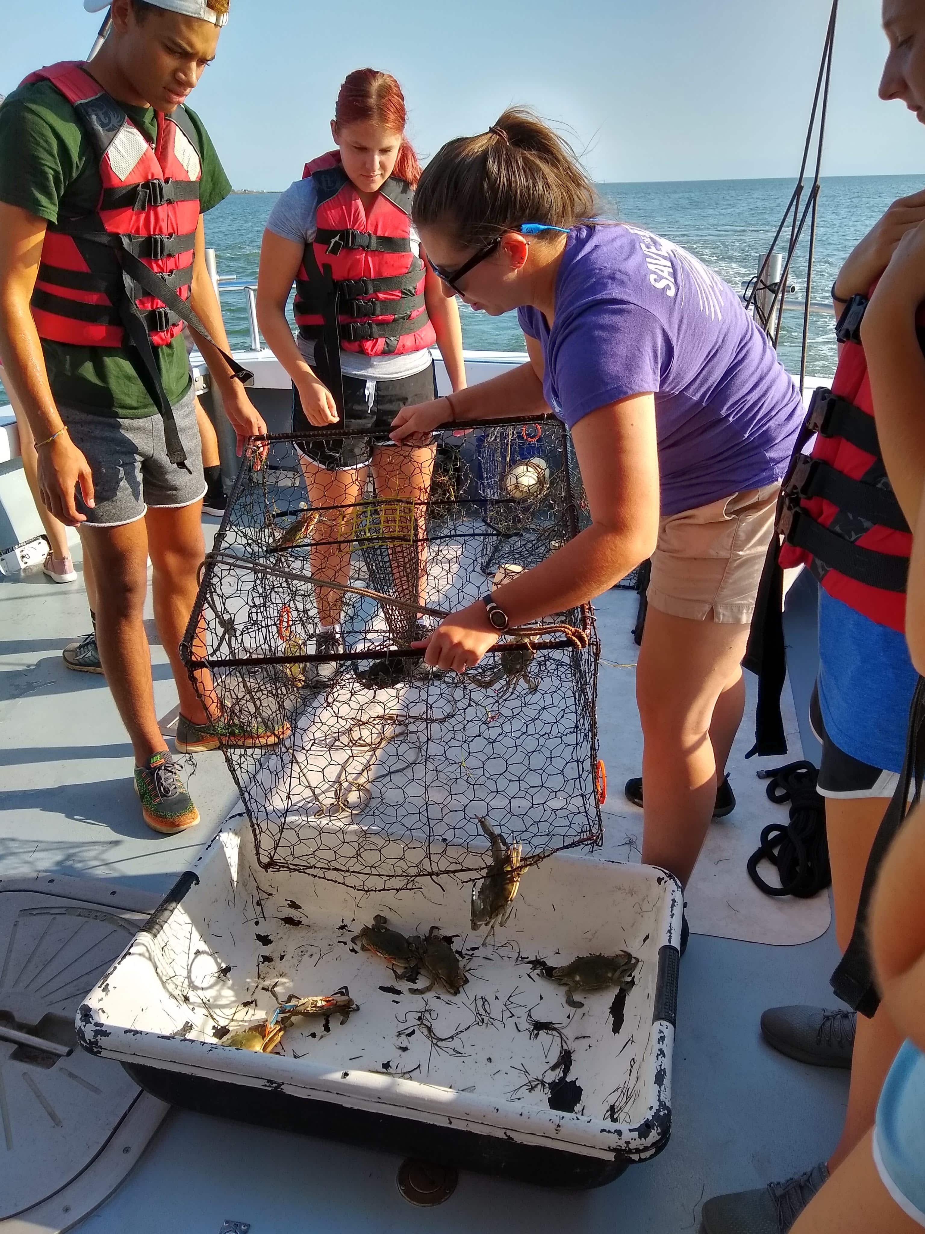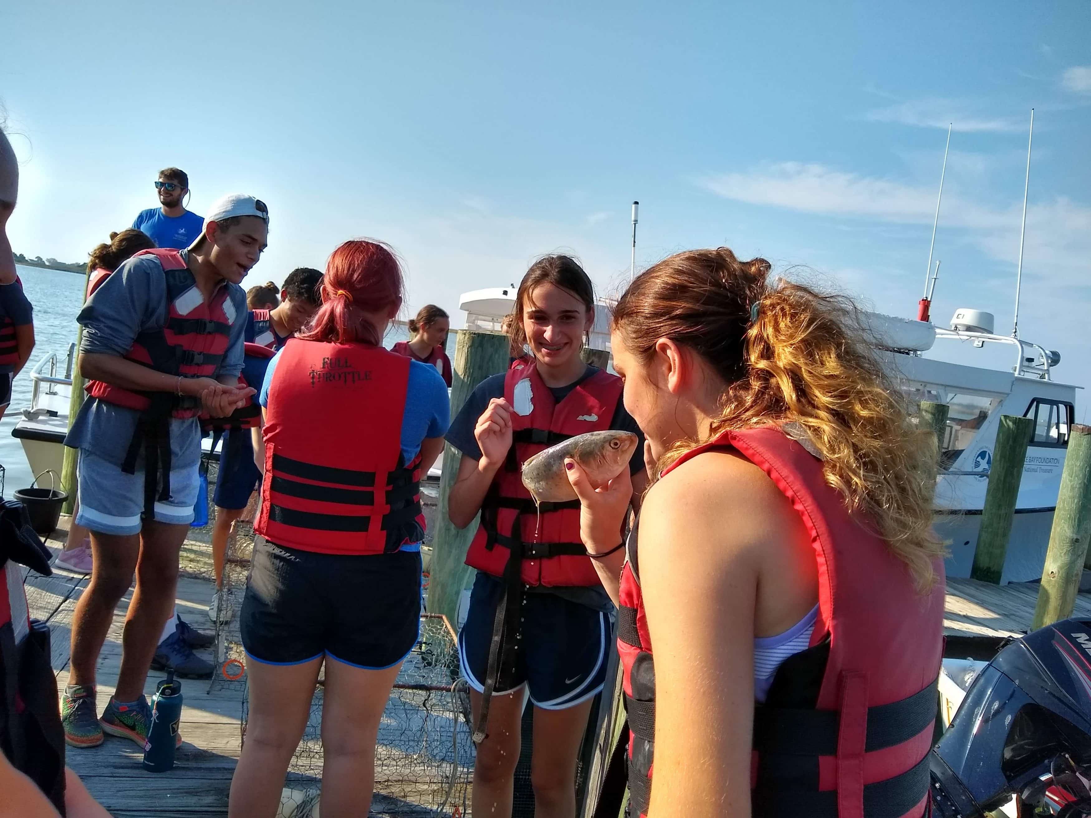 The trip ran September 28 to 30. They set and pulled crab pots, scraped grass beds for crabs and other invertebrates, watched marine TV, experienced “marsh mucking,” identified species as they learned about biodiversity, created art, talked with local residents and, “played games, games and more games,” reports Mr. Good.