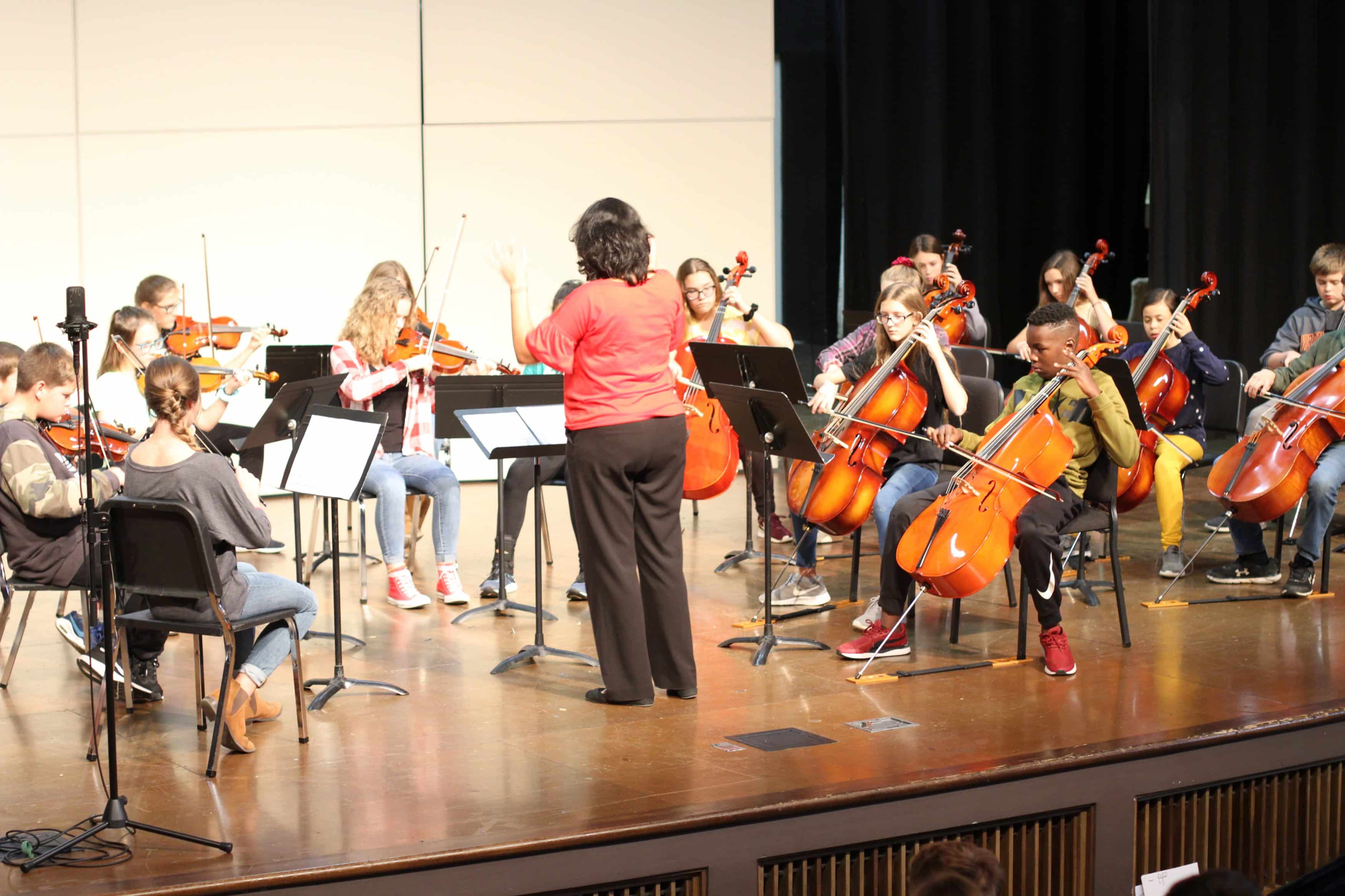 First and second grade strings classes shared mini concerts for parents and grandparents. All first and second graders take strings two times a week with Maria Lorcas, a program that is partially grant funded by the Virginia Commission for the Arts.