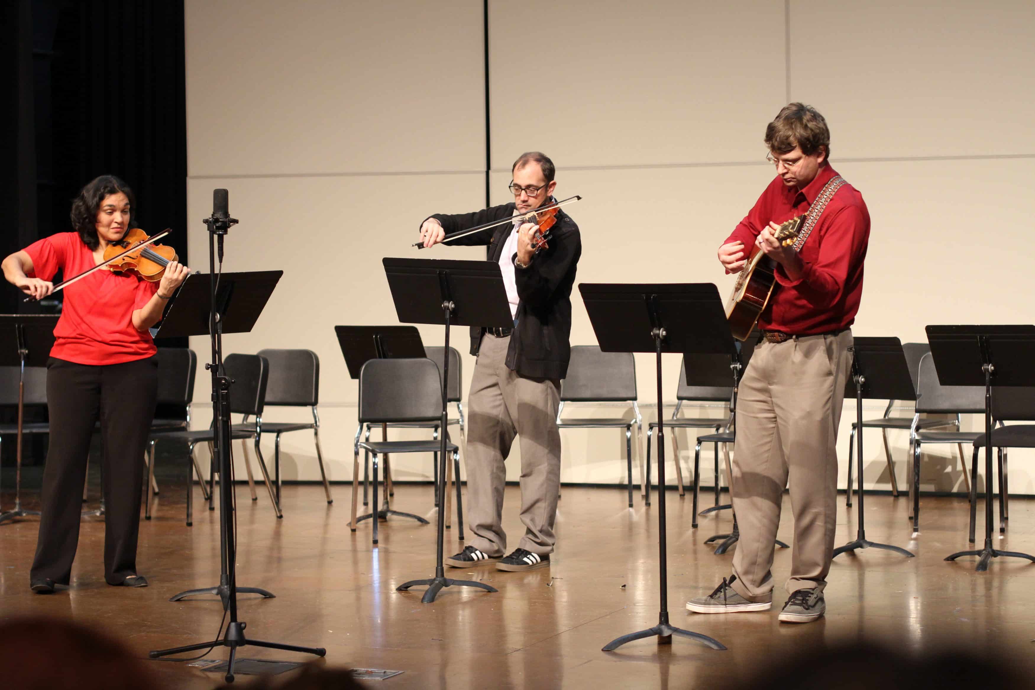Later in the program, Mrs. Lorcas, Jared Stutzman (choir and orchestra teacher) and Brian Buchanan (band teacher, guitar and winds teacher) performed Ashokan Farewell by Jay Ungar (familiar from the Ken Burns miniseries The Civil War.)