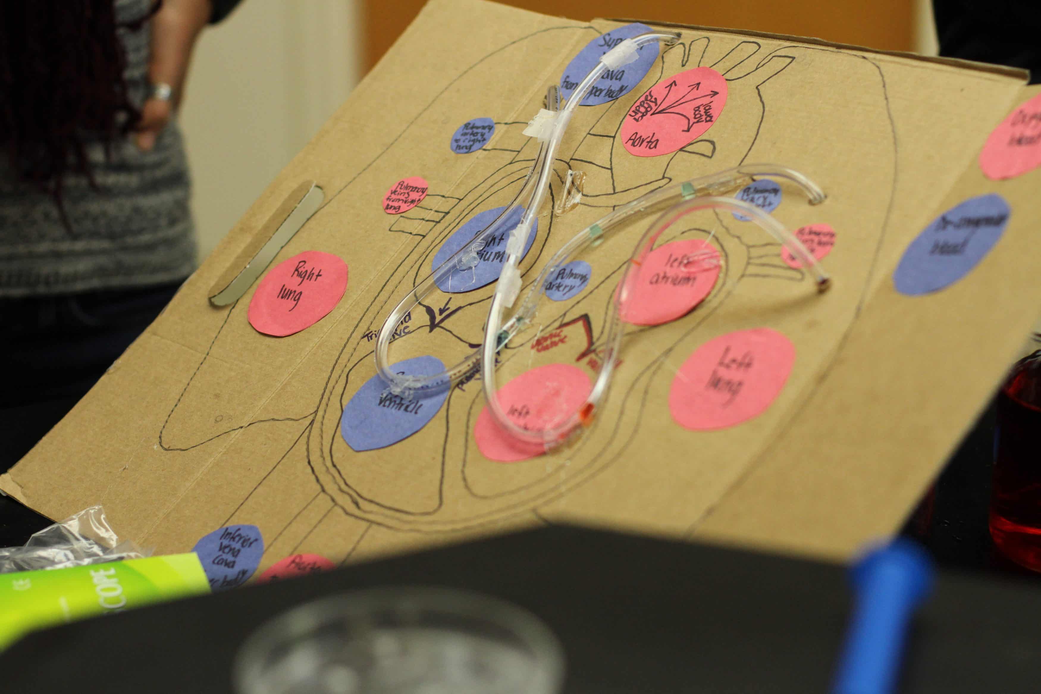The A&P students had created a heart model earlier in class to demonstrate how the heart regulates the blood flow and circulation through the human body, explains teacher Claudia Fencer. They also learned how to use a stethoscope to measure cardiac sounds and frequency, and to take each others’ blood pressure.