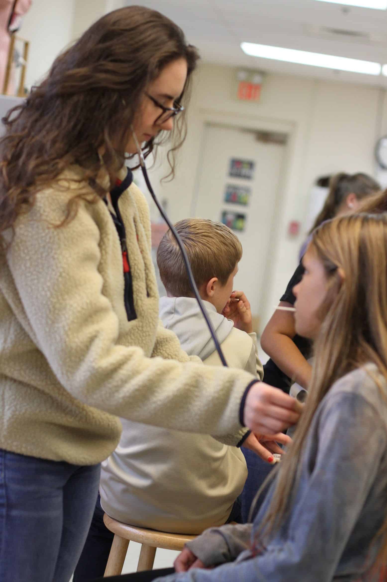 Fifth grade students recently learned about their own hearts and the human circulatory system during a “clinic hour” hosted by high school anatomy and physiology students.