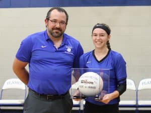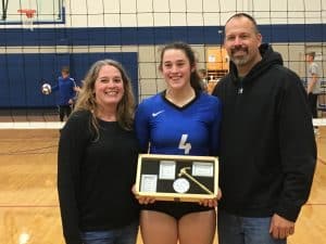 Adrienne Cline being recognized during the season for passing 1,000 kills