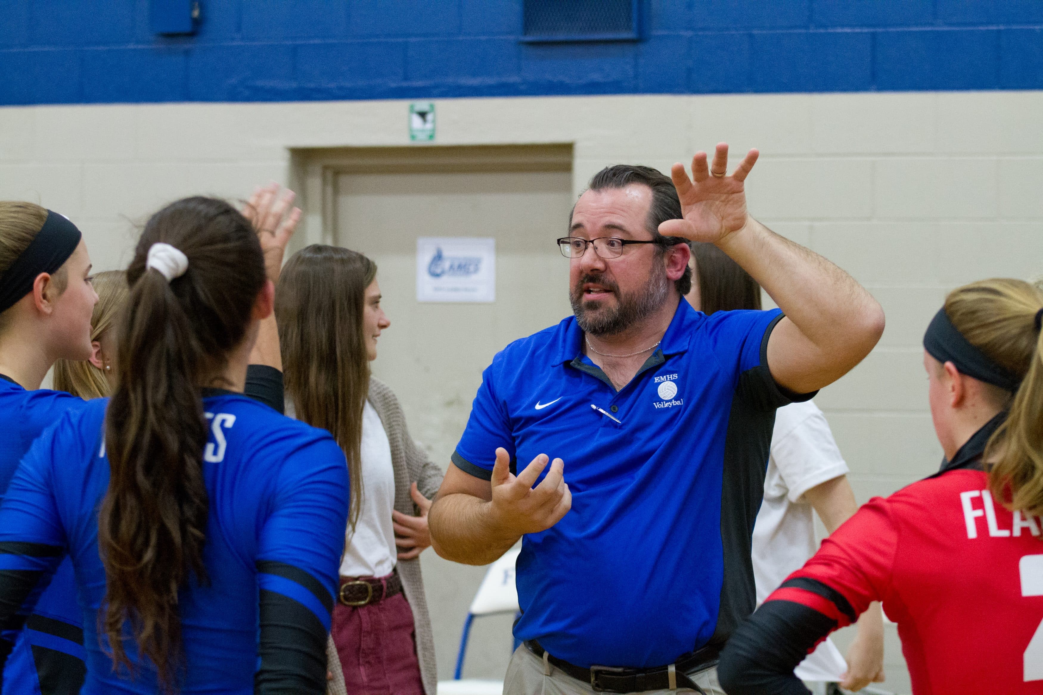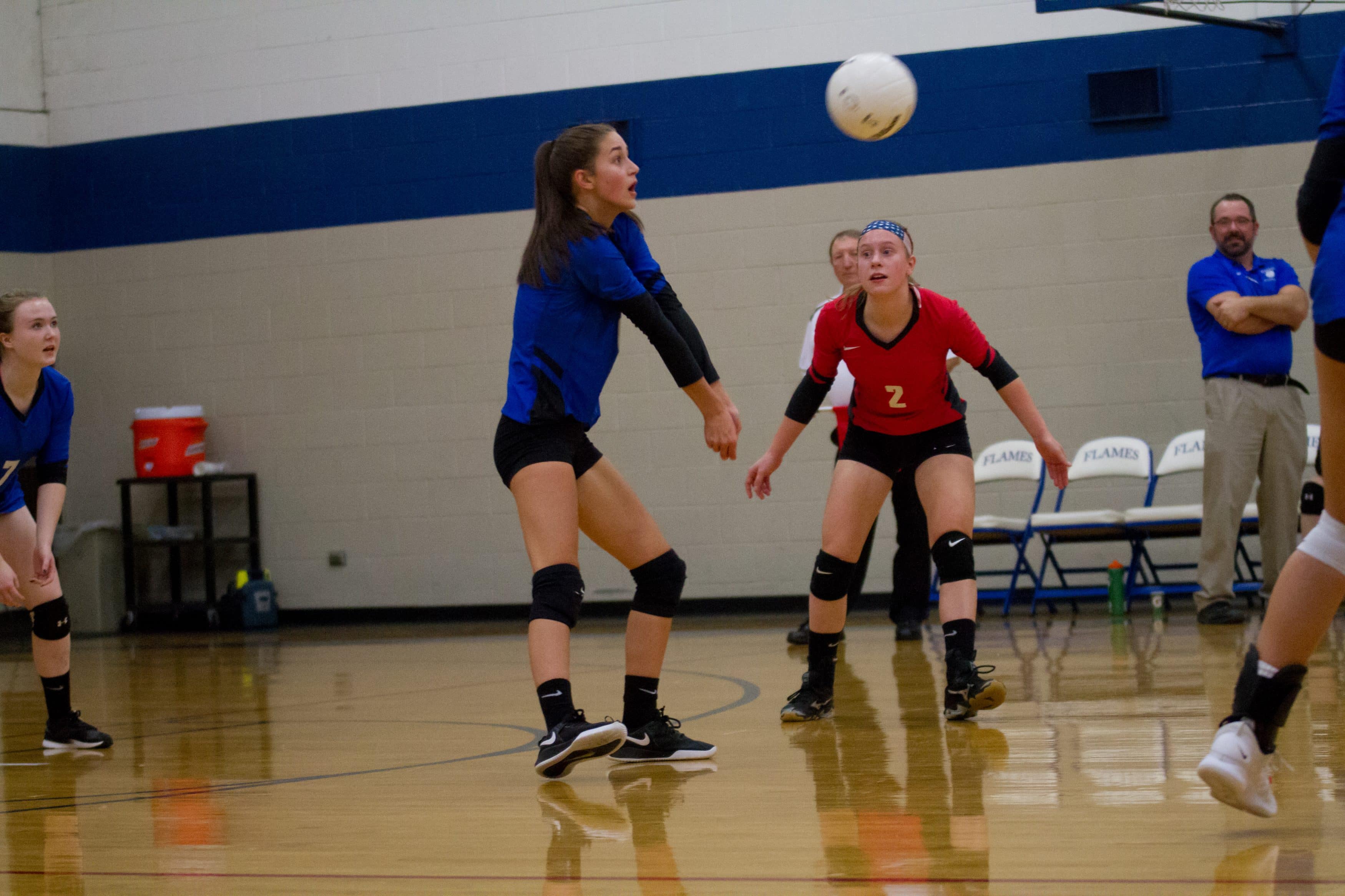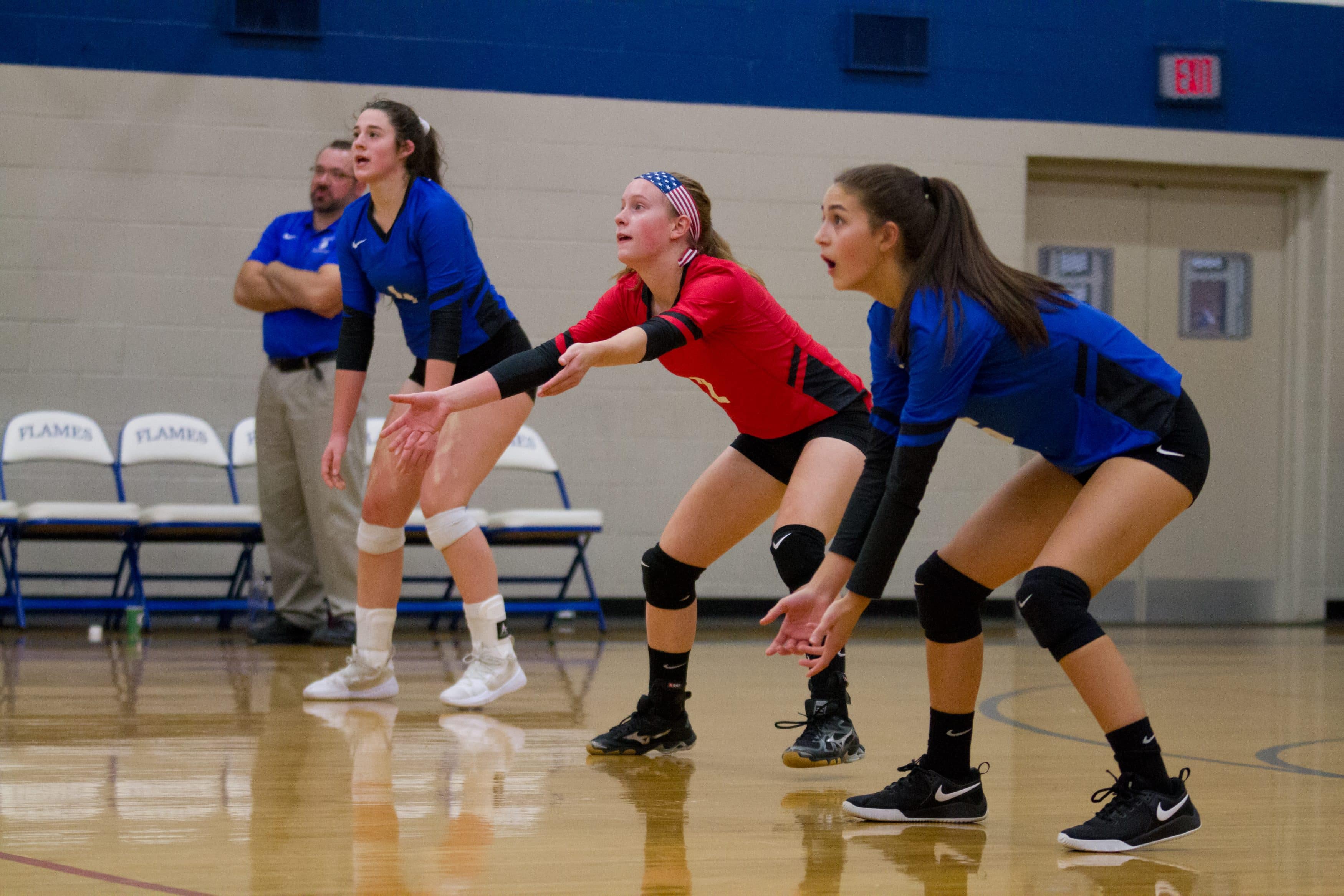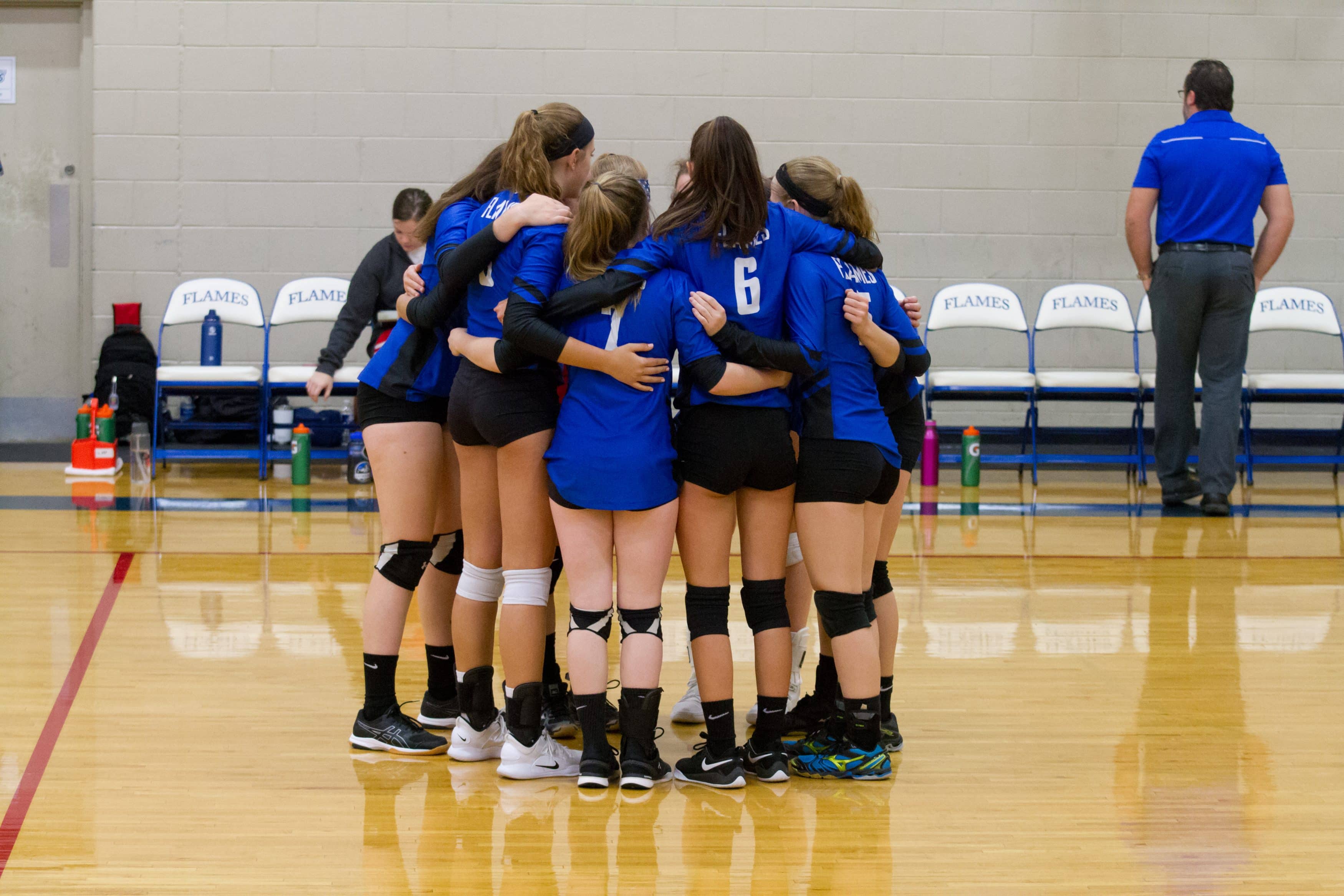In the Virginia Independent Schools Athletic Association Division III quarterfinals, EMHS had home court advantage on Nov. 6 when the Flames rallied from a two-set deficit to defeat sixth-seeded Guardian Christian Academy 23-25, 25-27, 25-15, 25-21, 15-5. Rowdy fans of all ages filled the house for the thrilling outcome.