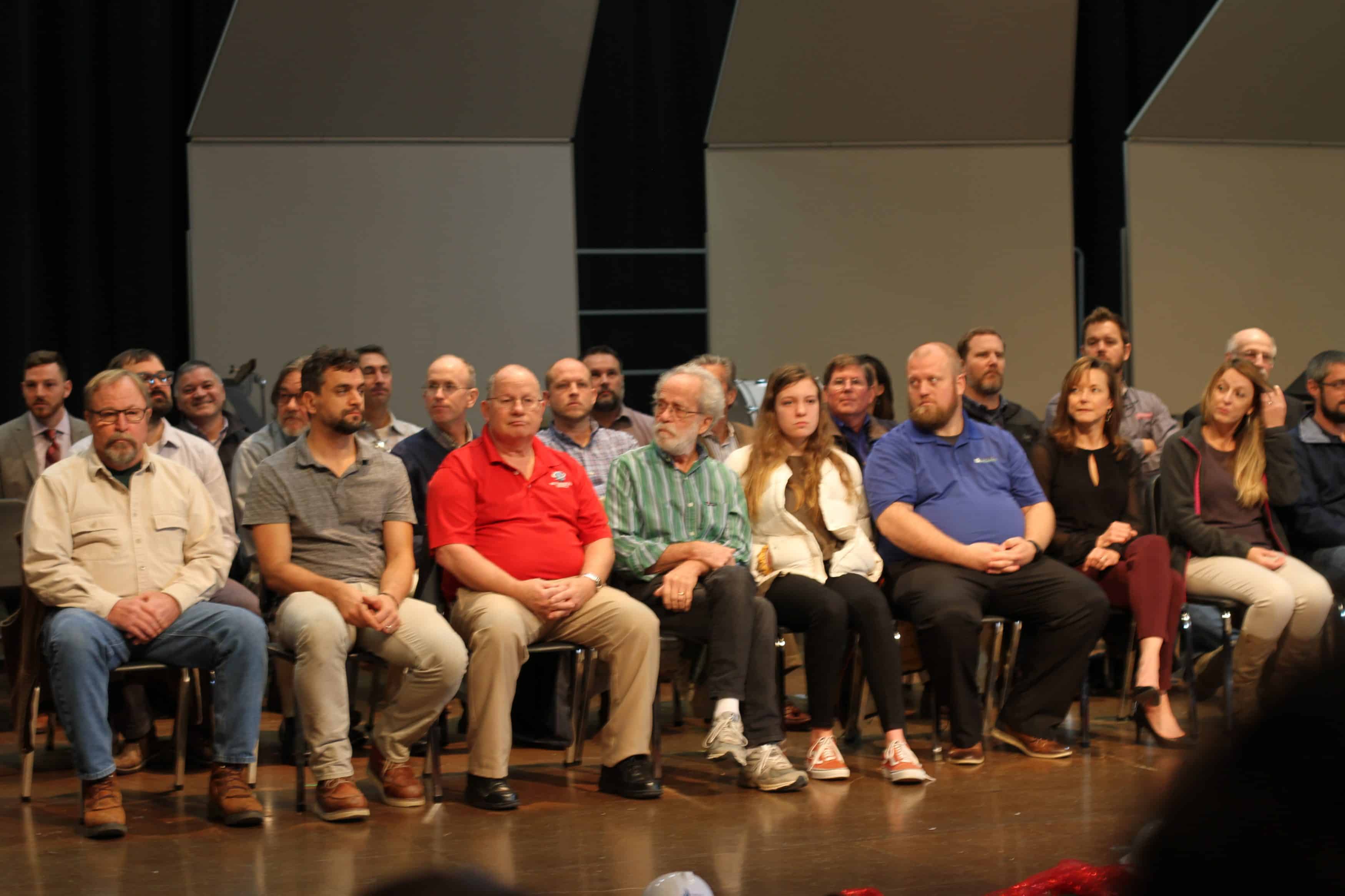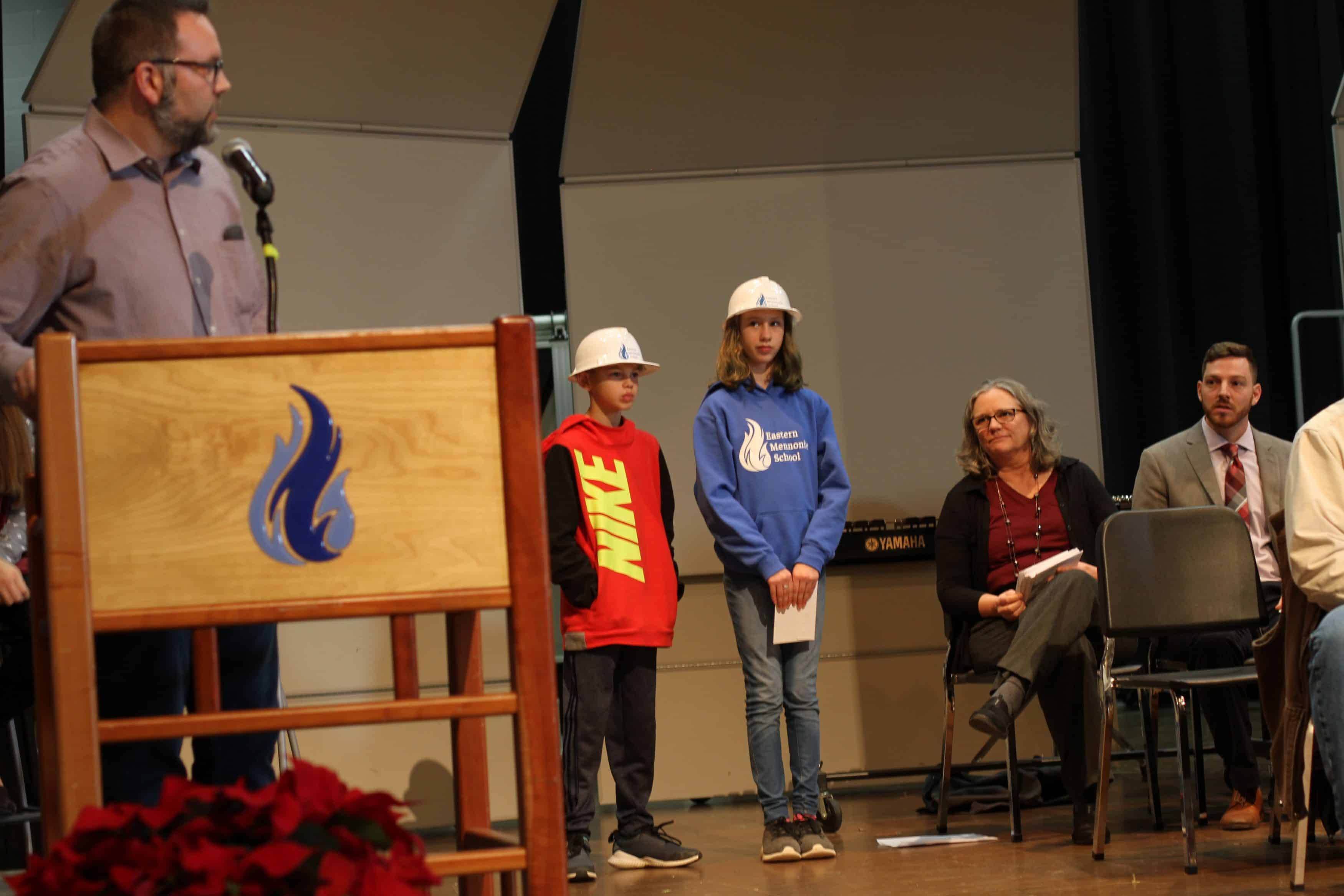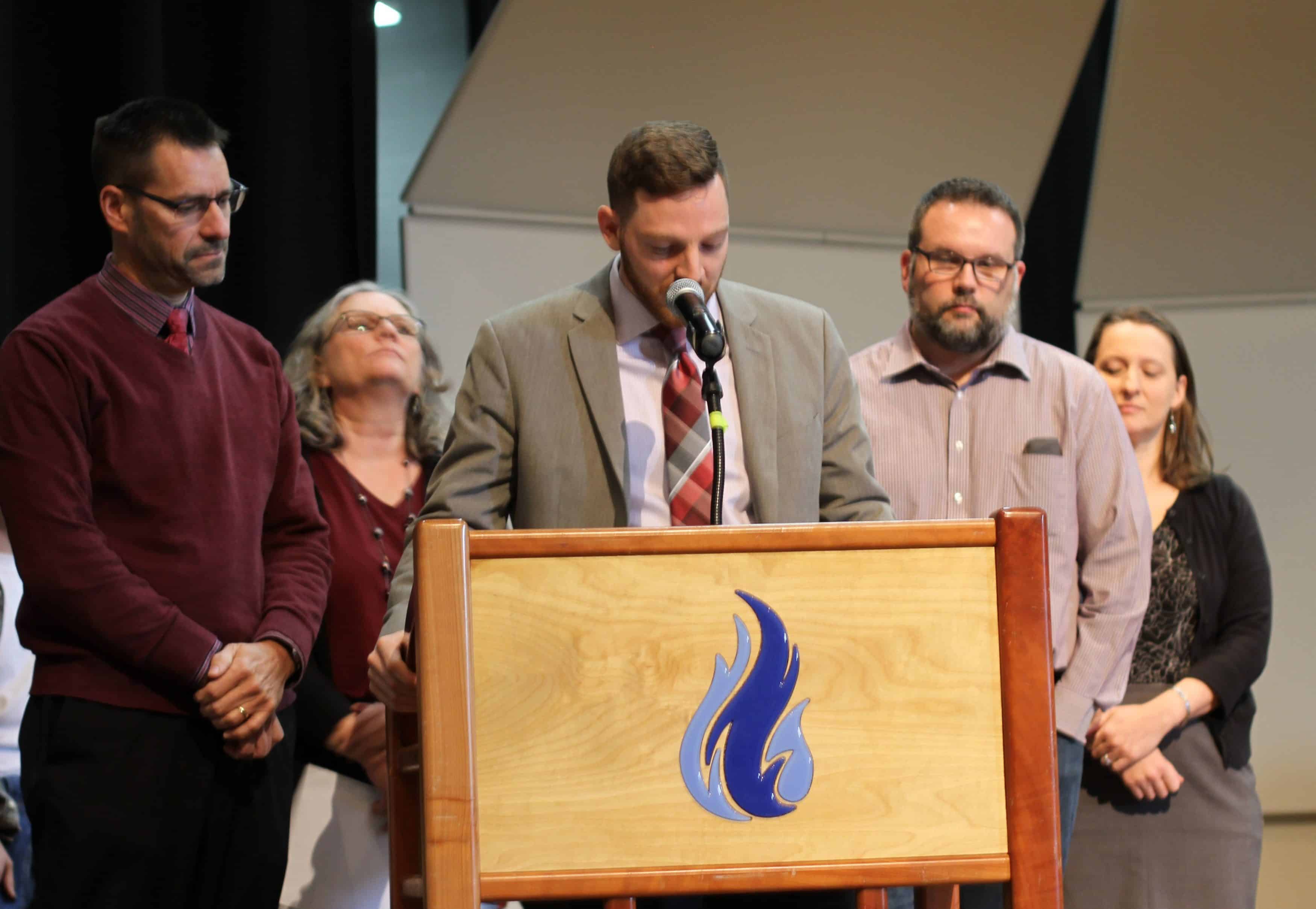 The day before the move, K-12 students recognized and thanked the many local businesses, vendors, professionals, and tradespeople who were part of the building renovation during a special chapel. Prayer and a litany provided time to thank God for many blessings in this process. Nearly 30 sub contractors were on the stage for the recognition.