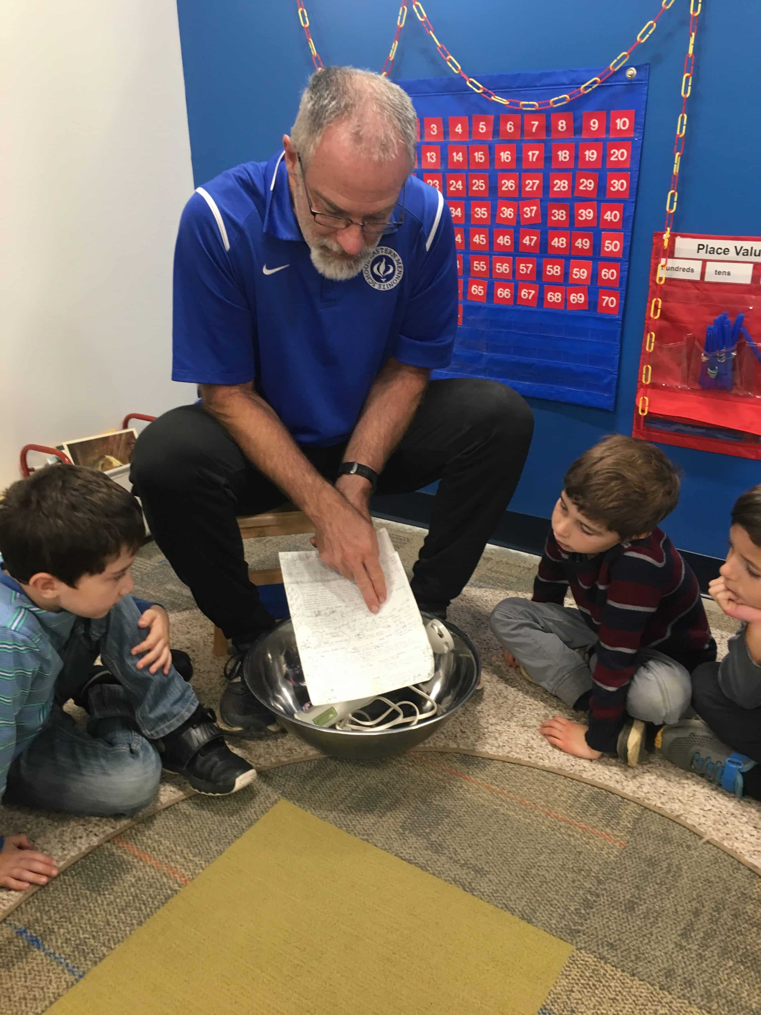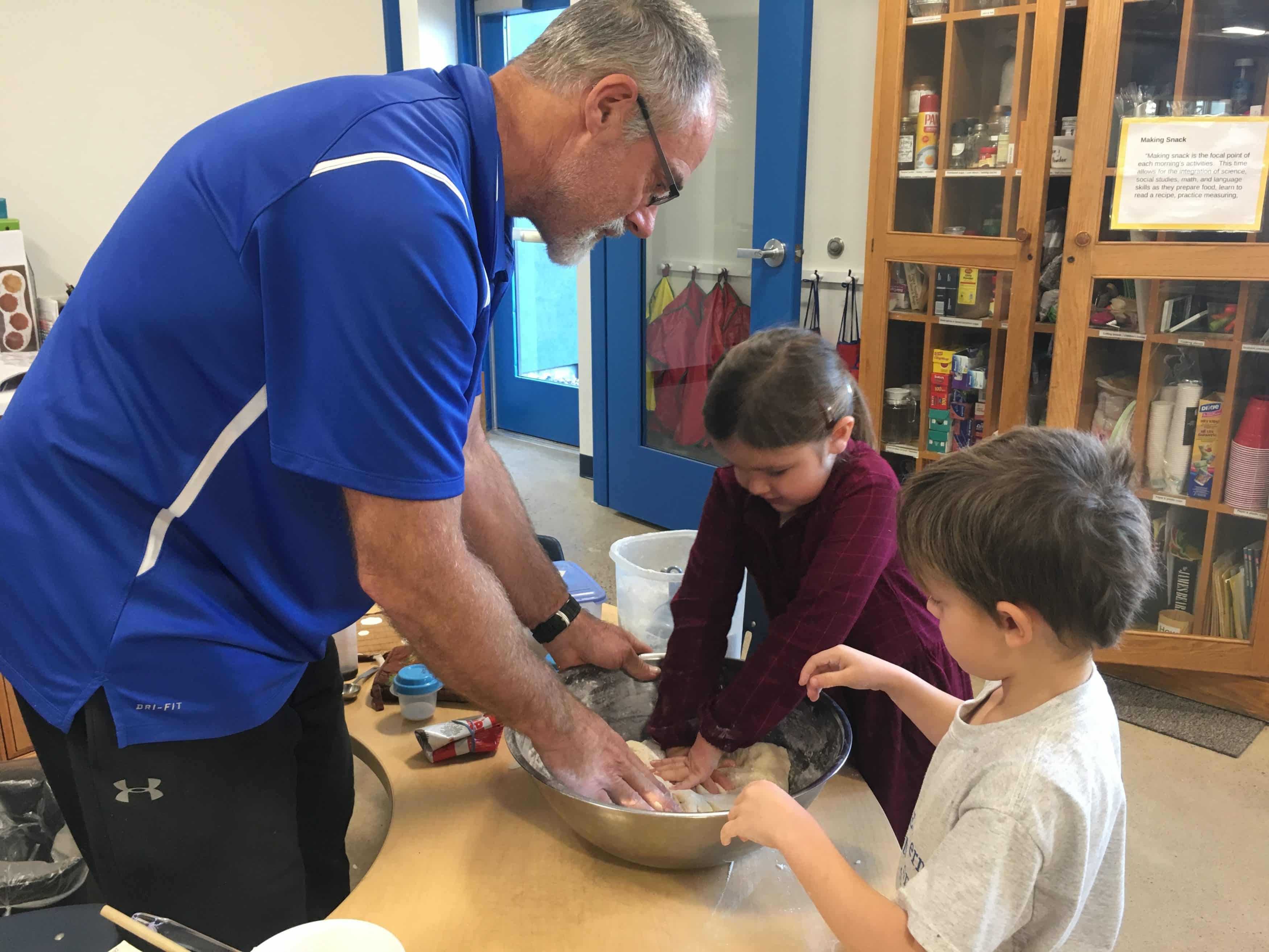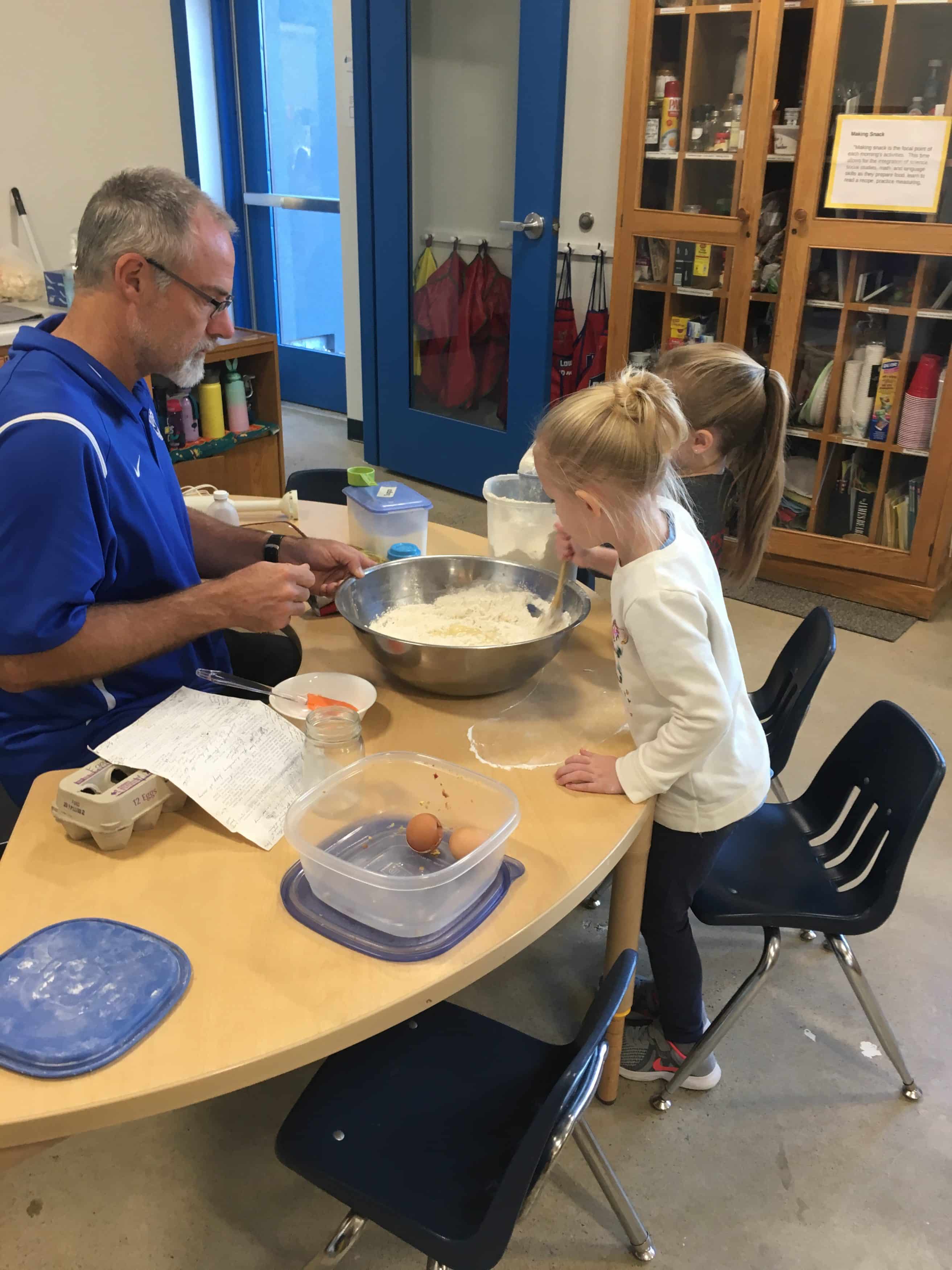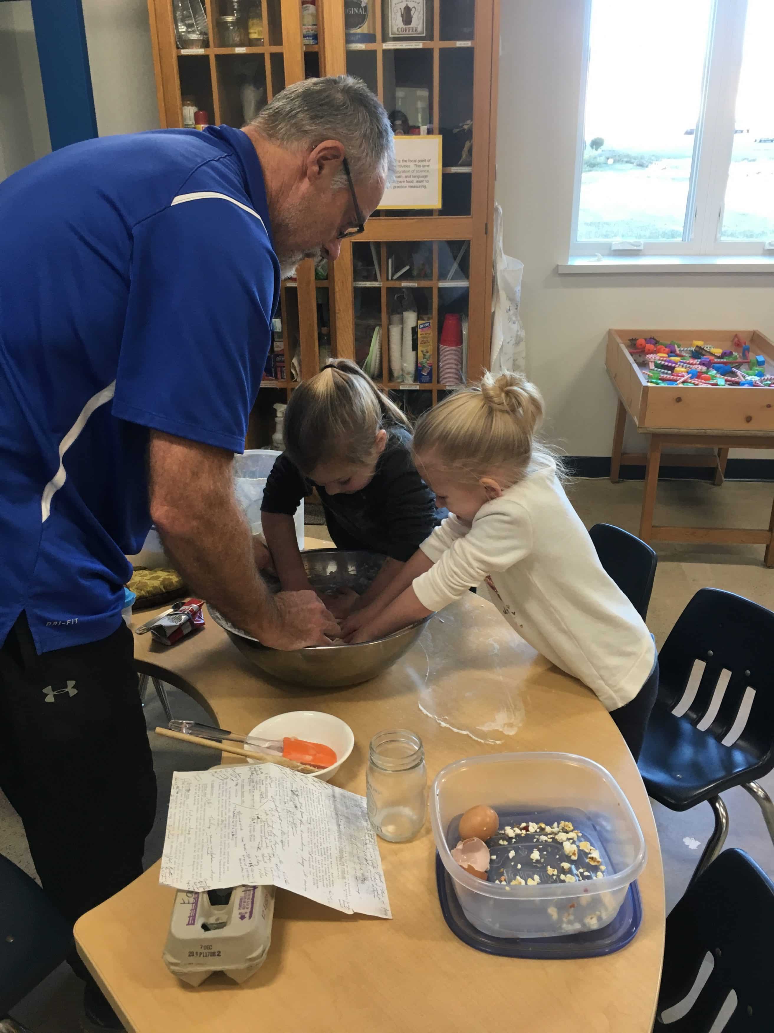 On their third full day in the newly renovated elementary building, the kindergarten students enjoyed working with Mr. Bauman to create his mother’s special cinnamon roll recipe, one that he now uses in his own family.