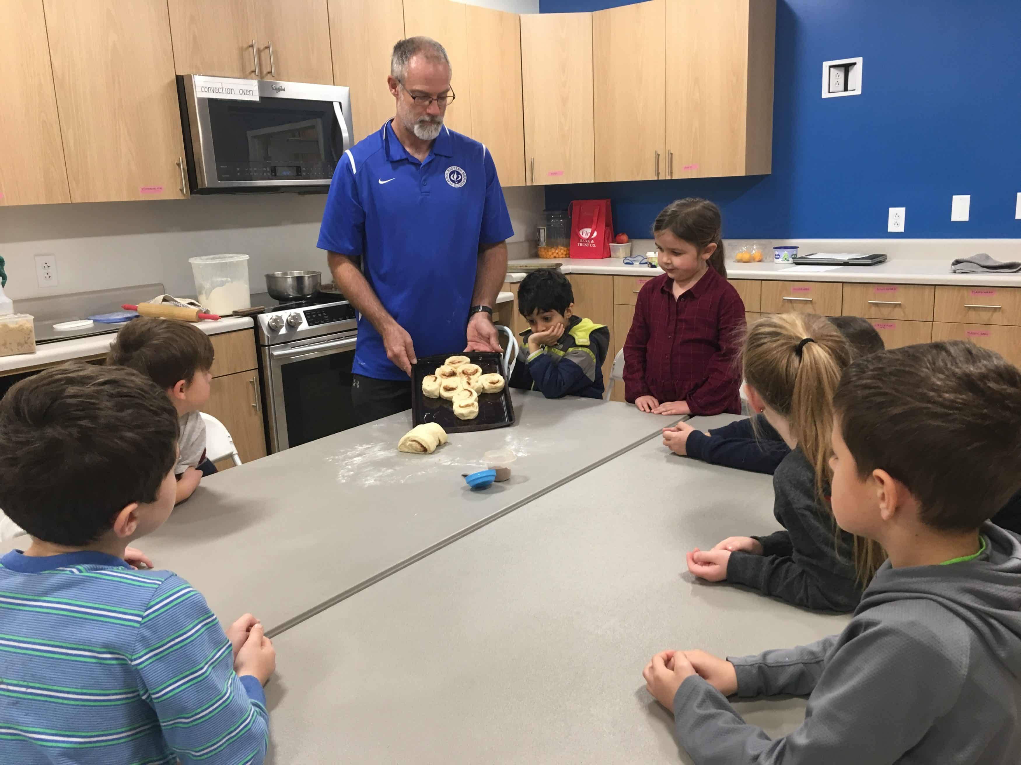 Baking cinnamon rolls with a group of kindergarten students is a project that elementary PE teacher Kendal Bauman couldn’t resist.. especially since there is a brand new teaching kitchen involved.