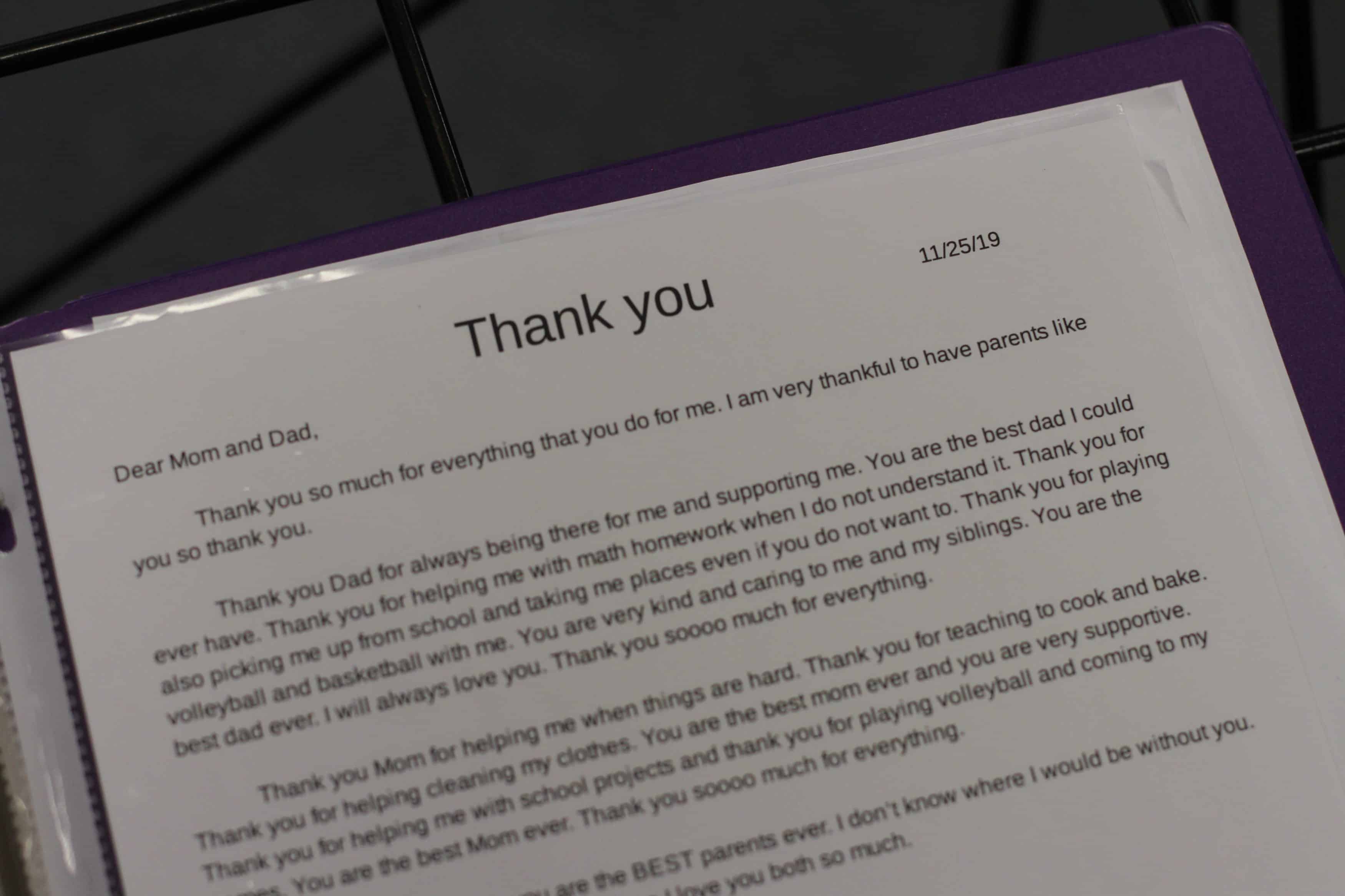 – a thank you letter to parents/guardians