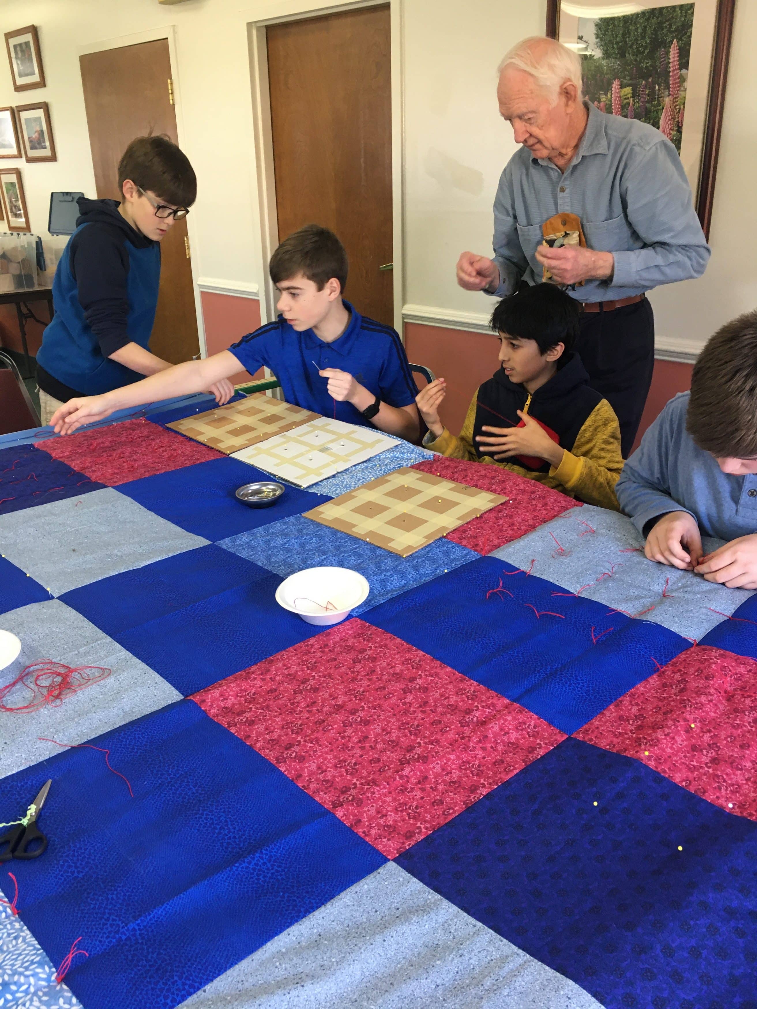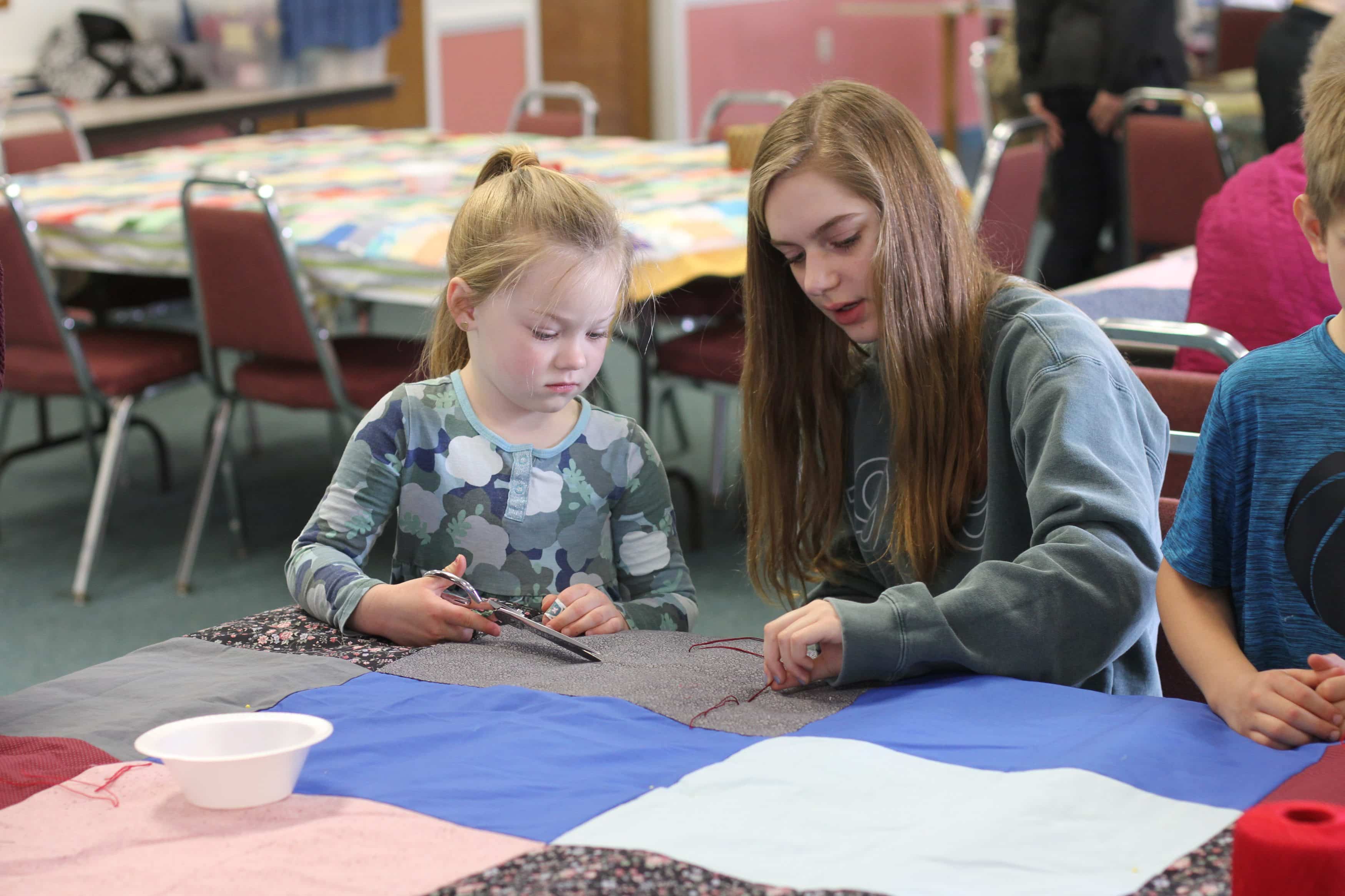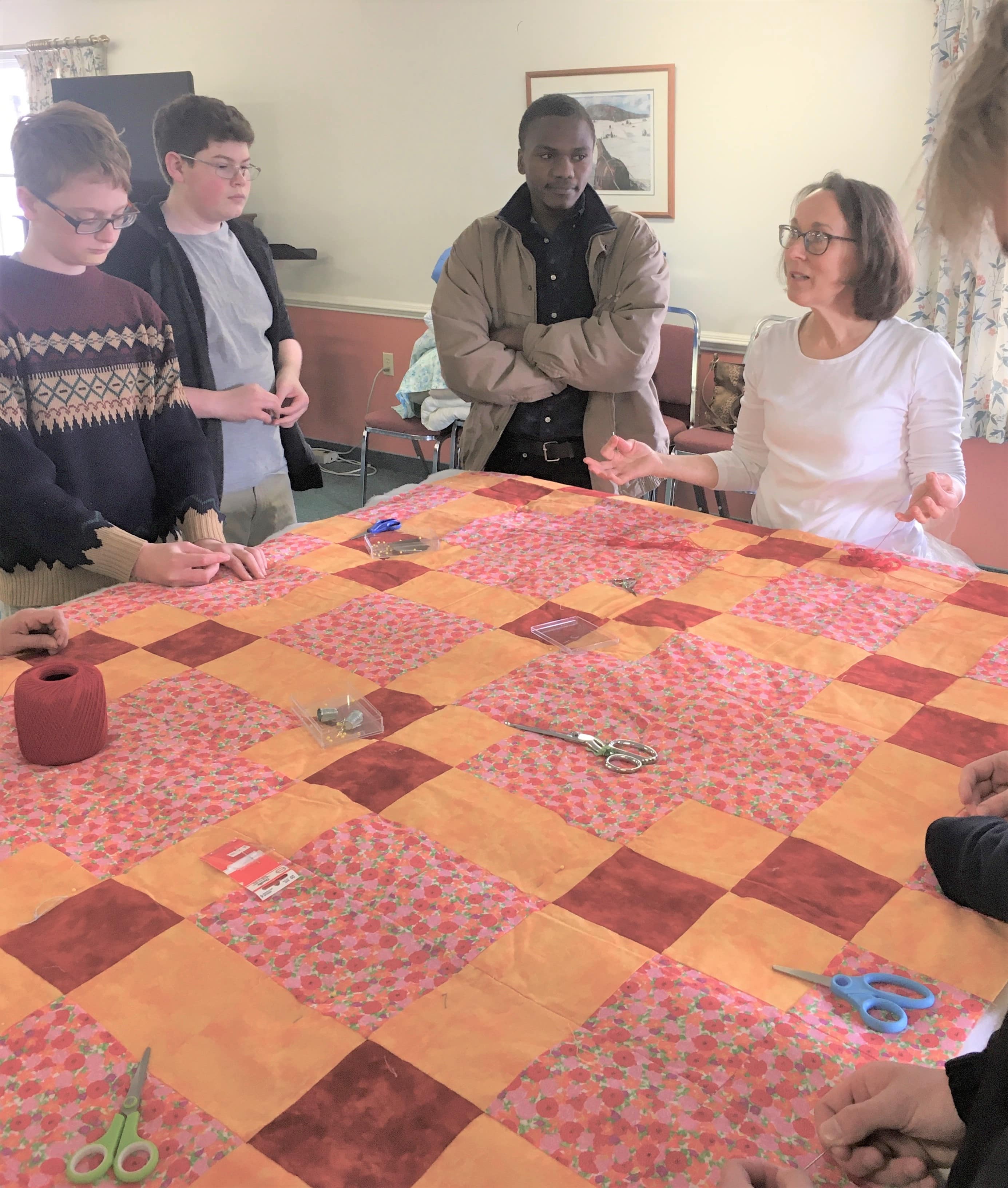 This was a wonderful shared event with the students. Priceless conversation flowed between the generations and getting 40 comforters made for MCC over the two days was a record for our group. Thank you for joining us.