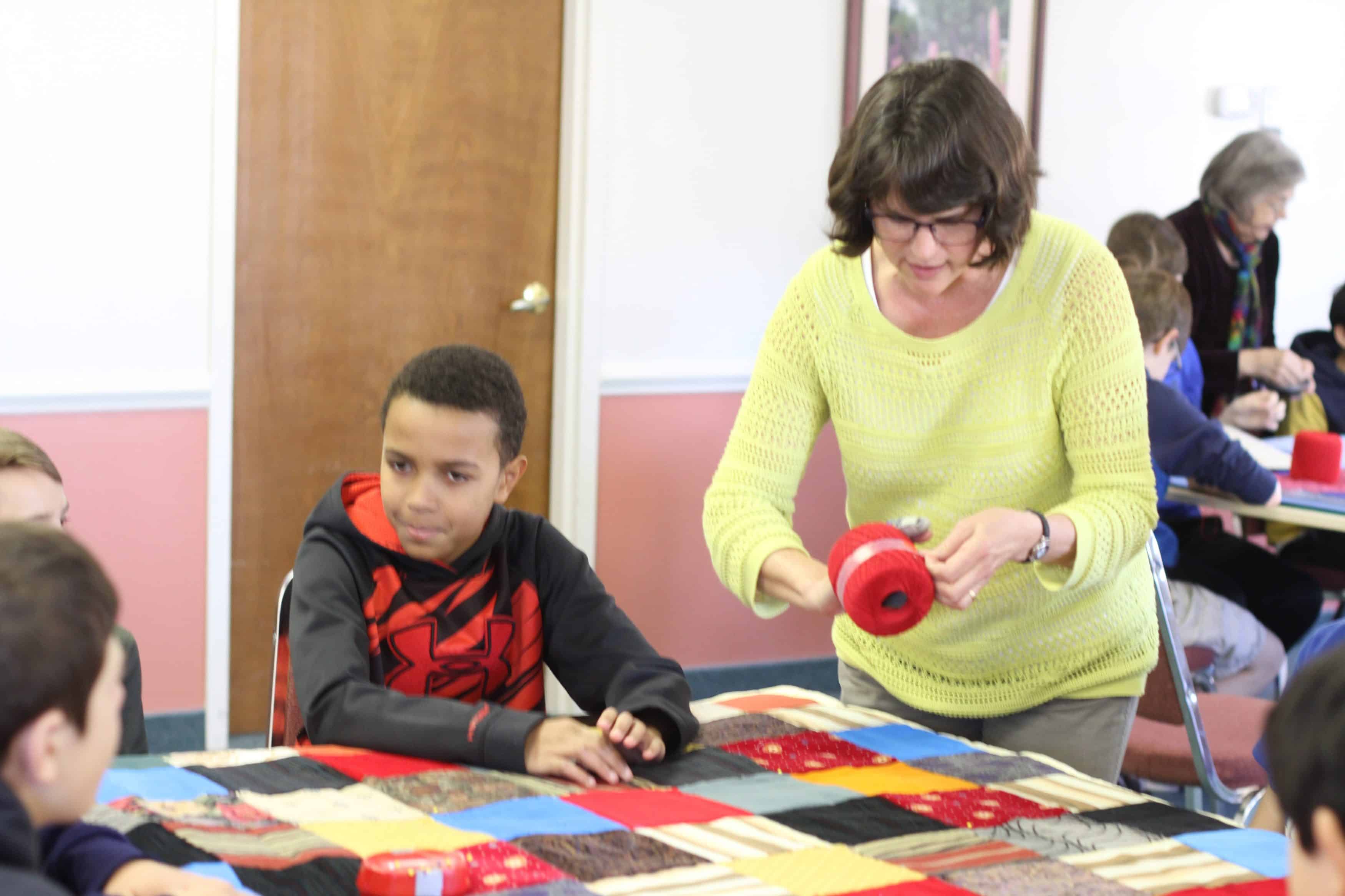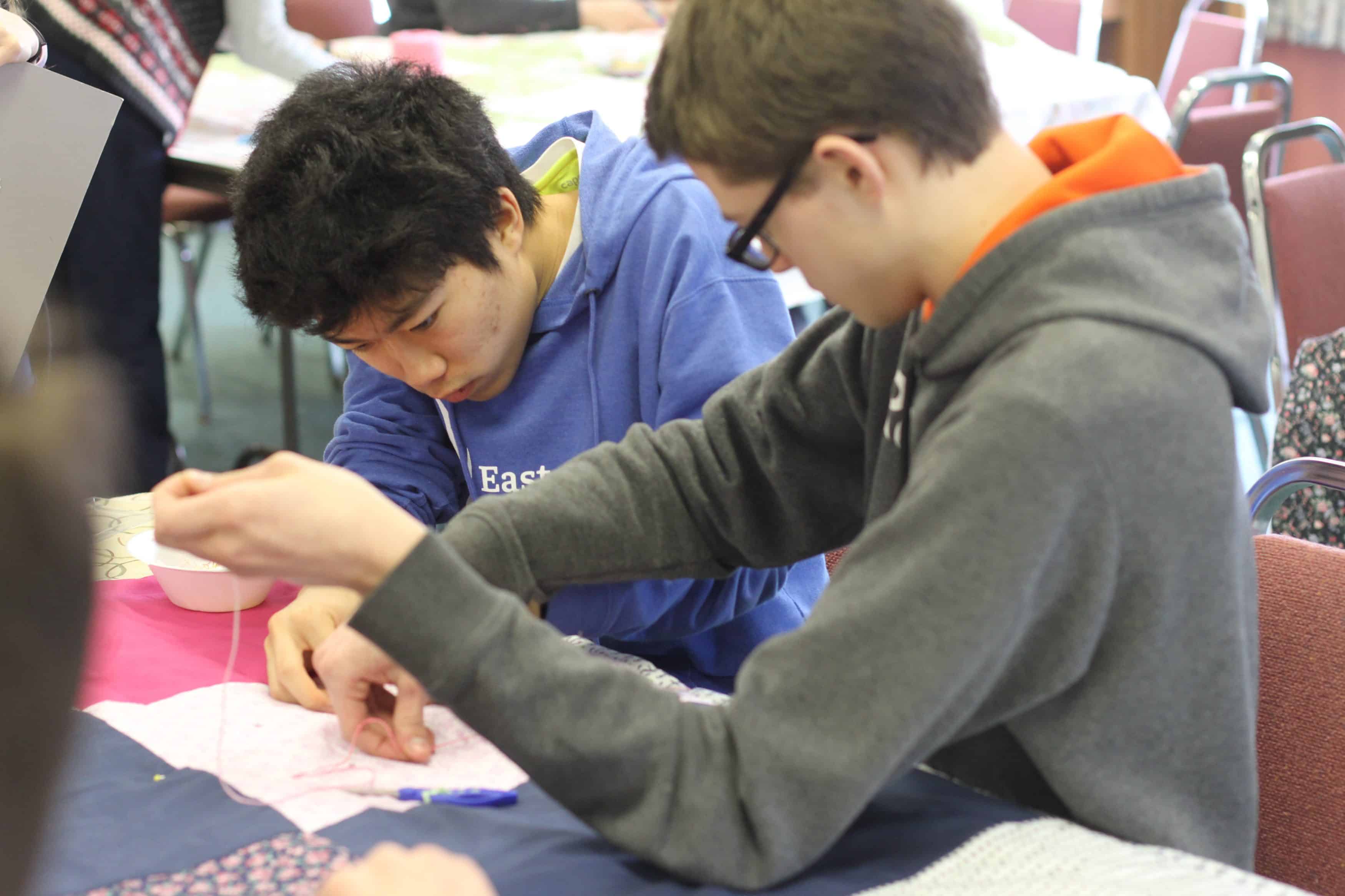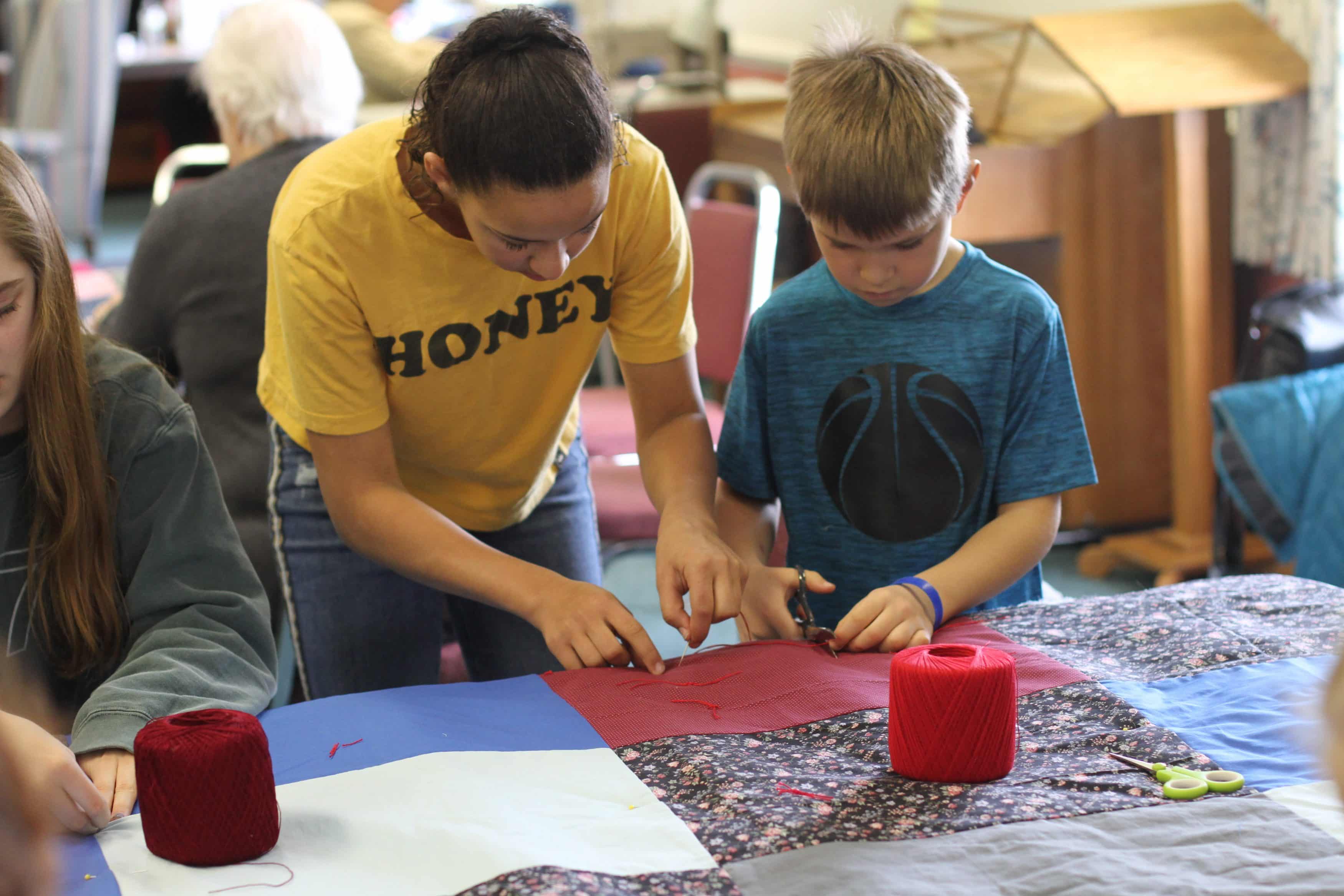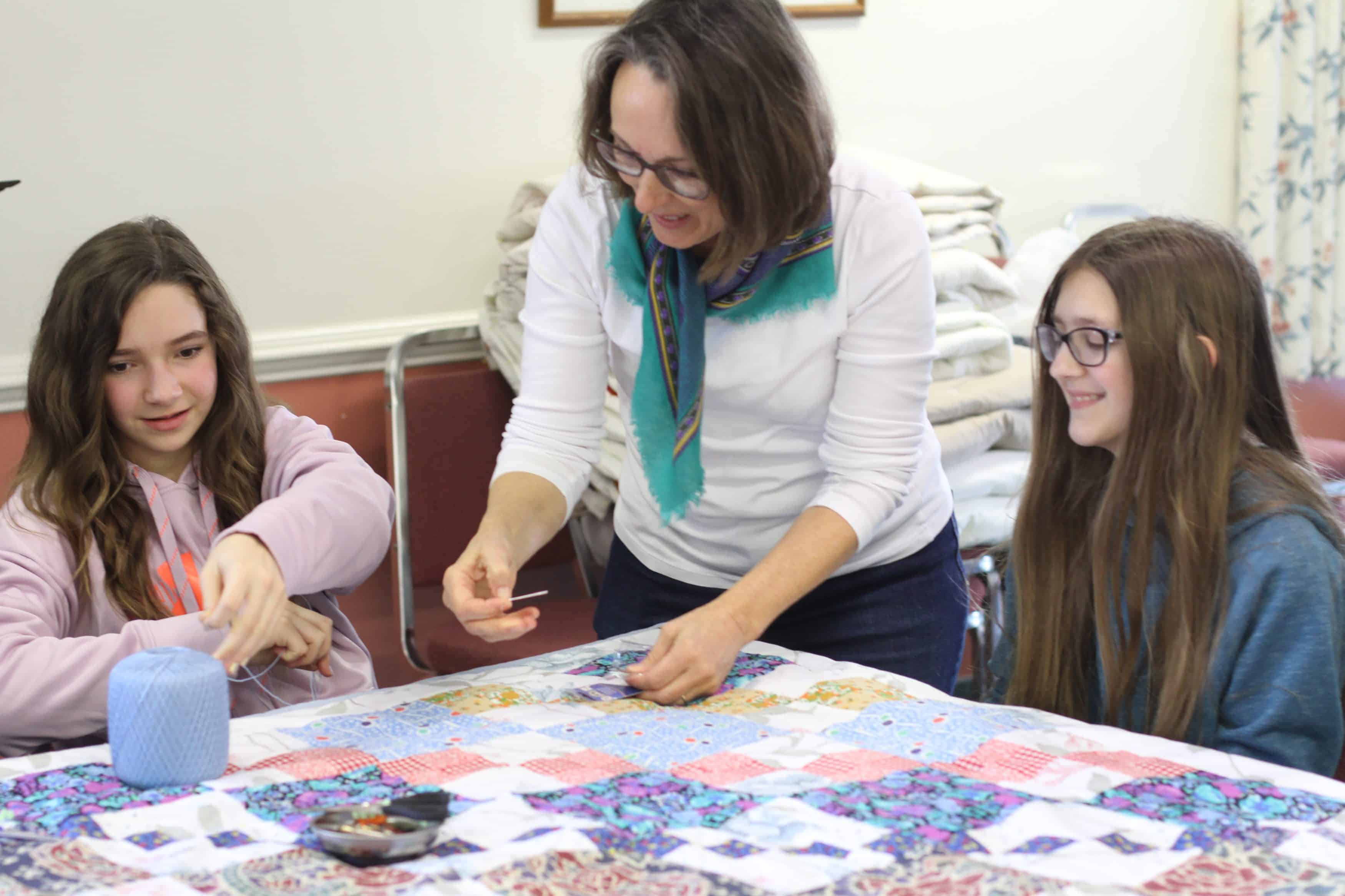 This was a wonderful shared event with the students. Priceless conversation flowed between the generations and getting 40 comforters made for MCC over the two days was a record for our group. Thank you for joining us.