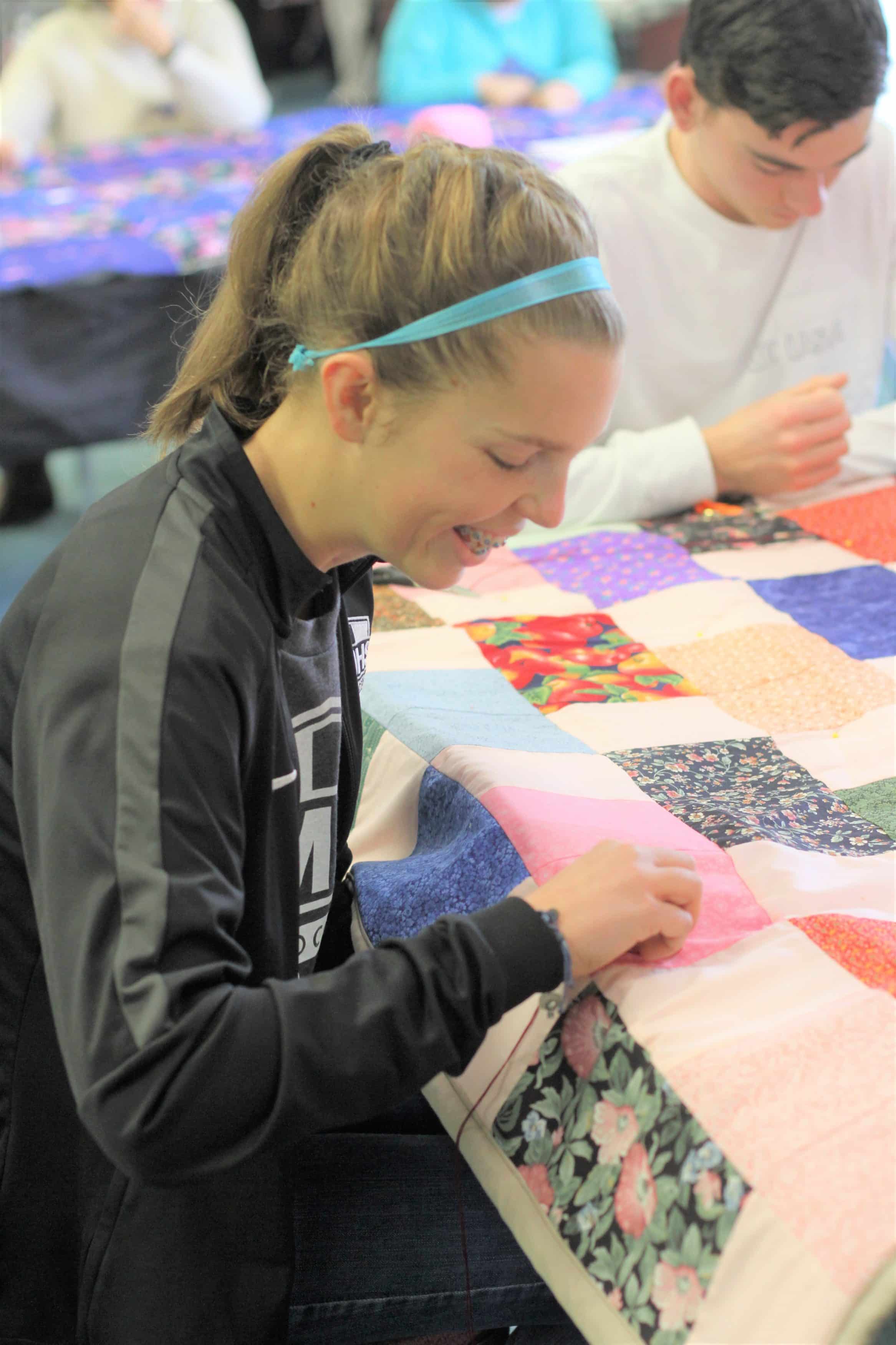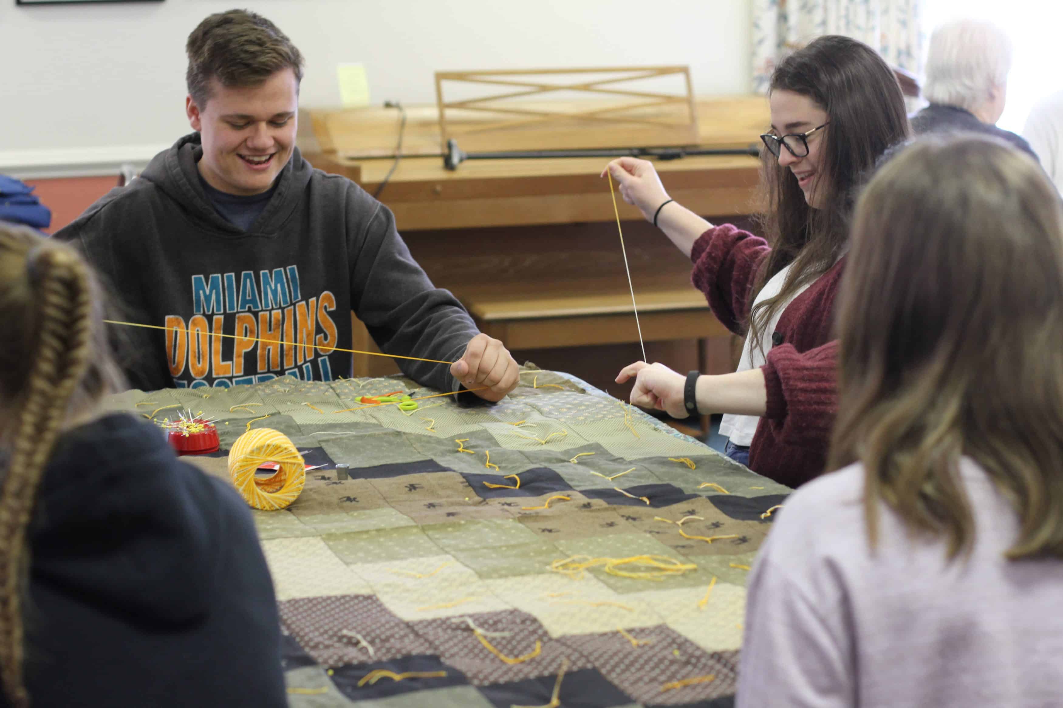 “It’s been just wonderful having the students here,” said LuAnn, noting that the combined effort resulted in more completed comforters — 40 — than they had had in years’ past. “It’s fun to see people catch the spirit and enjoy talking while doing something meaningful with their hands.”
