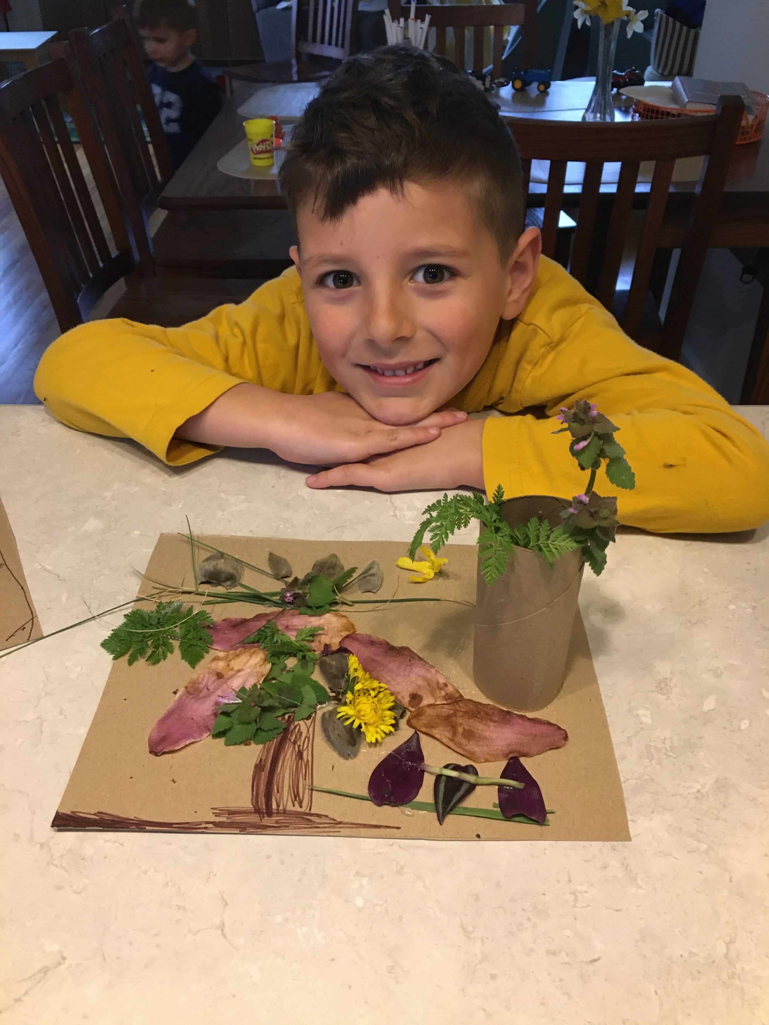 Fill small flower pots with dirt playdough then poke silk flowers into the playdough to create beautiful flower arrangements.