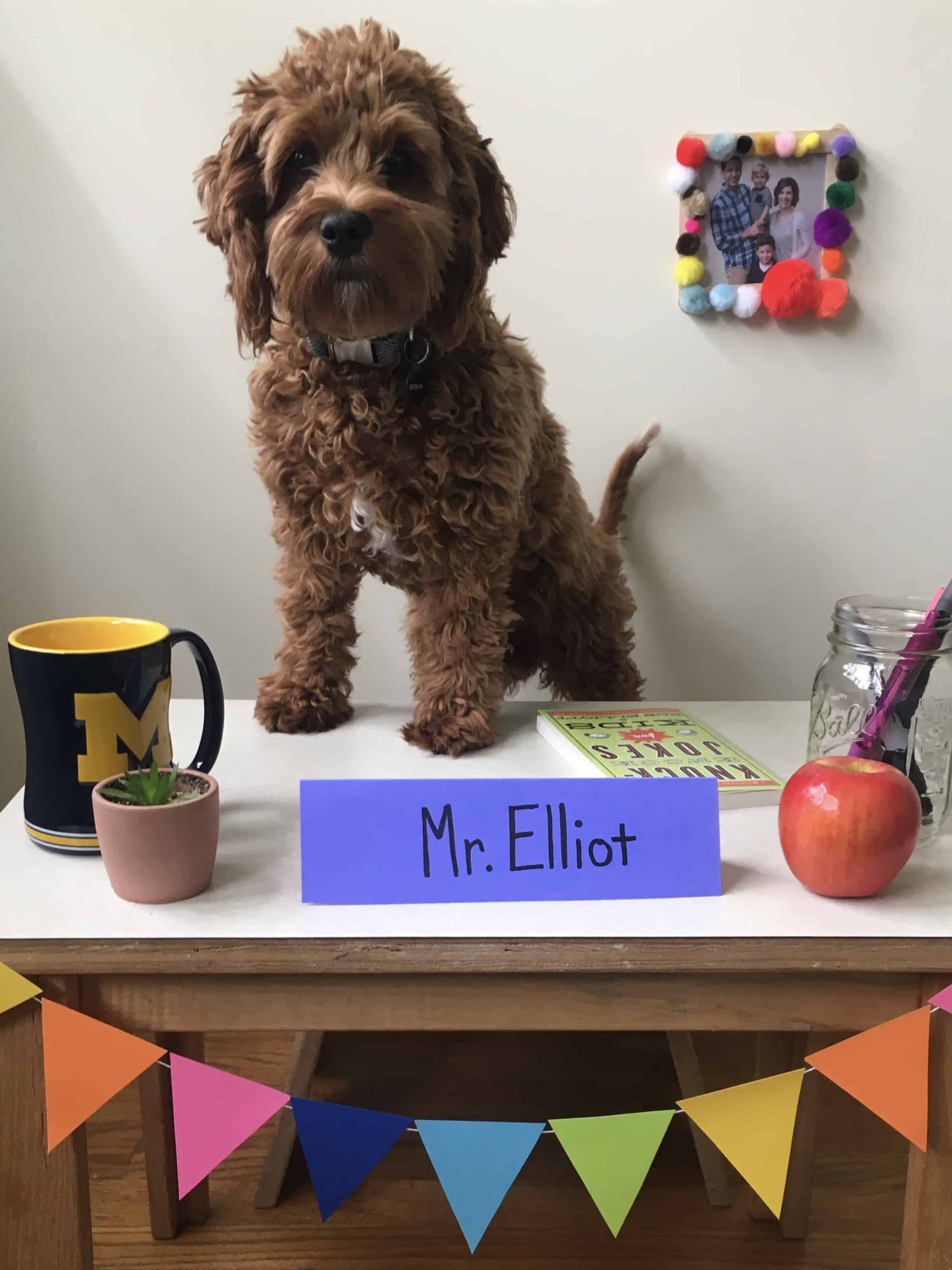 And, “the fifth grade teaching assistant, Mr. Elliot, is special to all” reports Gascho about the family dog.