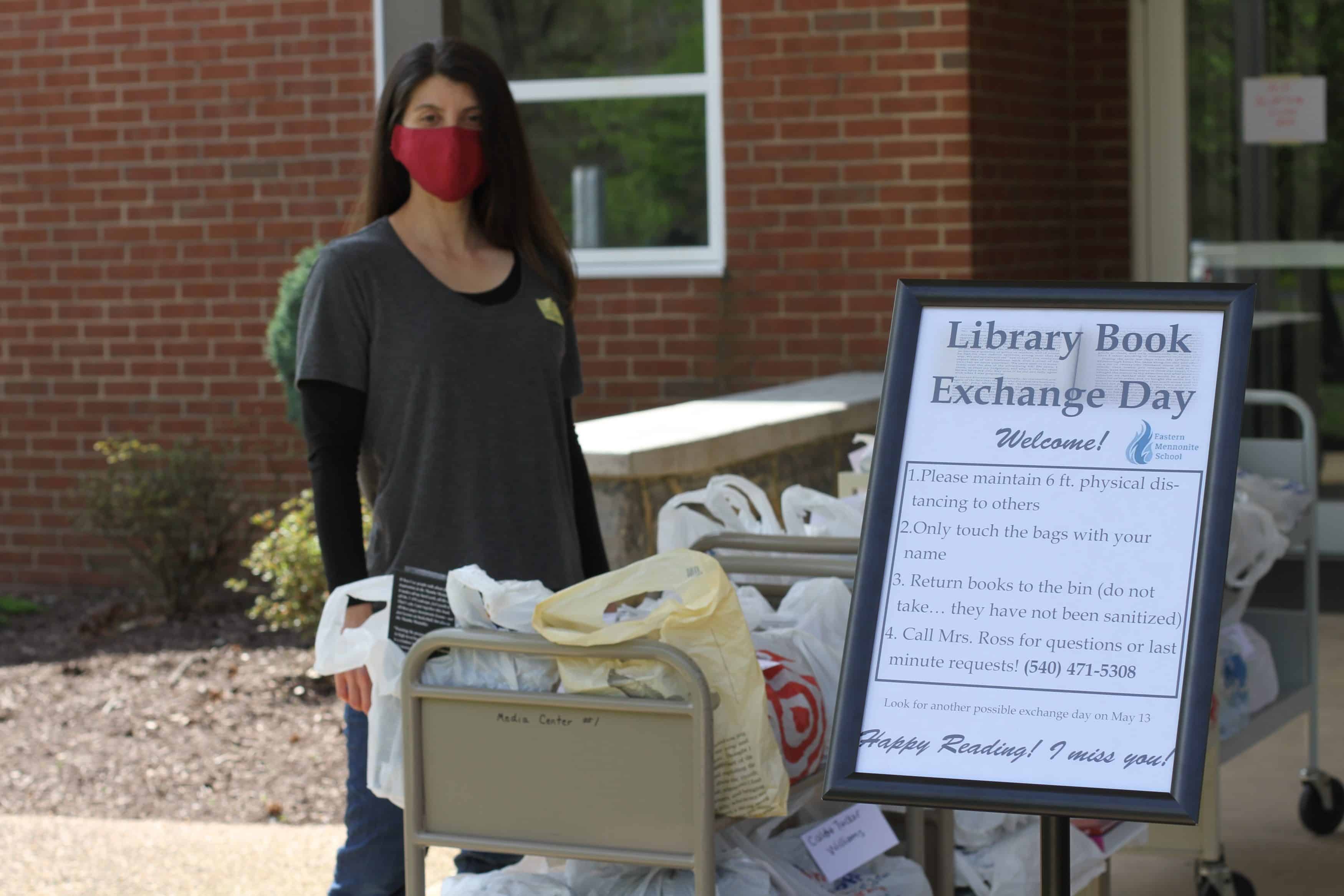 “I was here till midnight pulling books last night, and it made me happy!” said Eastern Mennonite School librarian Julianne Ross on the pick up day, April 22, 2020.