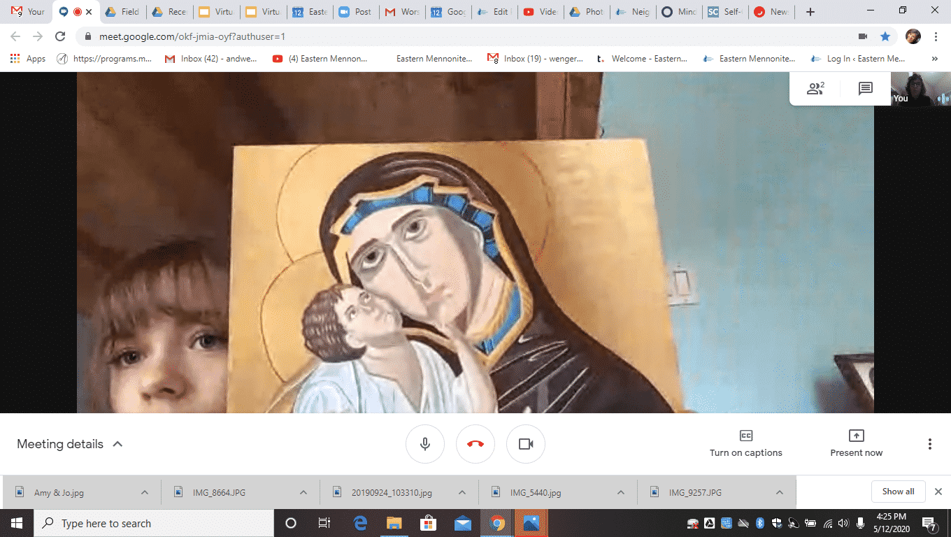 Fiona Mitchell researched the history of religious icons and painted a replica of an Eastern Orthodox icon for the Honors Global Christianity class taught by Elwood Yoder. She presented her research and painting via Google Meet to the class during the COVID’19 shut down, spring 2020.
