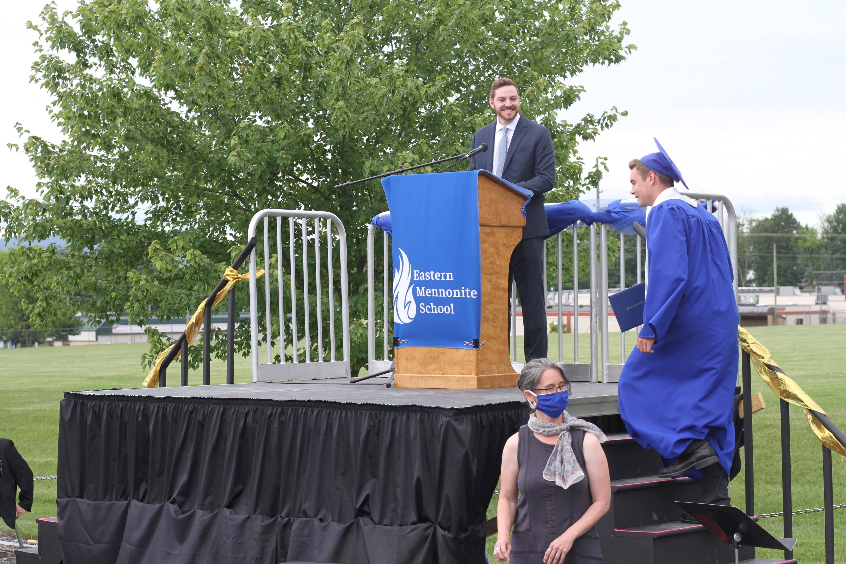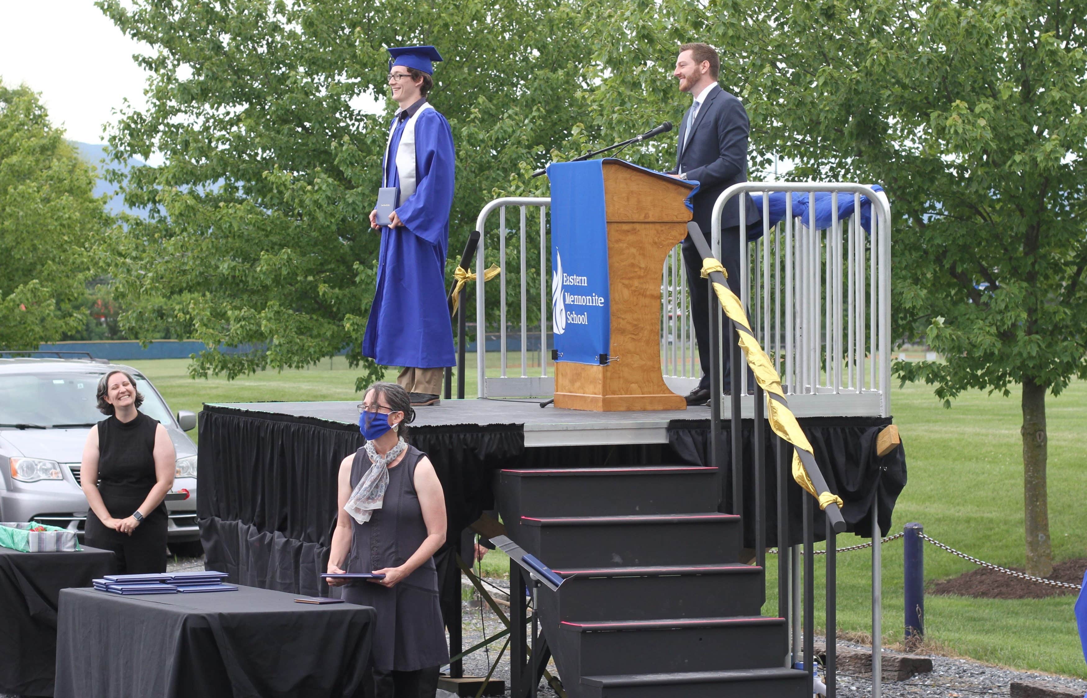 Eastern Mennonite High School’s 39 seniors joined the millions across the country in one-of-a-kind commencement exercises this year. On Saturday, June 13, the school’s faculty and administration joined families in celebrating students’ accomplishments and conferring degrees following weeks of building closure due to the coronavirus.