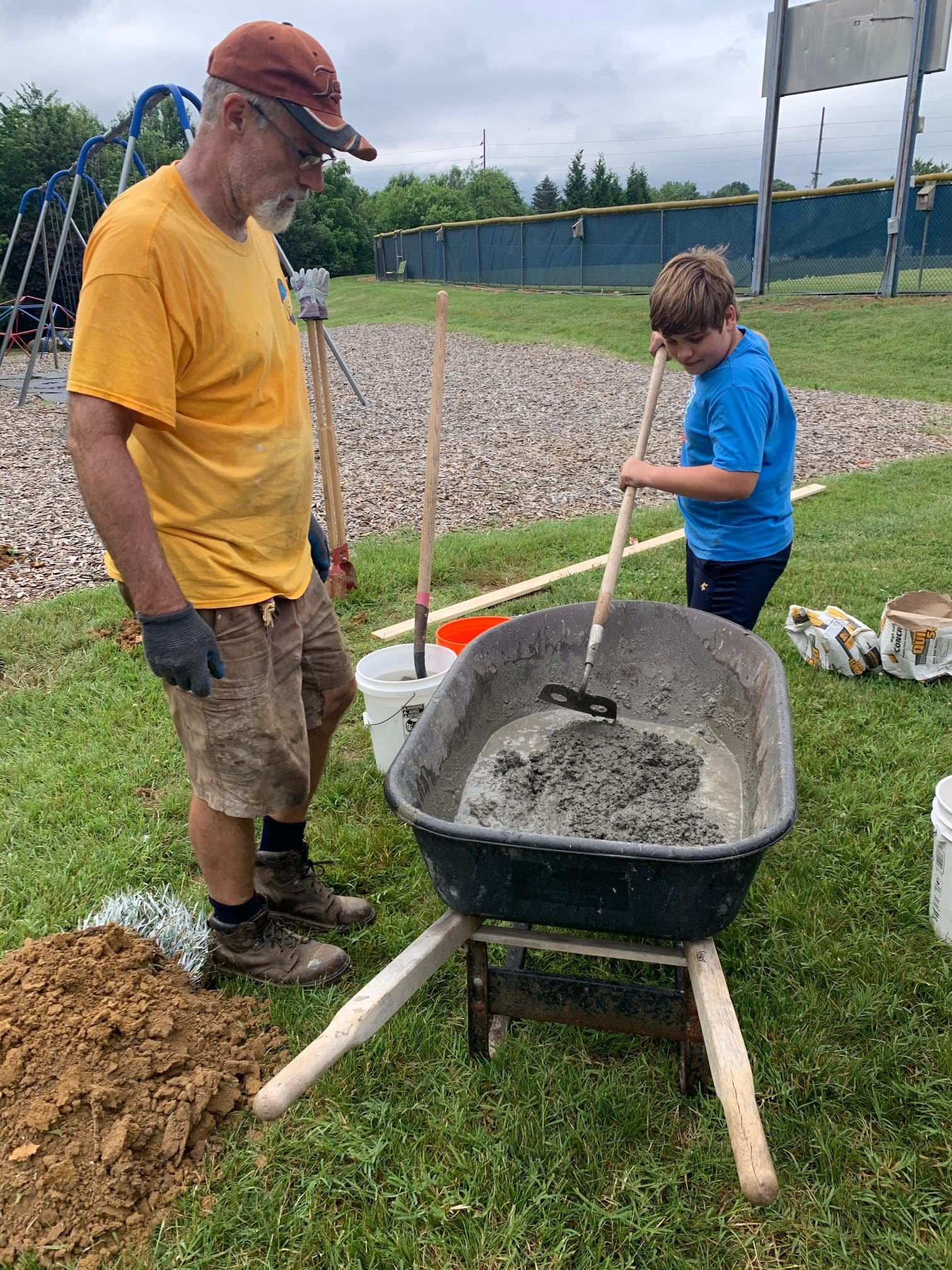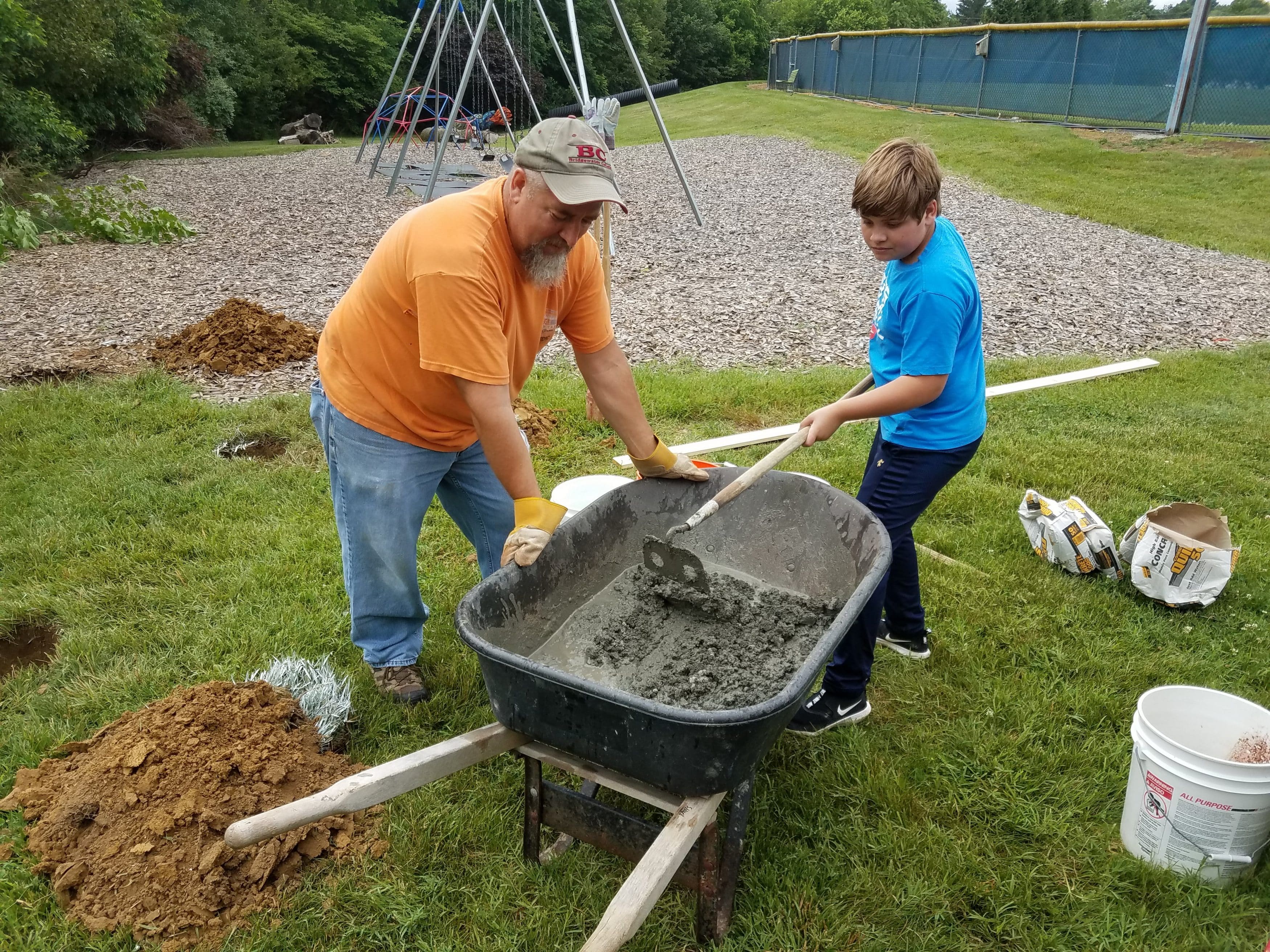Tyler Kauffman, EMS dad and facilities maintenance coordinator, and Dexter Beyer, groundskeeper and transportation coordinator, designed and constructed the project with help from Kendal Bauman, EMS dad and EMES PE teacher, pictured above. Volunteers contributed 108 hours of time on the project. See a time lapse video of the construction.