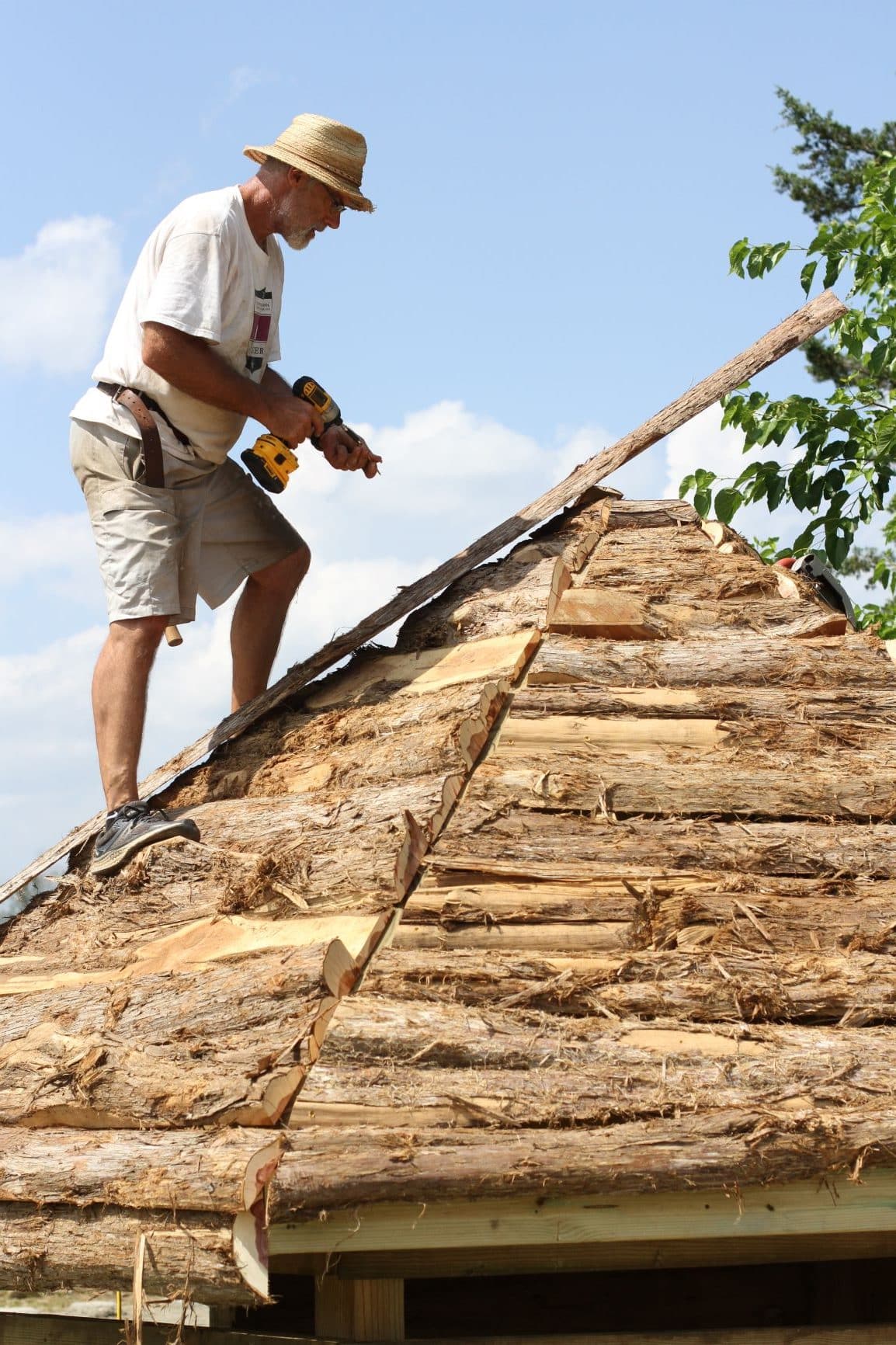 Cedar lumber for the project’s roof was donated by Willow Run Custom Lumber, Inc., a nearby mill. Planks came from salvaged lumber that had been donated for the bridge, which was built to connect the upper and lower campus buildings.