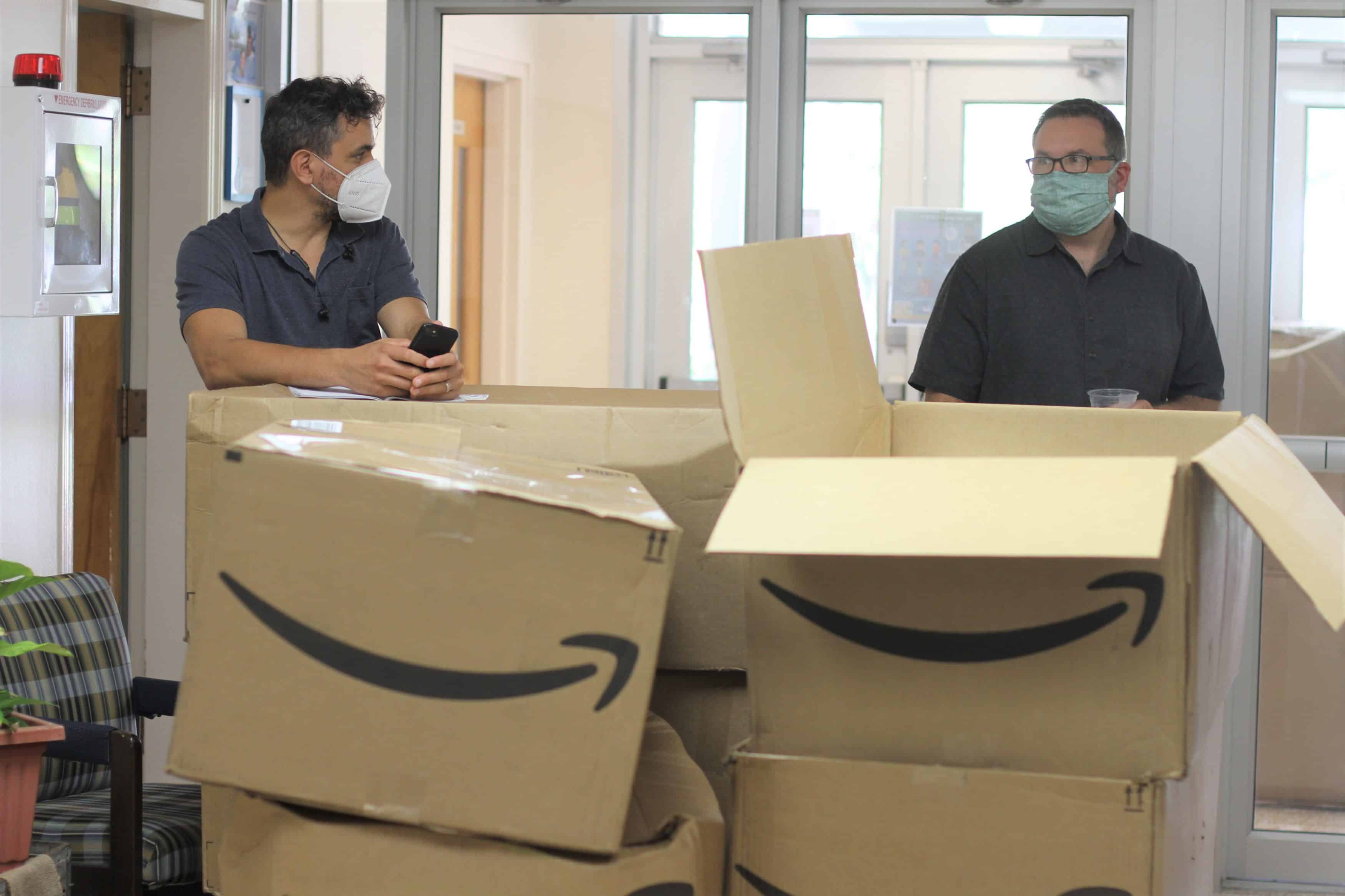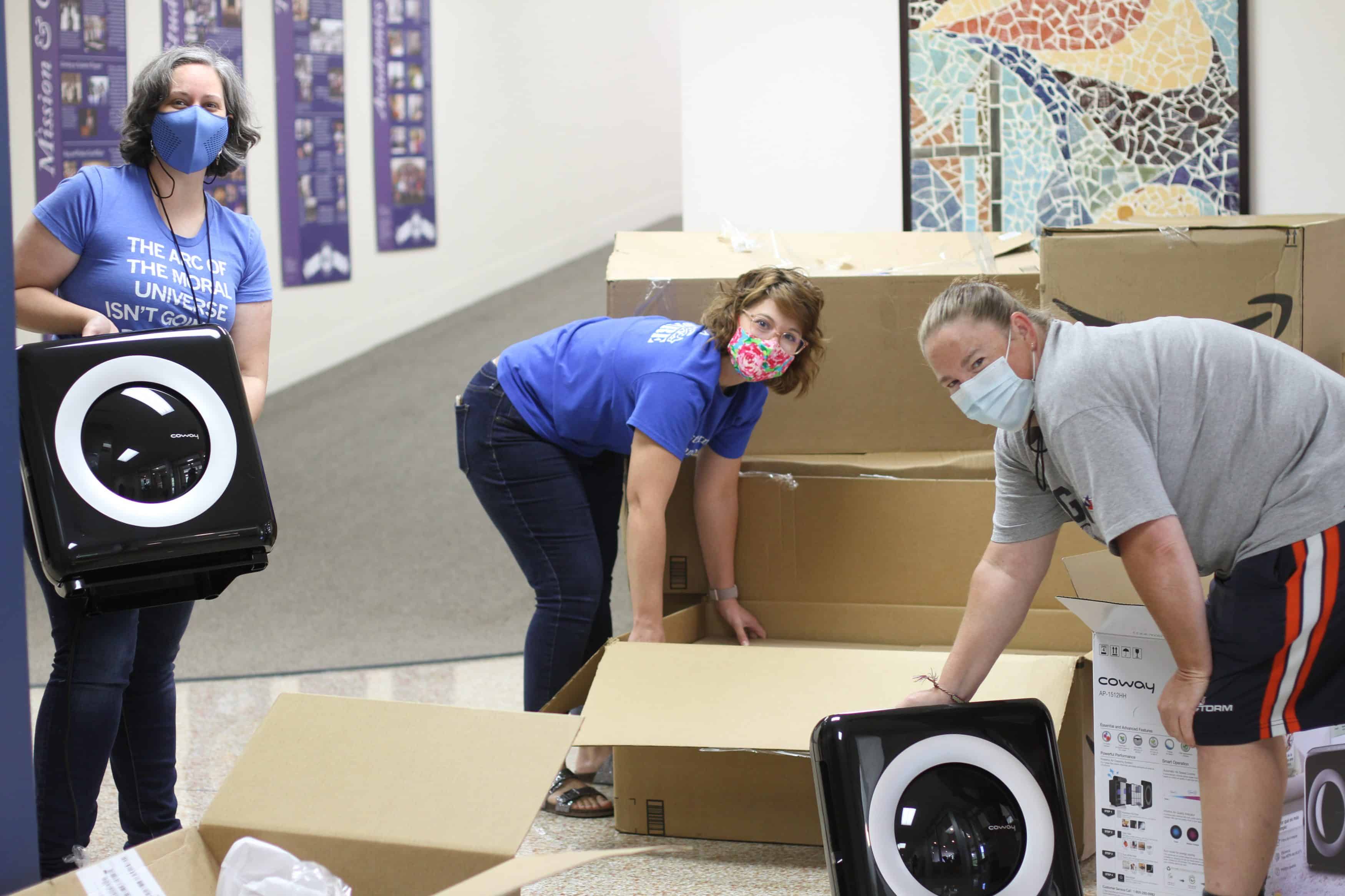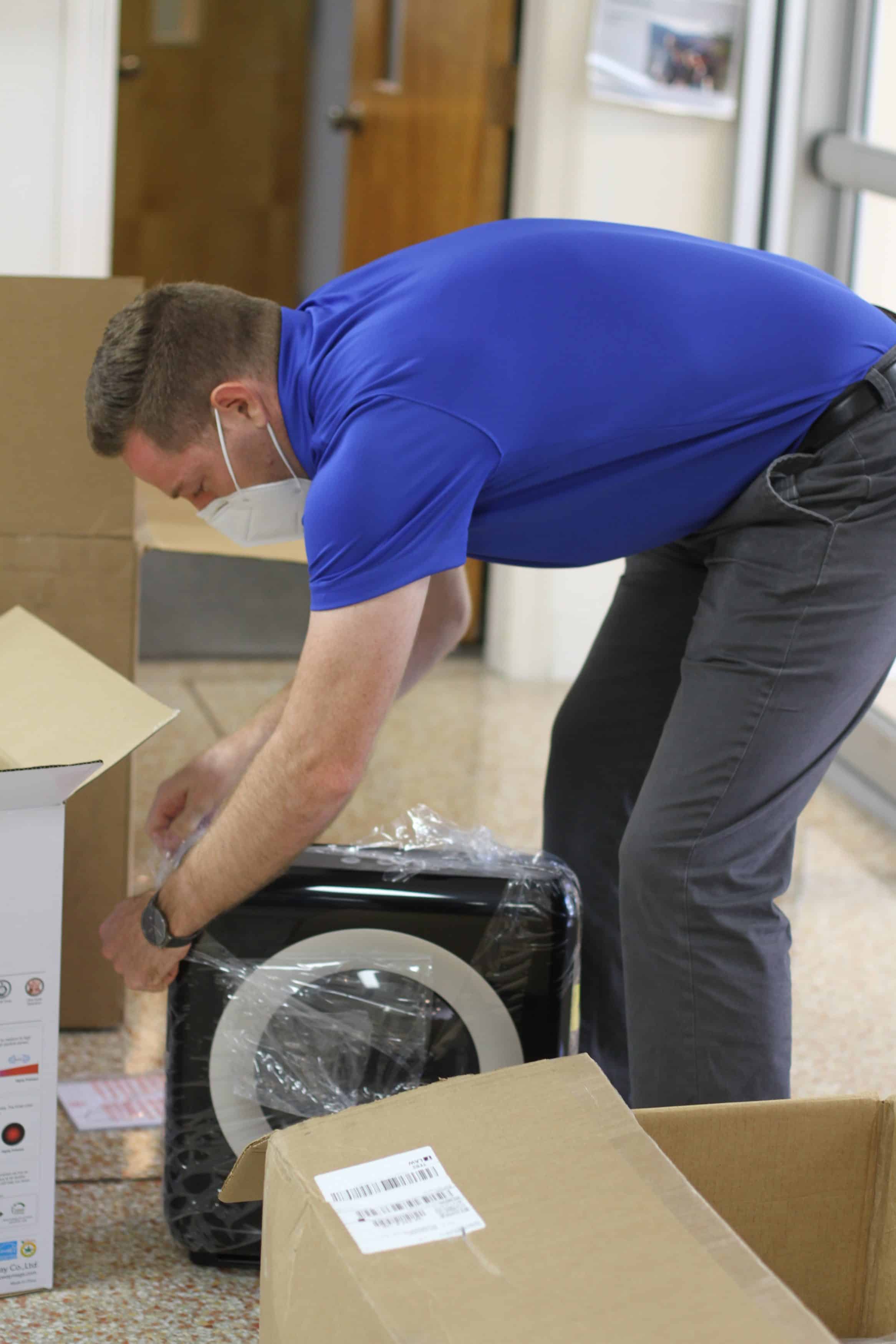 Clean and fresh air — comfortably warmed or cooled — is important any time for optimal learning and health. But this year, with COVID-19 virus precautions, air quality is taking extra effort. Read below about the six-pronged approach EMS is taking for cleaning and circulating healthy air in our buildings this year. Mike Stoltzfus, director of business affairs, has led this effort. Pictured are faculty and staff members unpacking a shipment of air purifiers for distribution to classrooms.