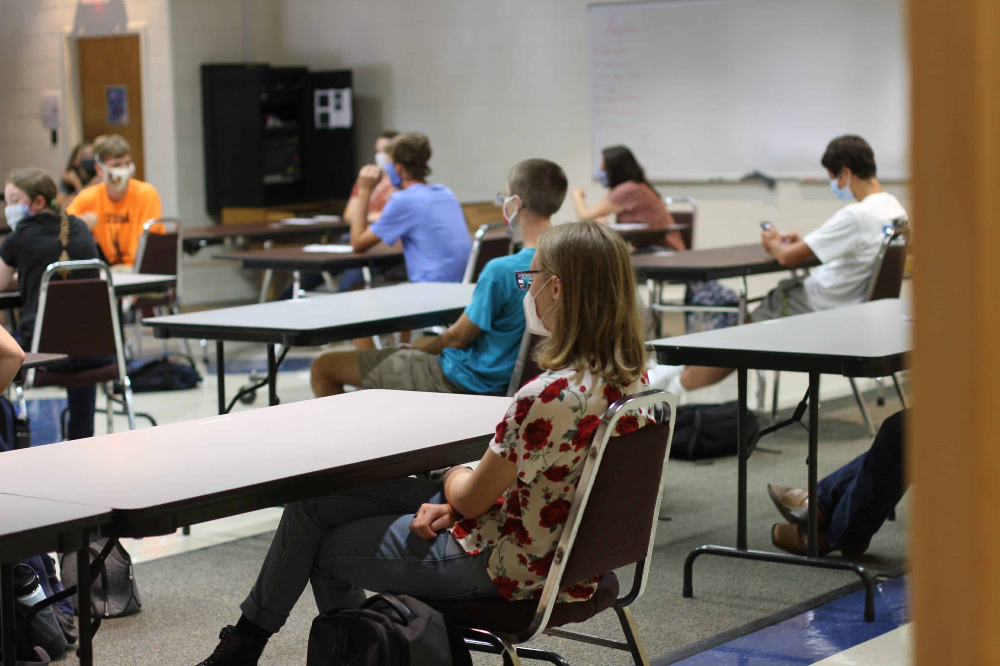 Students are limited to interacting only with those students in their four class periods in the upper level, and in their grade-level class in the lower level.