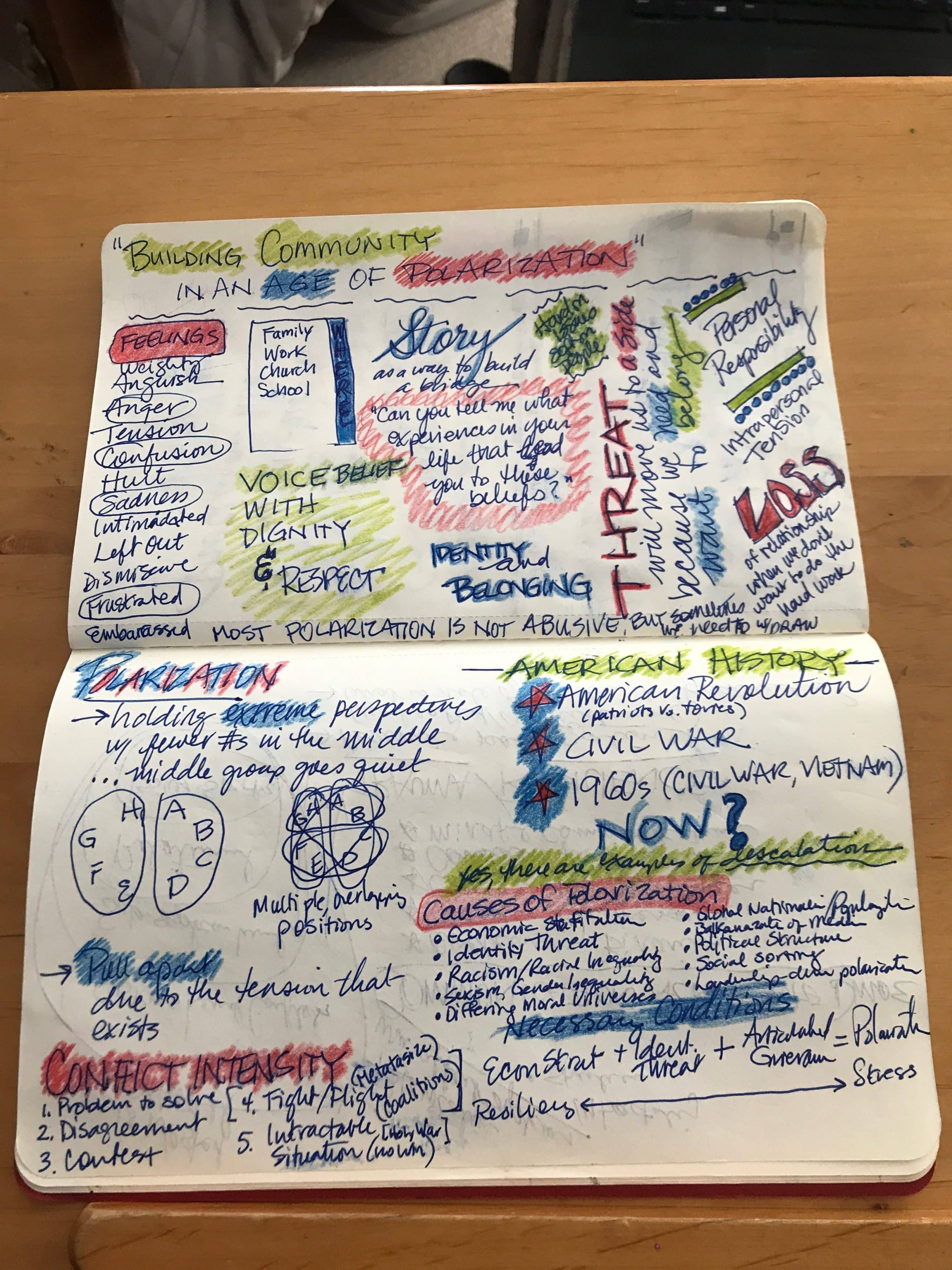 Brubaker’s historical review of conflict in the United States provided sobering and helpful insight, confirming that there is good reason to practice building relationships at this point in history. On a scale of 1 to 5, polarization moves from 1 being a “problem to solve” to disagreement, contesting points of view, fight or flight, and, at 5, an “intractable situation.”