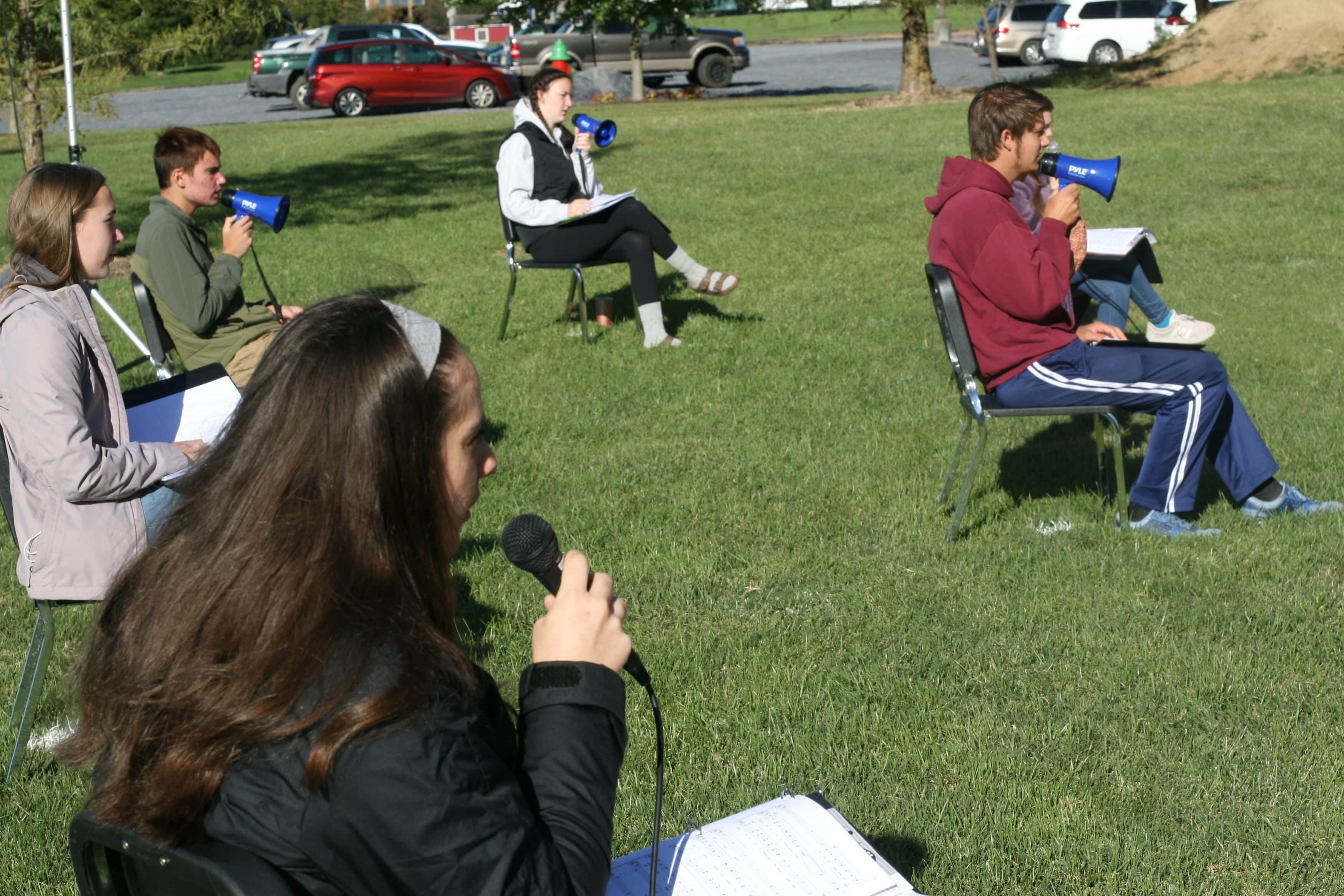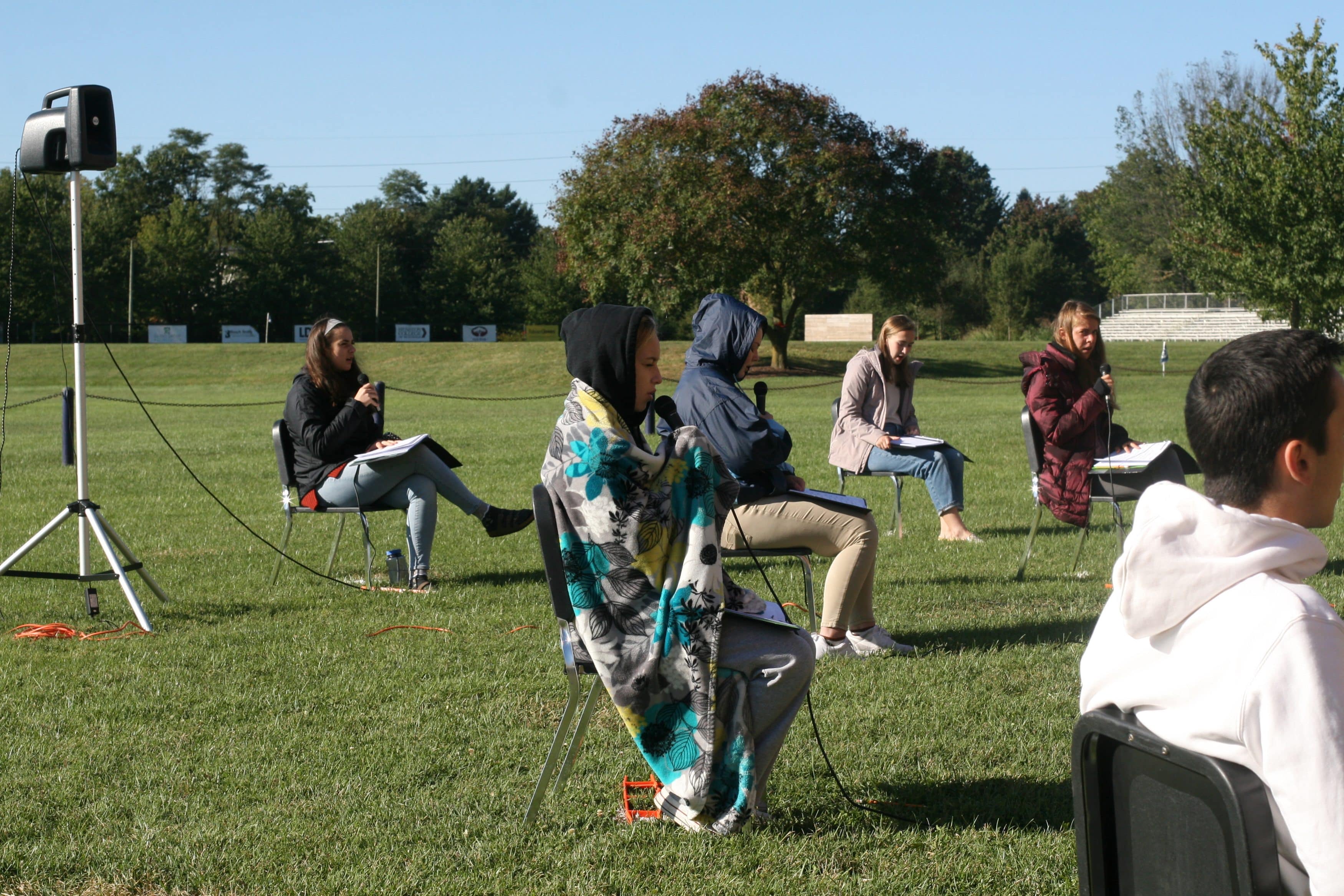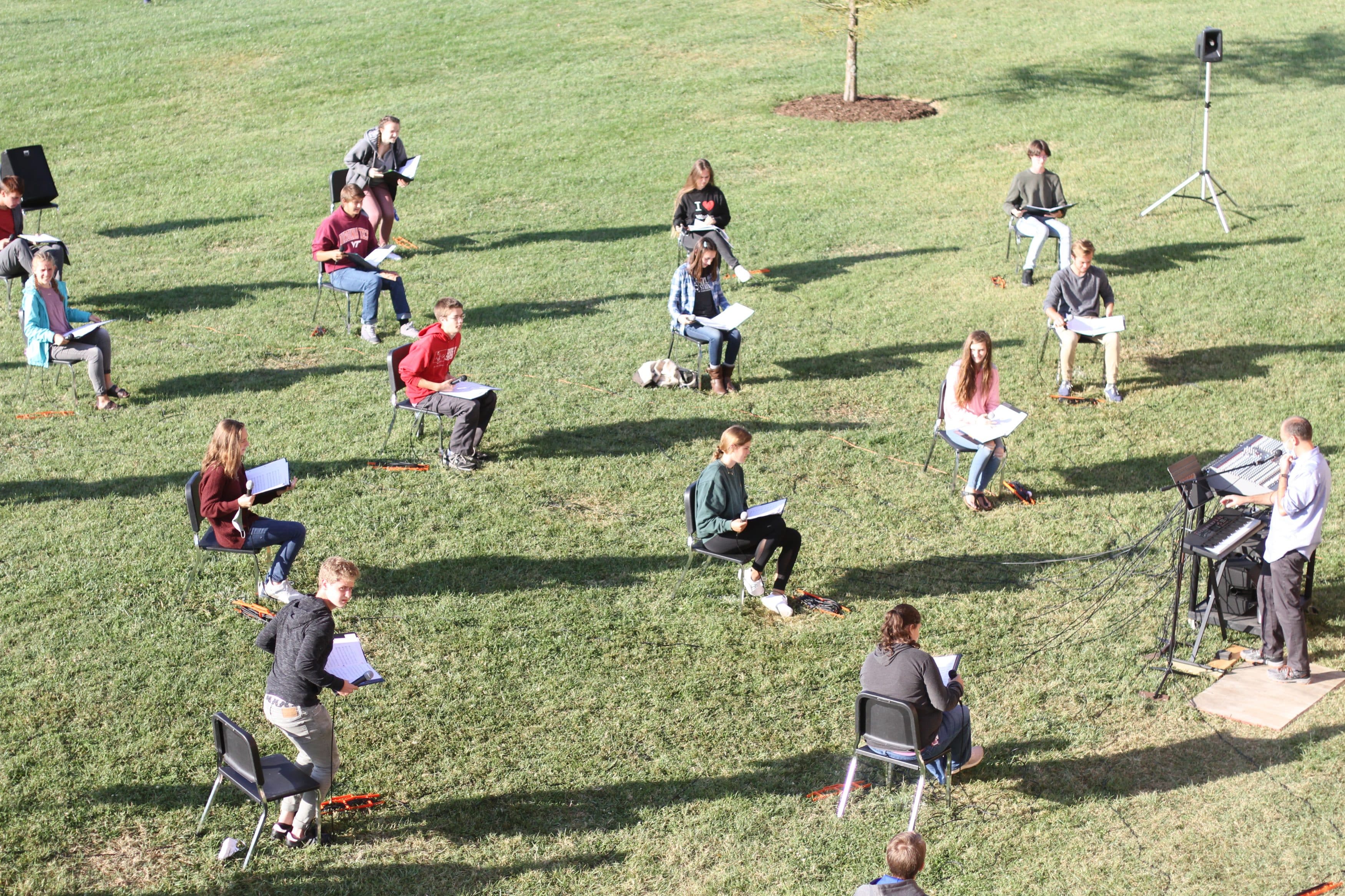 Stutzman invited the parents, and faculty and staff to a performance, weather permitting, on the early evening of Nov. 3. Guests will sit in pre-marked distanced boxes left over from the musical performance.