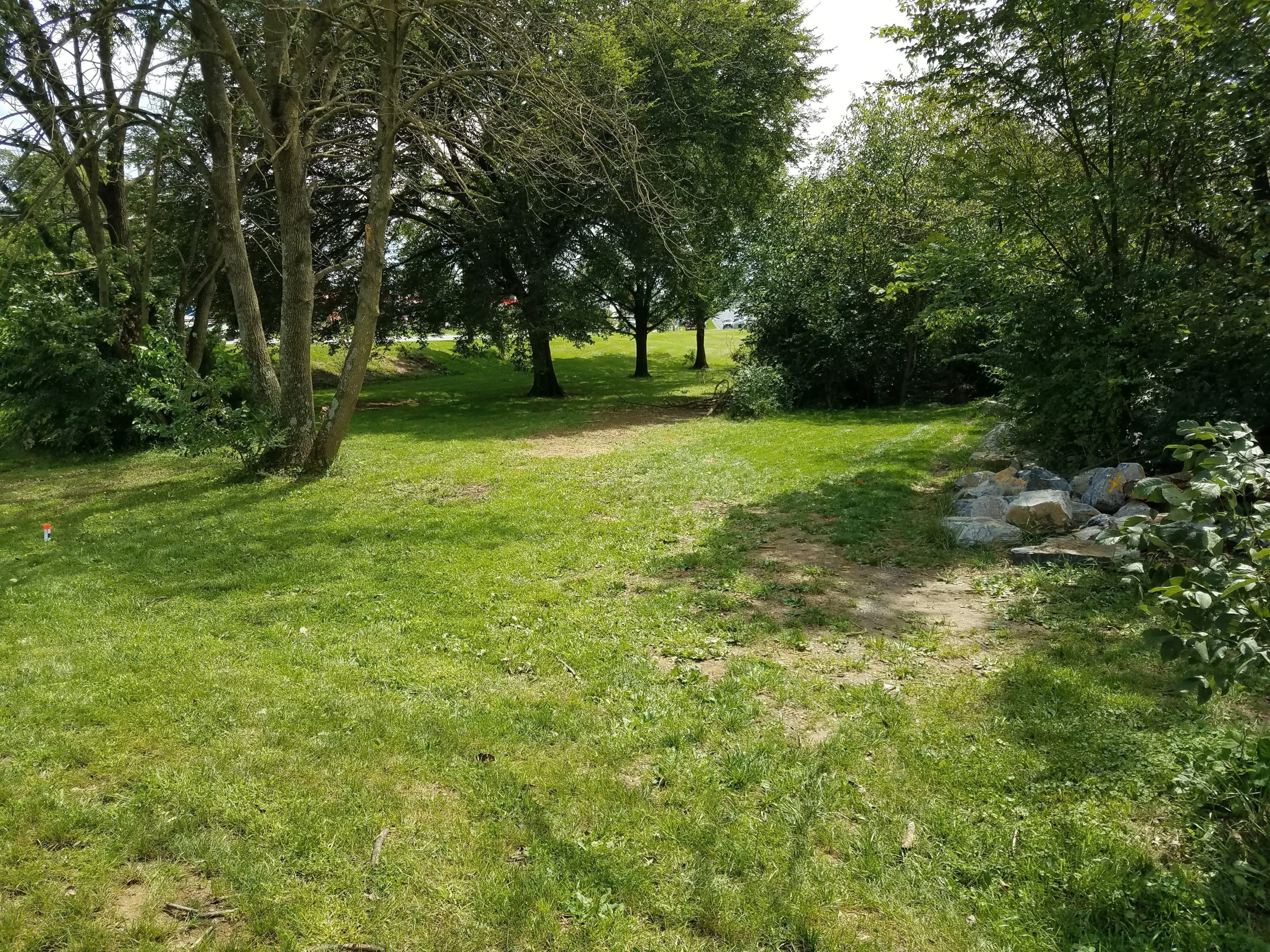 The full outdoor play and learning spaces at EMES covers about three dedicated acres and will continue to evolve. It includes the bridge, waterway, a portion of the former tennis court and surrounding trees, riparian zone, playground with its Peace Path and fort, and grassy areas.