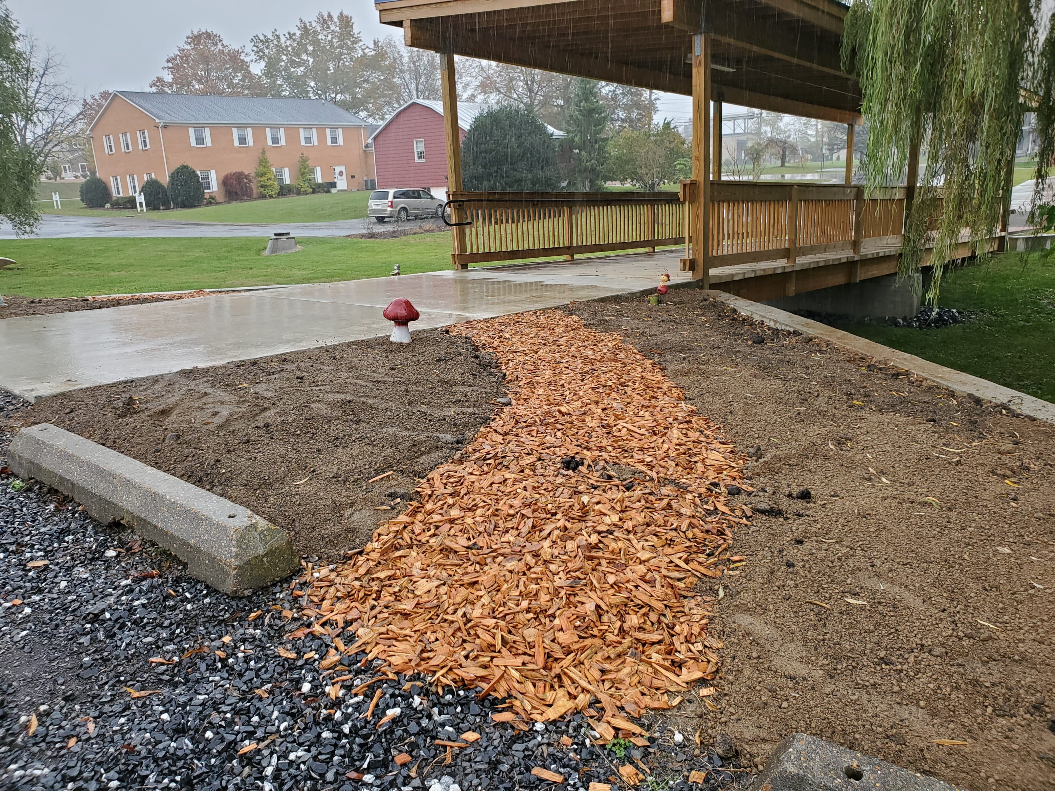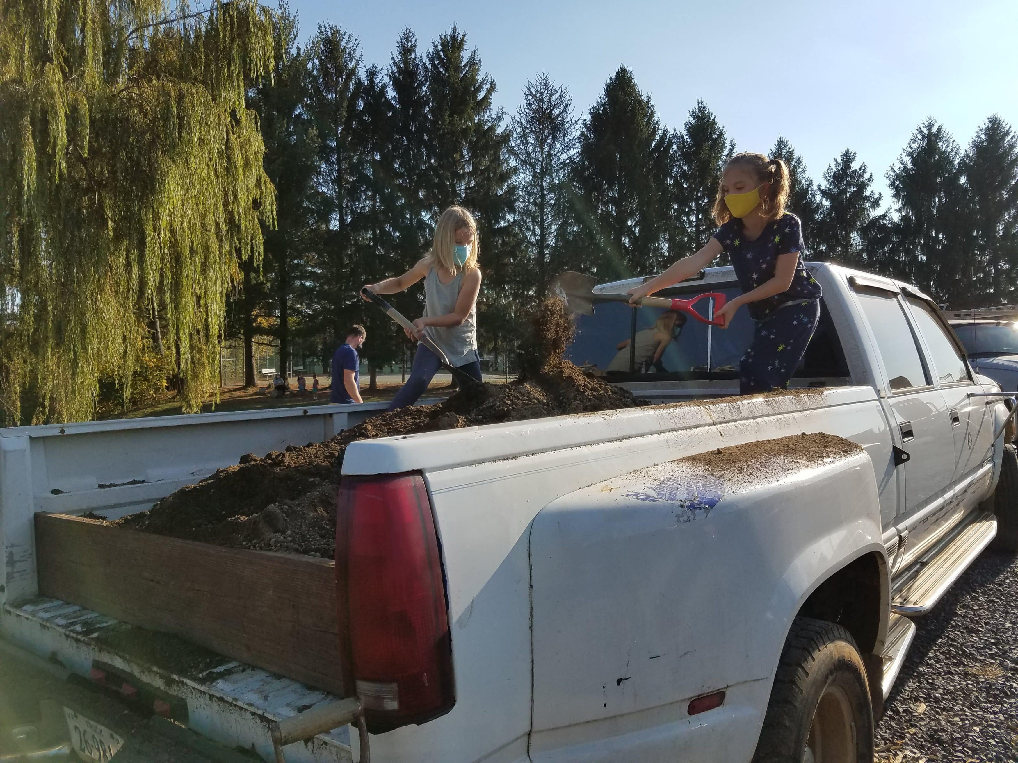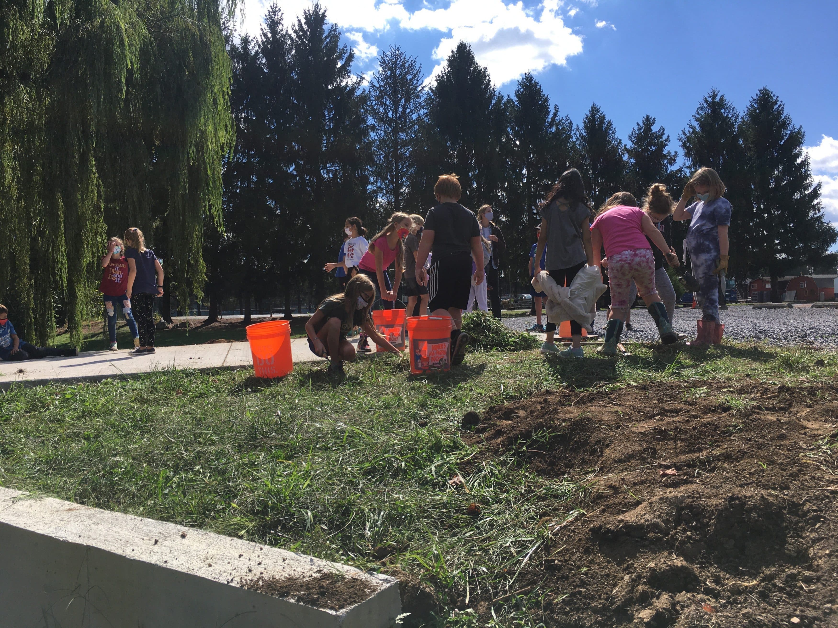 Thanks to more than 30 volunteers putting in dozens of hours over a recent weekend, learning in the outdoors is flourishing at Eastern Mennonite Elementary School. Outdoor classrooms are established and a bridge garden is ready for student gardeners. It’s all part of implementing the master plan for the renovated building which the school occupied inside early in 2020.