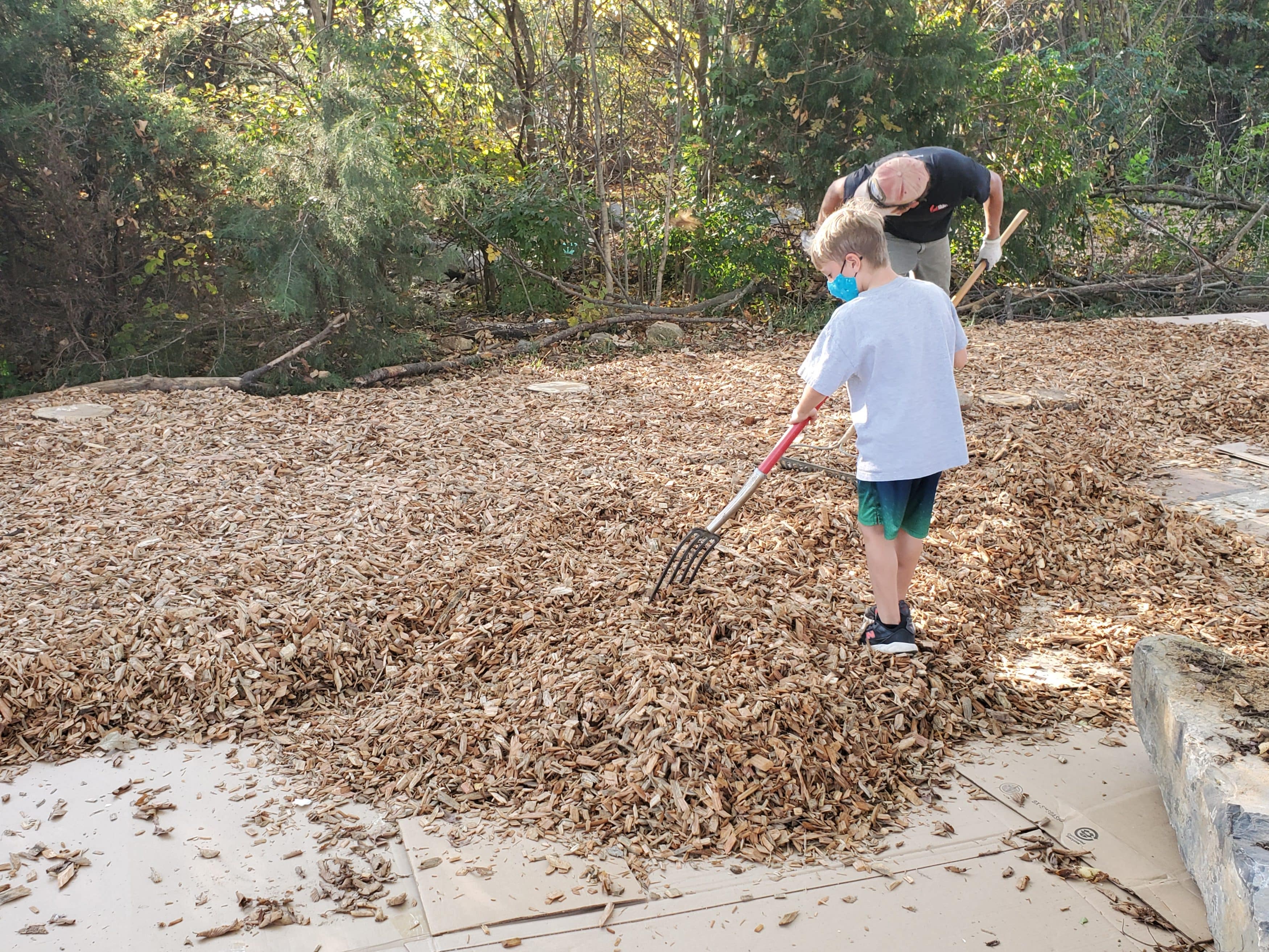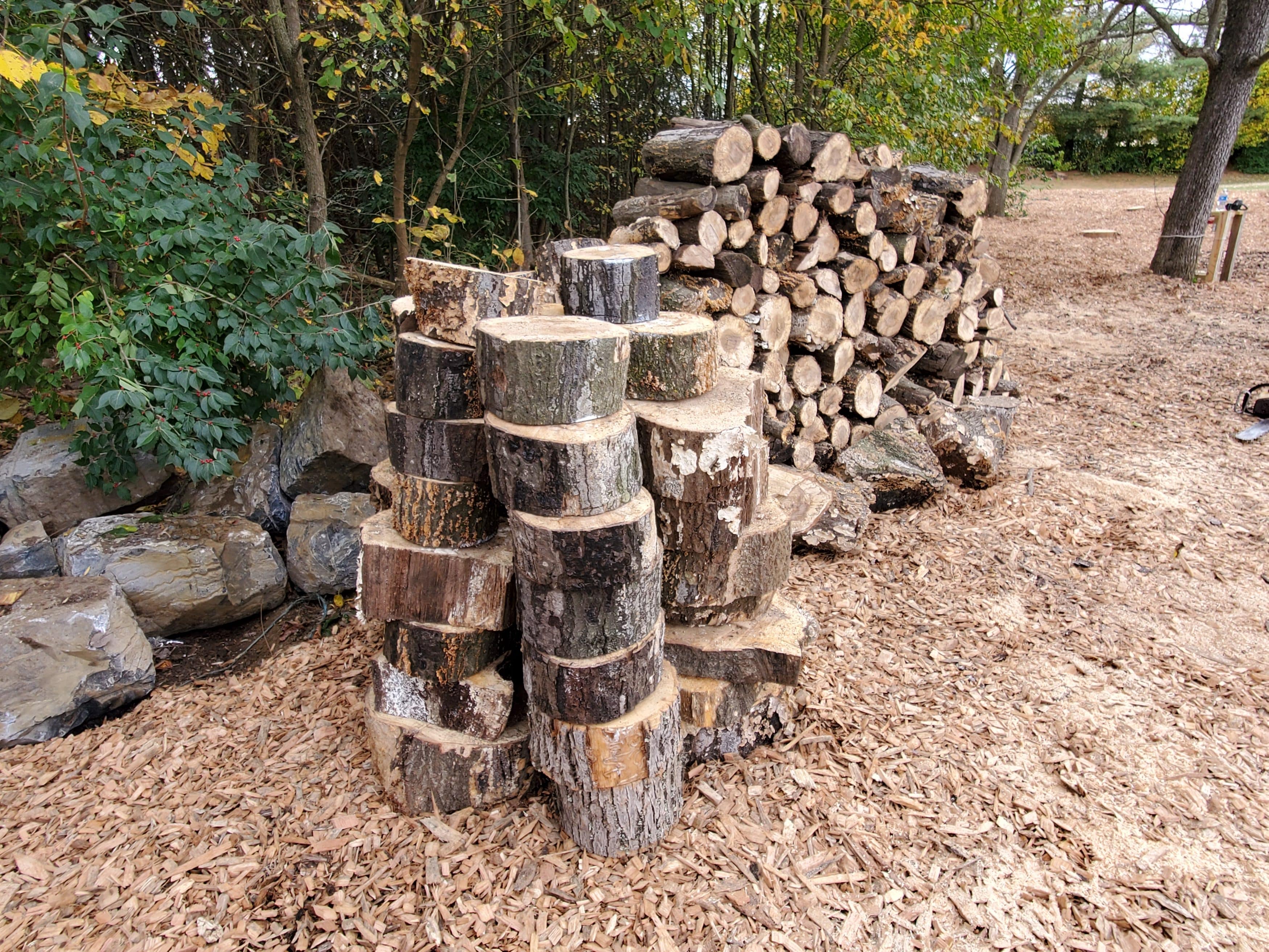 To wrap things up on Saturday, Bauman and Delbert Wenger, class of ‘82 and former EMS parent, spent another seven hours working up wood from trees that were felled during the renovation project or used on the playground fort. The pin oak and cedar scraps are great for firewood and available for donation toward the school’s sustainability fund. (Contact Kendal Bauman if you are interested!)