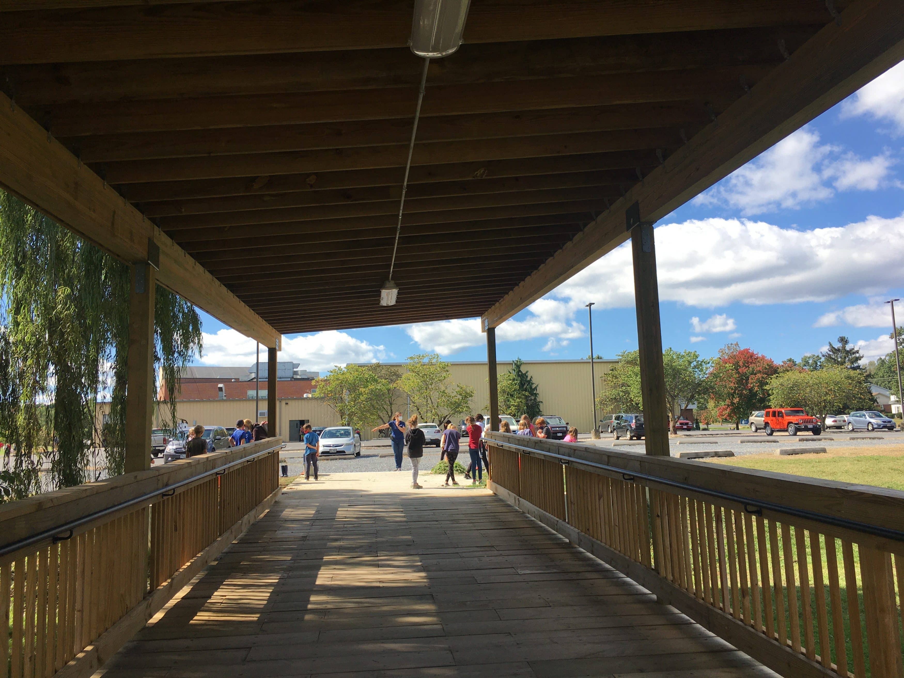 The garden by the school’s covered bridge brings a finishing touch to the structure that connects the school’s upper and lower buildings. The bridge provides a safe drop off area and outdoor learning space.