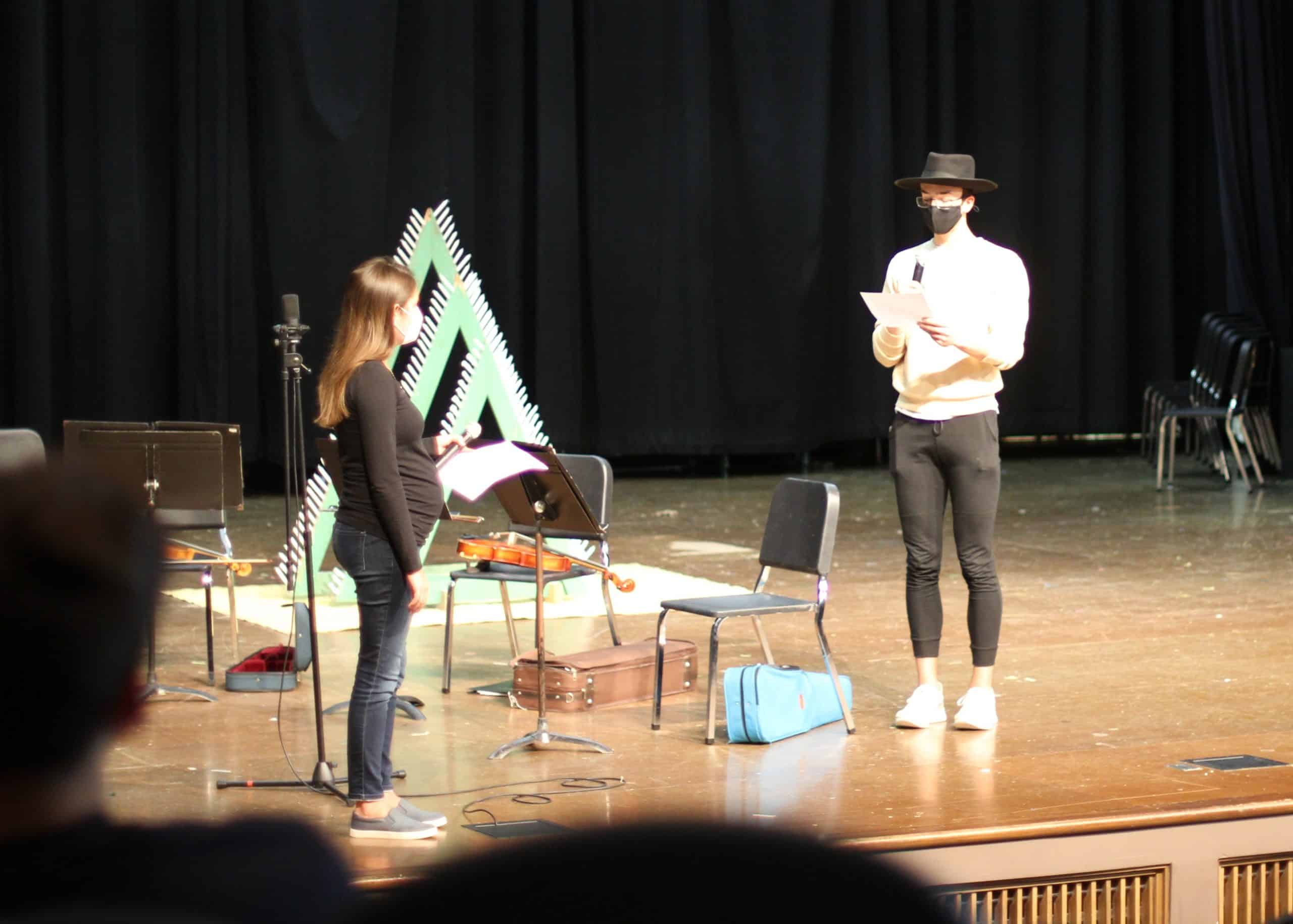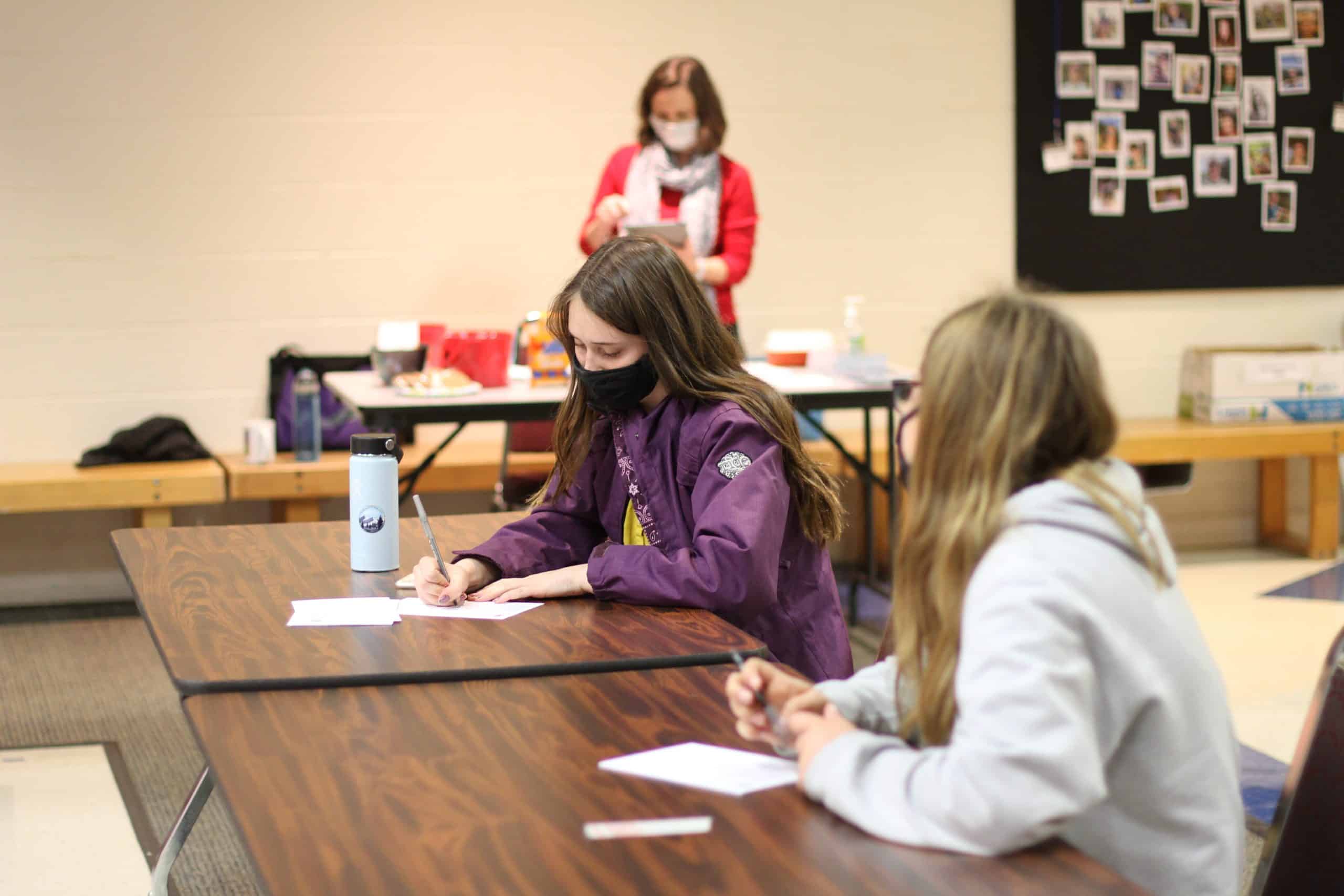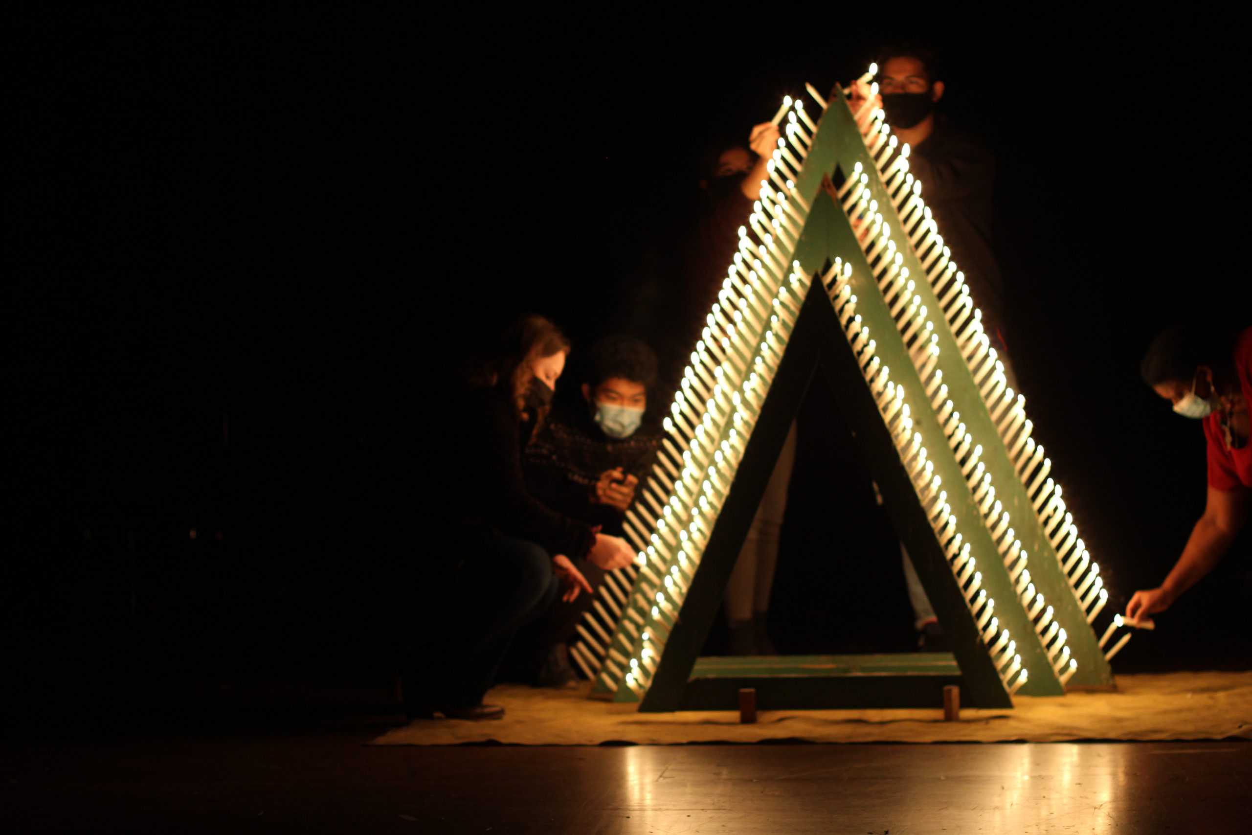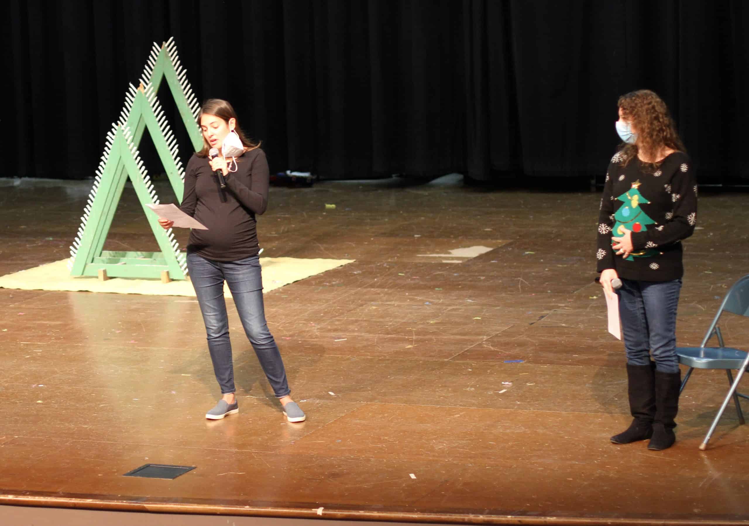 Seniors planned an Advent chapel service for grades 6-12 on Nov. 24 — their last day of in-person day learning before Thanksgiving break. The service included reading of the Christmas story by two faculty members who are “great with child,” Lizzy Miller and Laura Hershey Herr, both math teachers. Several class members played strings. The service, held in the auditorium and live streamed to classrooms, concluded with a recording of the song “Silent Night” and lighting of a tree of candles.