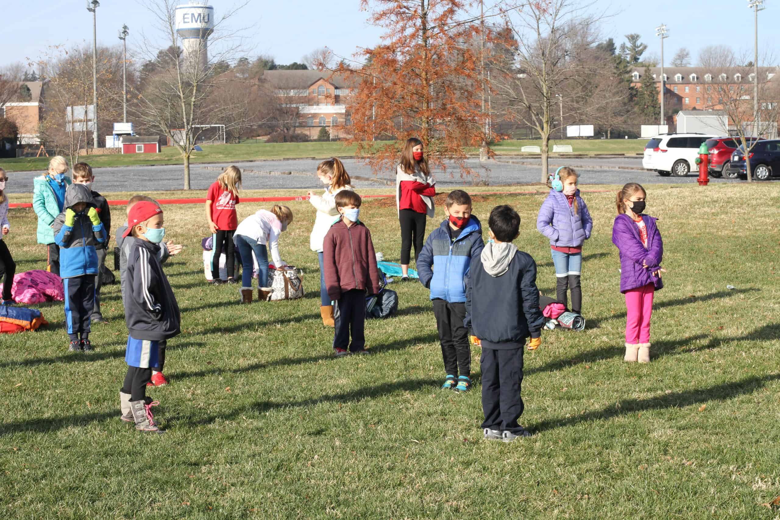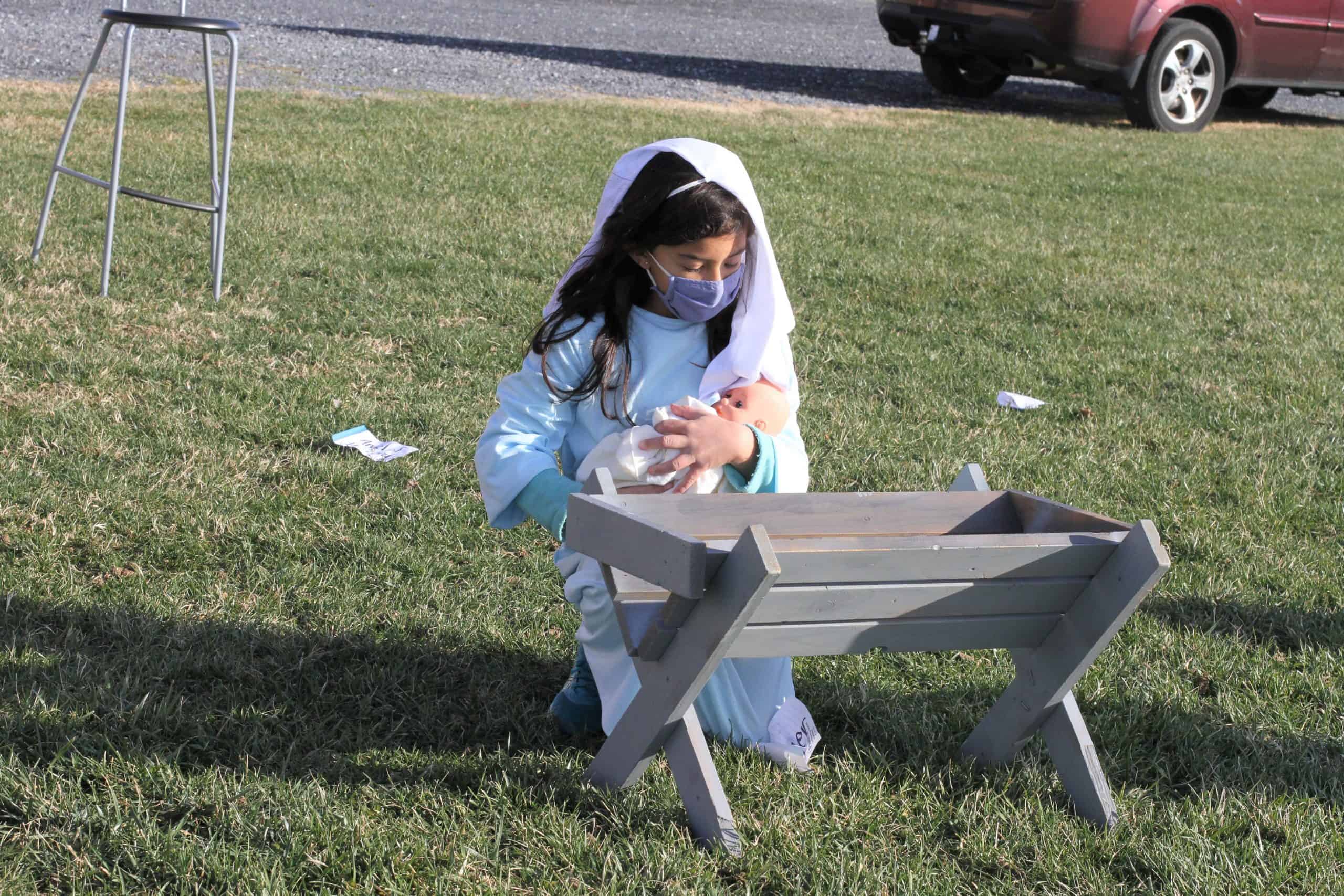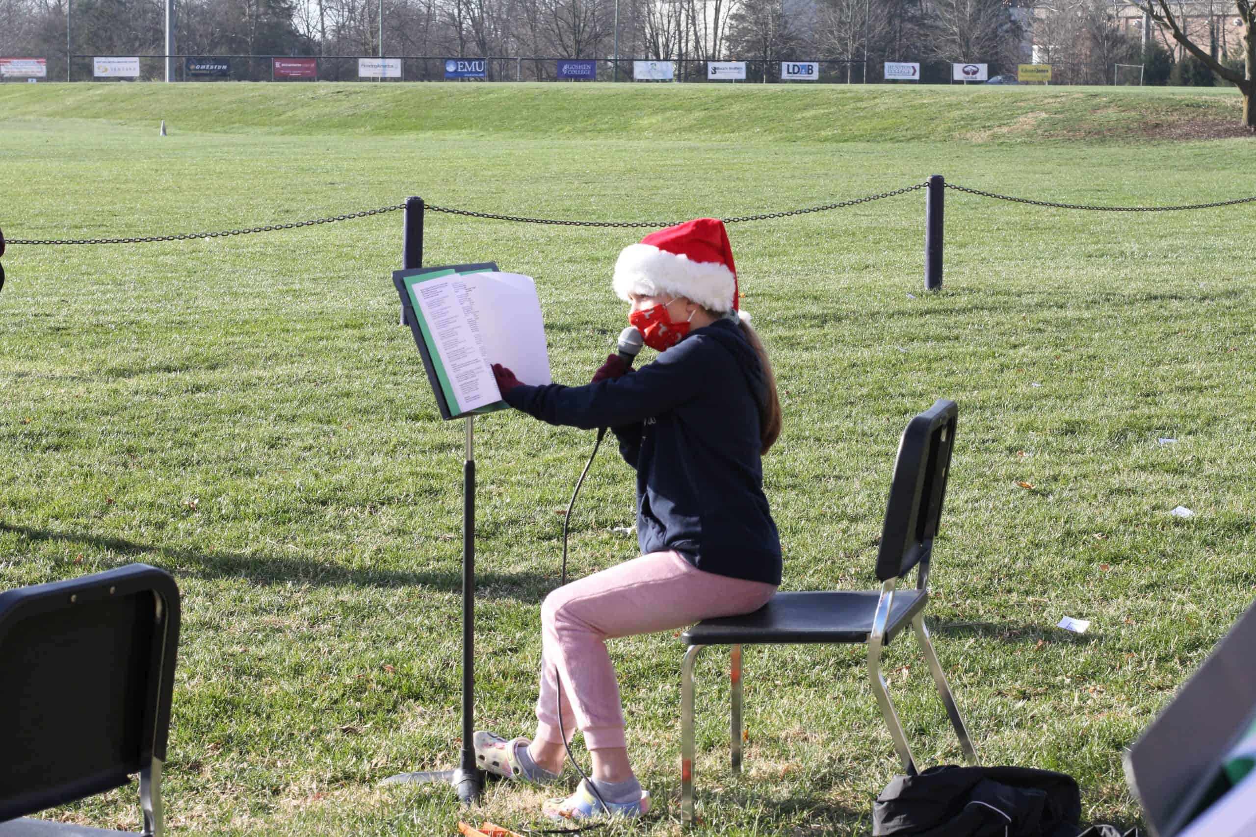 December 10, elementary students enjoyed mild temperatures, standing in distanced formation to sing Christmas songs. Grades K-5 gathered to video tape a program for parents, which featured fifth grade readers, musicians and soloists, and second grade students in the nativity pageant. See the video.