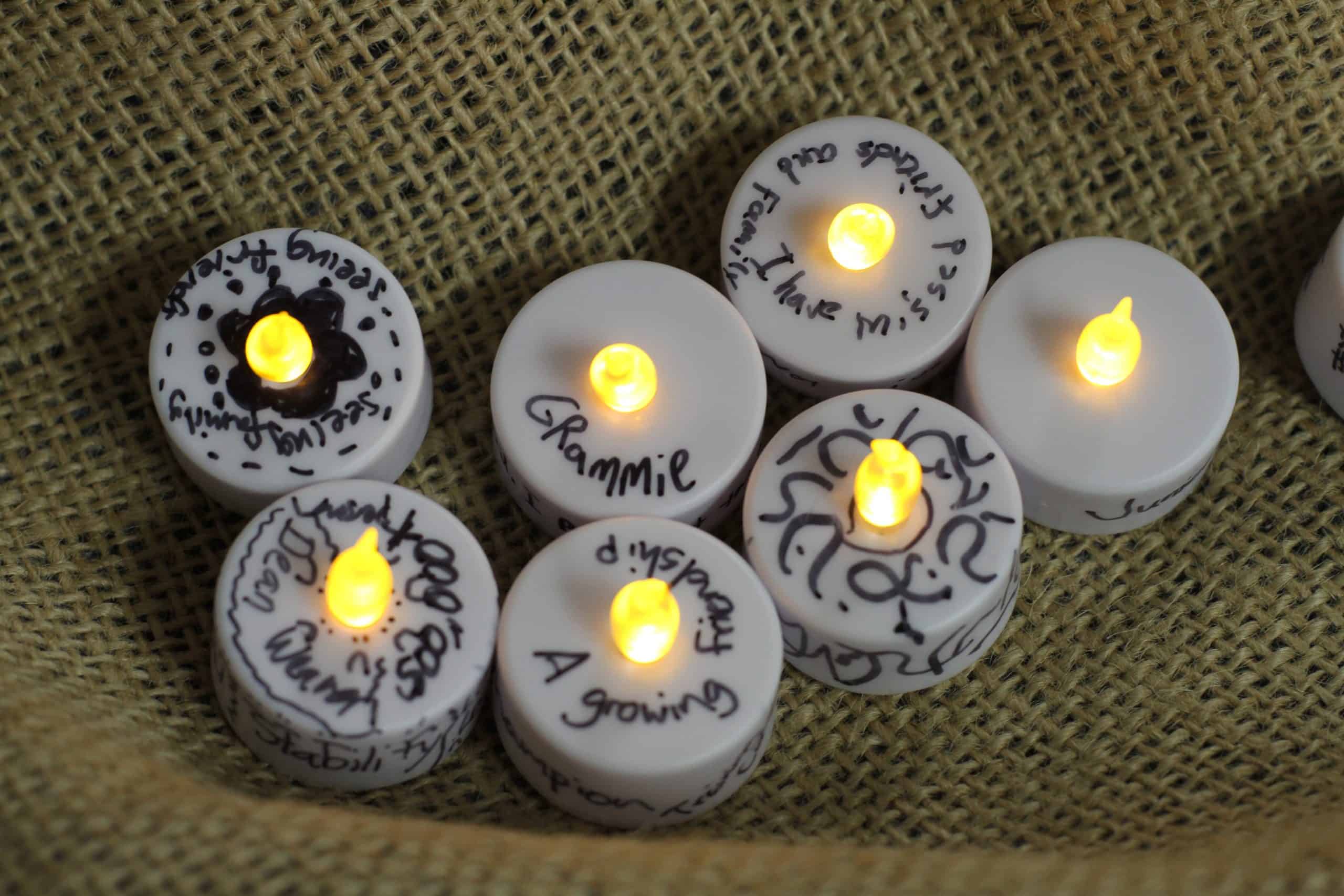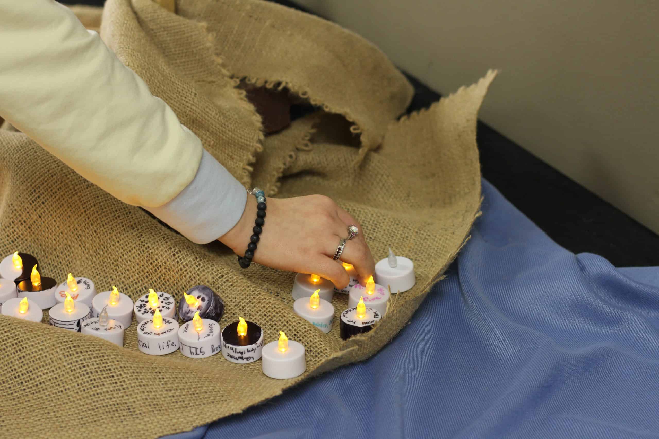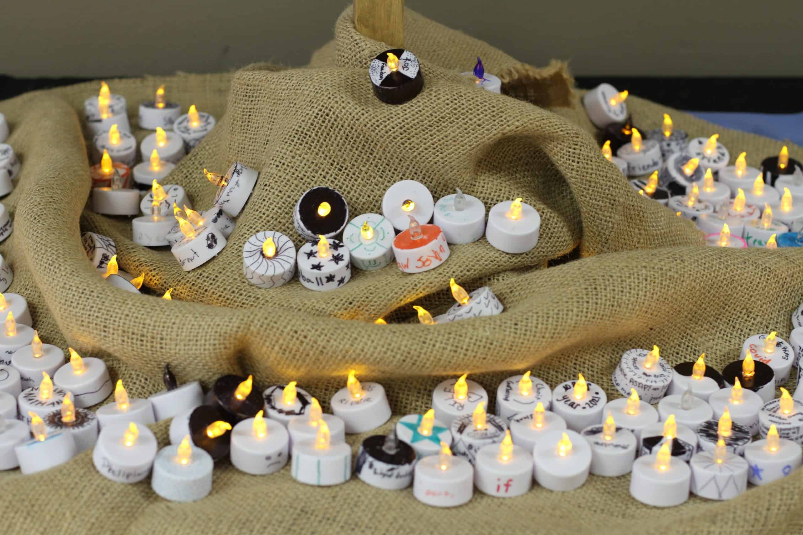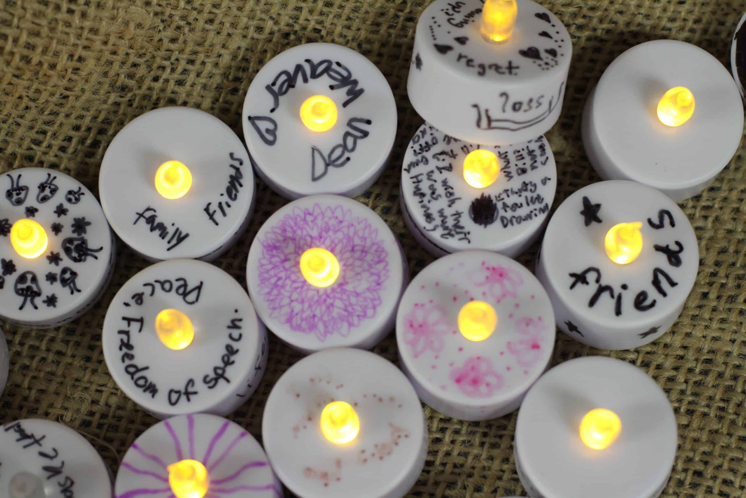 These were among words and notes written on small tea lights by students as part of a chapel of lament for grades 6-12 today.