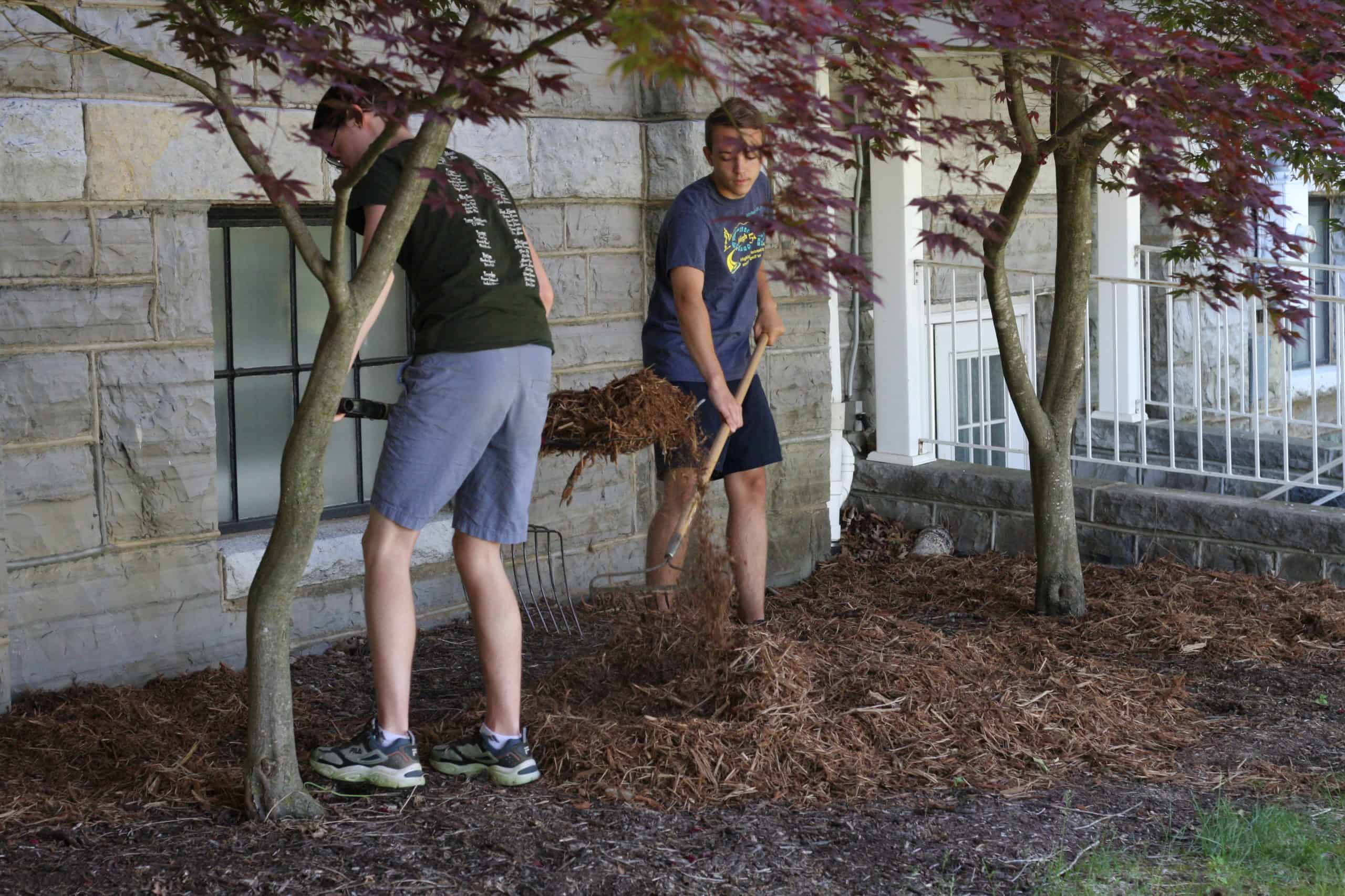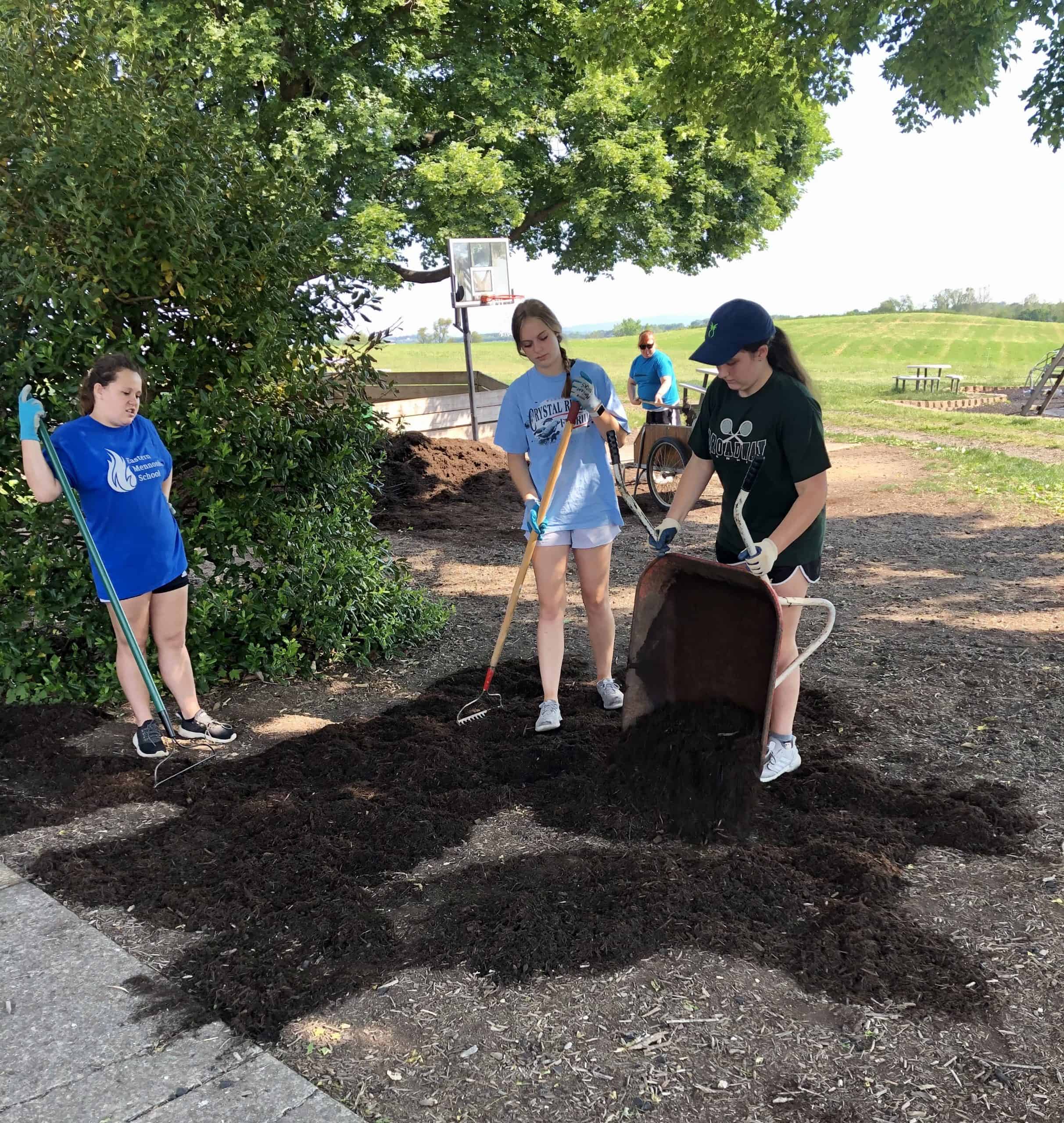 A short devotional video by seniors Karla Hostetter and Hailie Mast “kicked off” the event on Thursday afternoon, followed by individual frozen fruit bars and ice cream as students left the building; this replaced the typical shared morning launch in the auditorium and end-of-day ice cream party. A few other COVID adjustments included students driving themselves or being dropped off by parents, and smaller group sizes almost entirely outside. Work sites included: