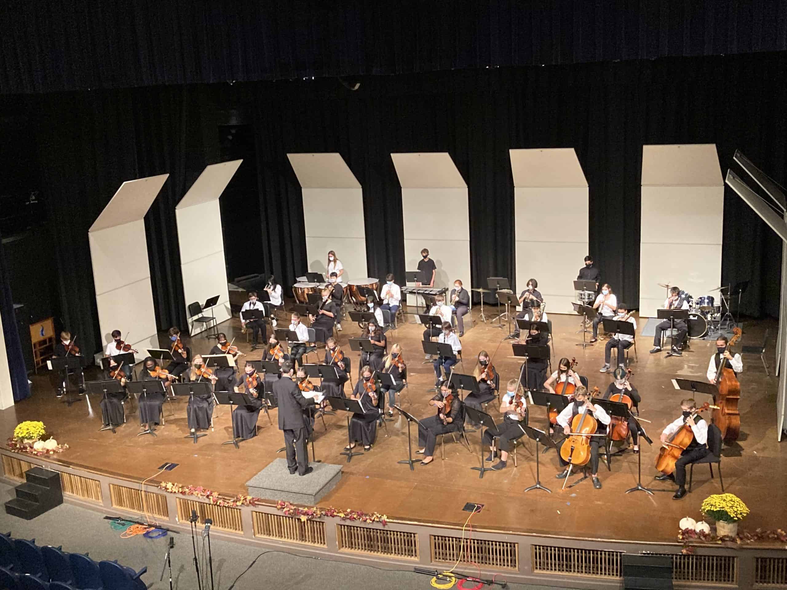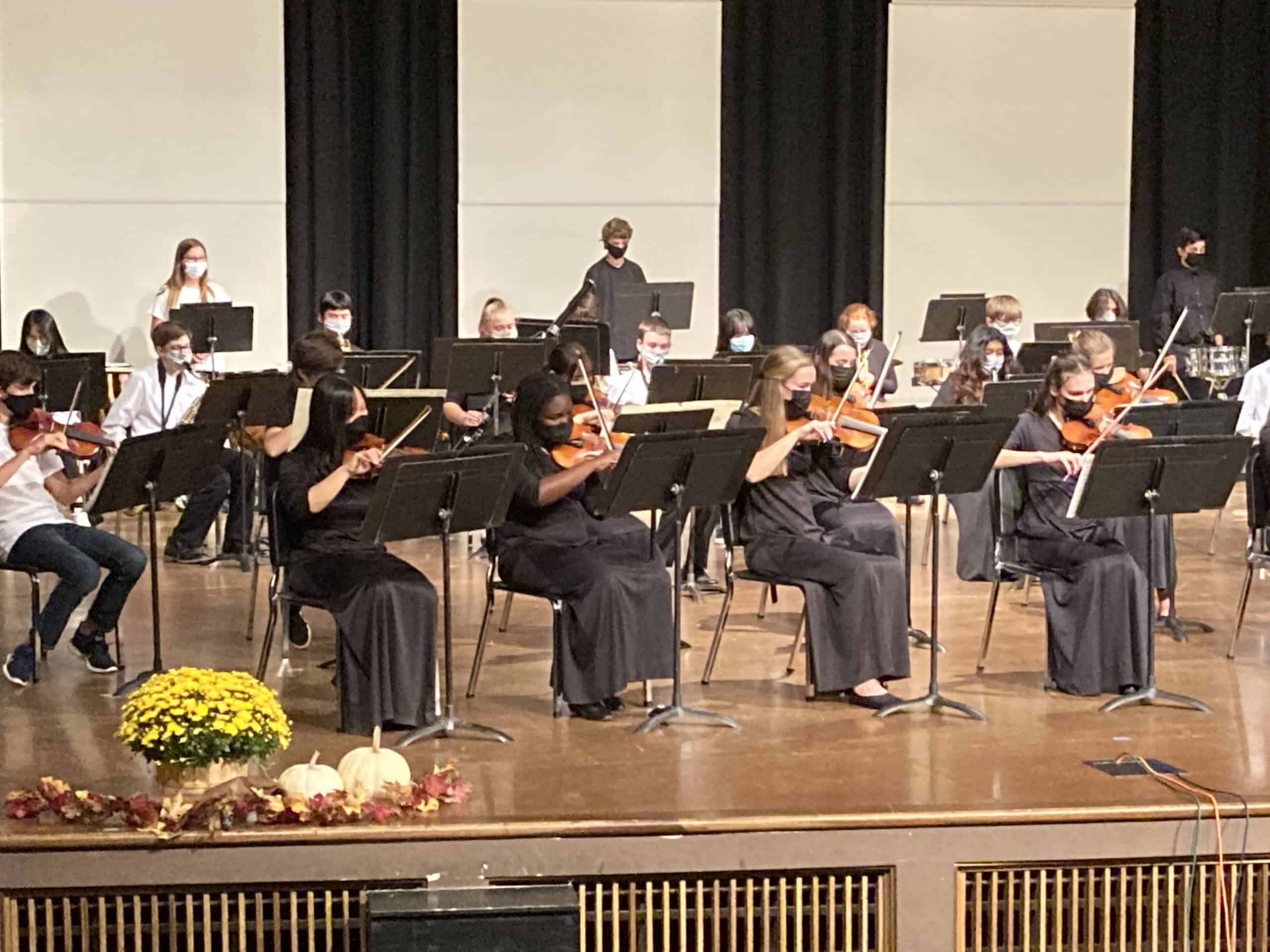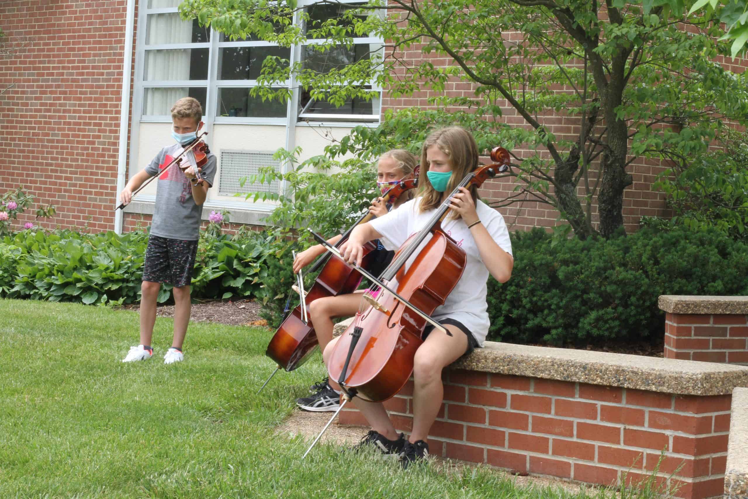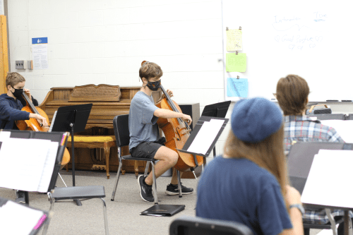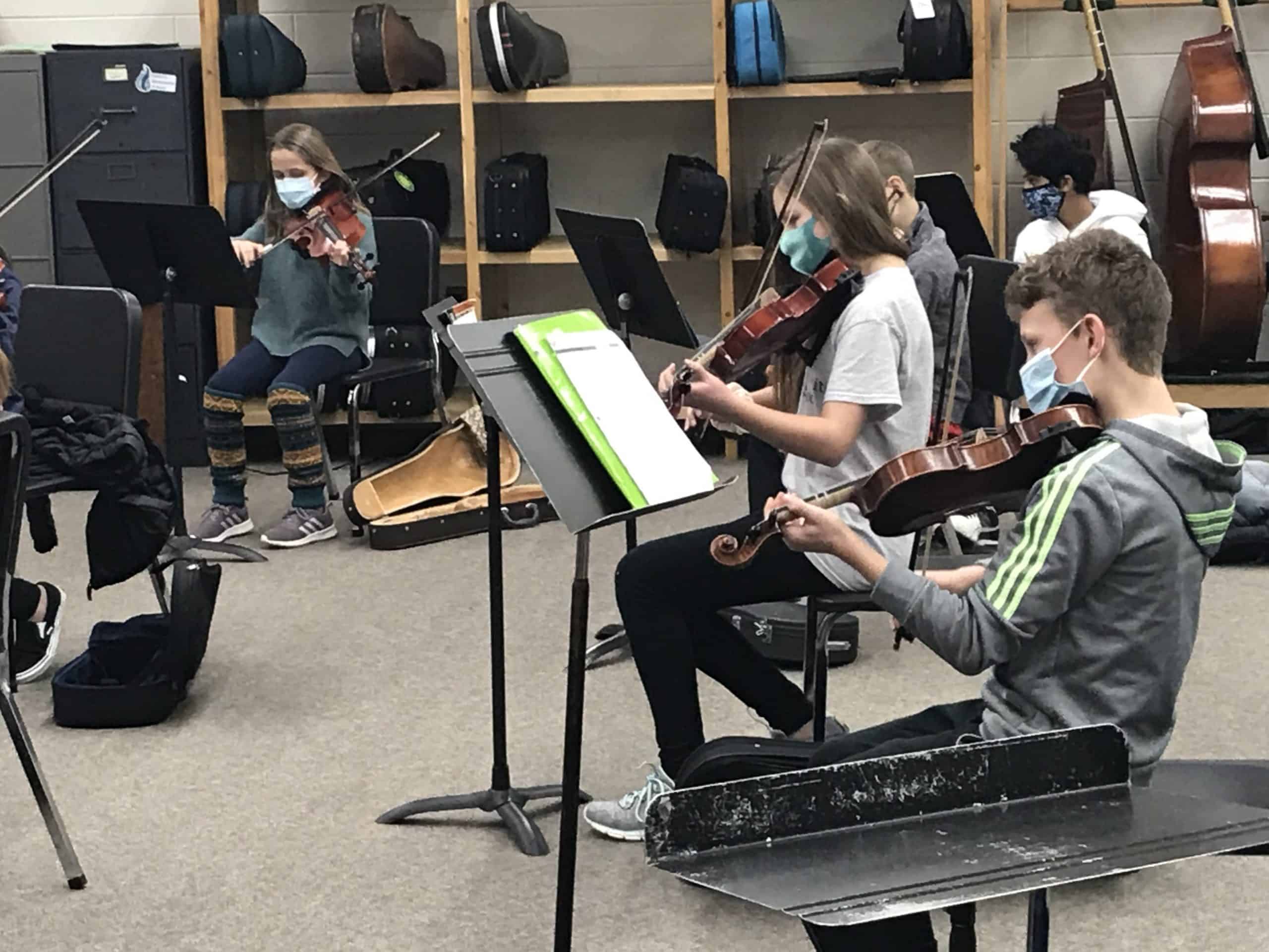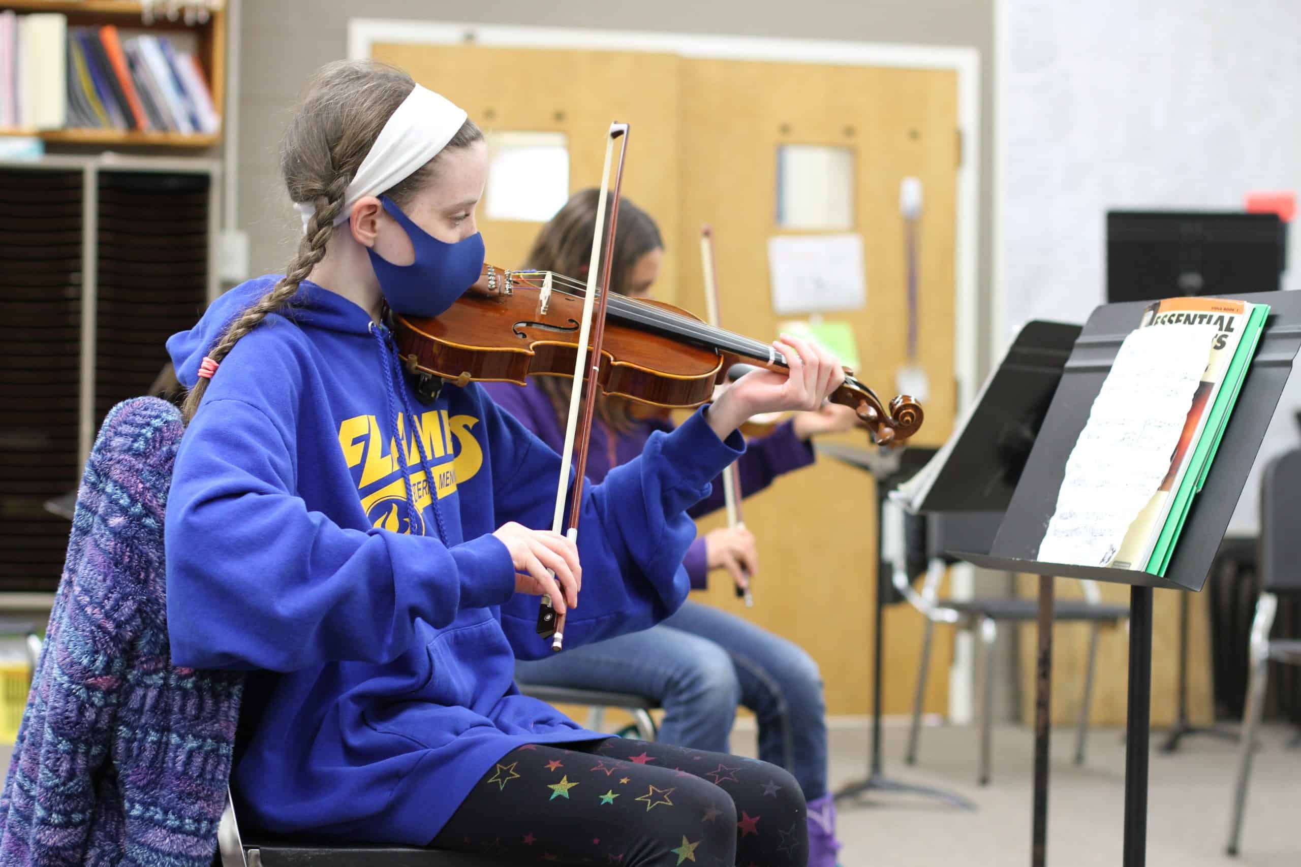 Some 58 students are part of strings classes at EMS in grades 6-12. Twenty participate in the string ensemble and full orchestra. In addition, four EMS students and 9 non-EMS students take private string lessons with Ms. Lorcas in the strings room. Prior to COVID, EMS had launched a strings program for elementary school with all first graders taking exploratory strings classes twice per week, taught in Spanish and English. “We hope to bring that program back as soon as COVID protocols permit,” says Lorcas.