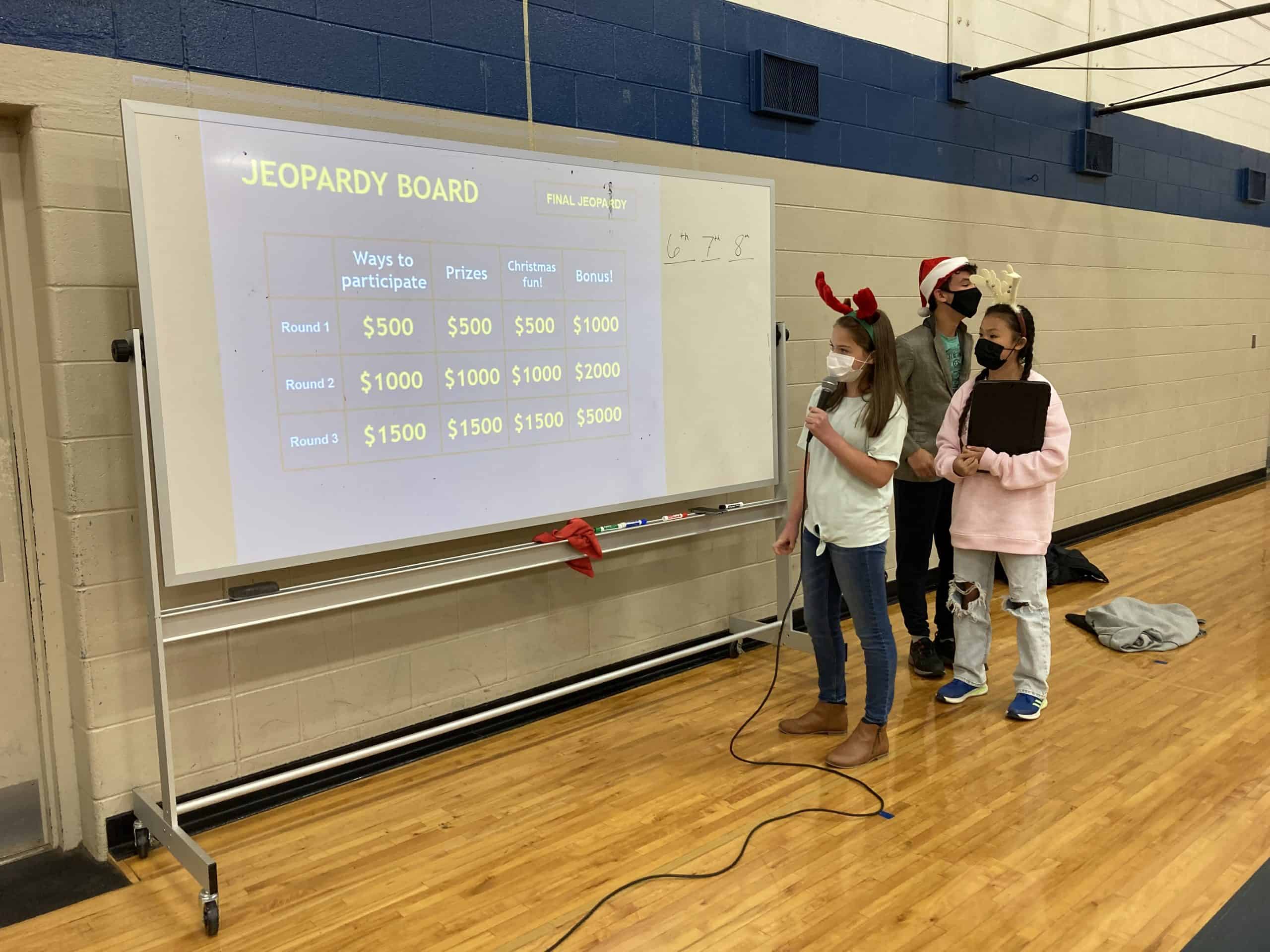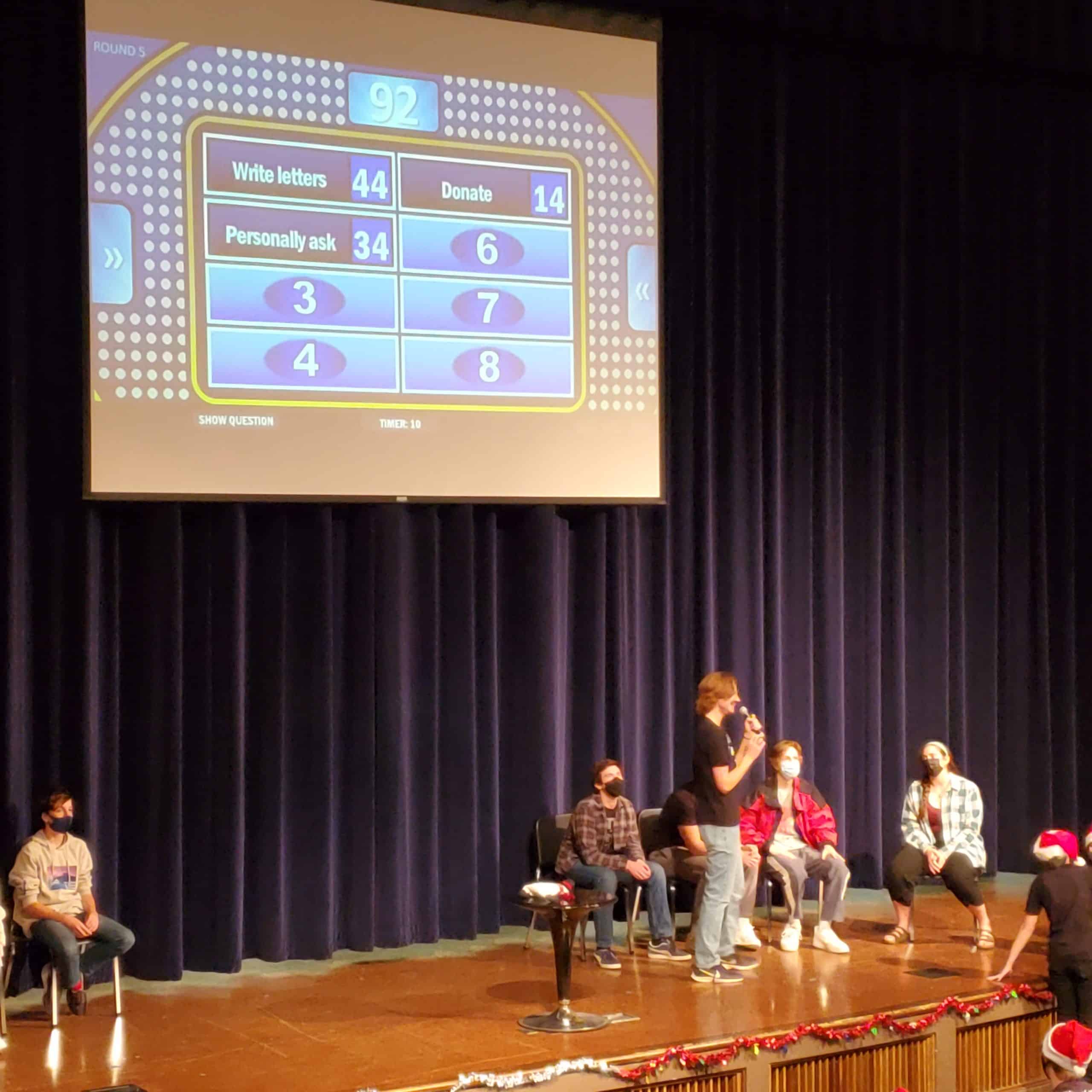The middle school planners hosted a skit and Jeopardy game in the gym, while high school students played an EMS fund drive version of Family Feud in the auditorium.